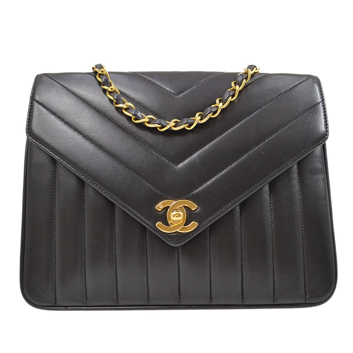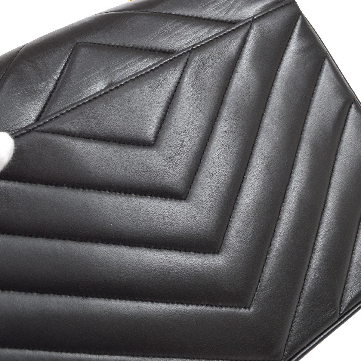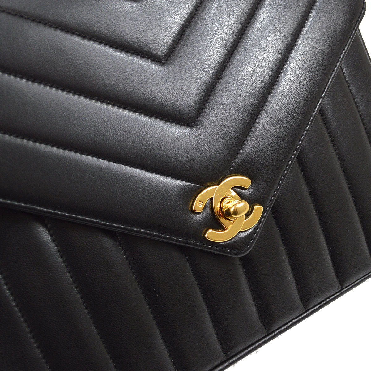 CHANEL V Stitch Single Flap Small Shoulder Bag Black Lambskin