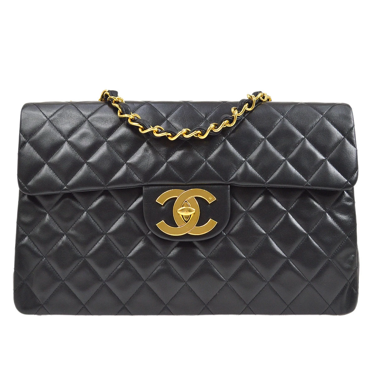 CHANEL Classic Flap Maxi Chain Shoulder Bag Black Lambskin
