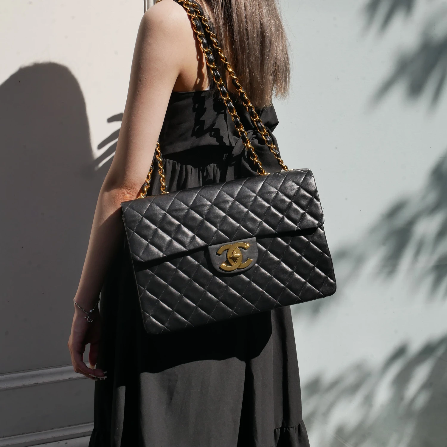 CHANEL Classic Flap Maxi Chain Shoulder Bag Black