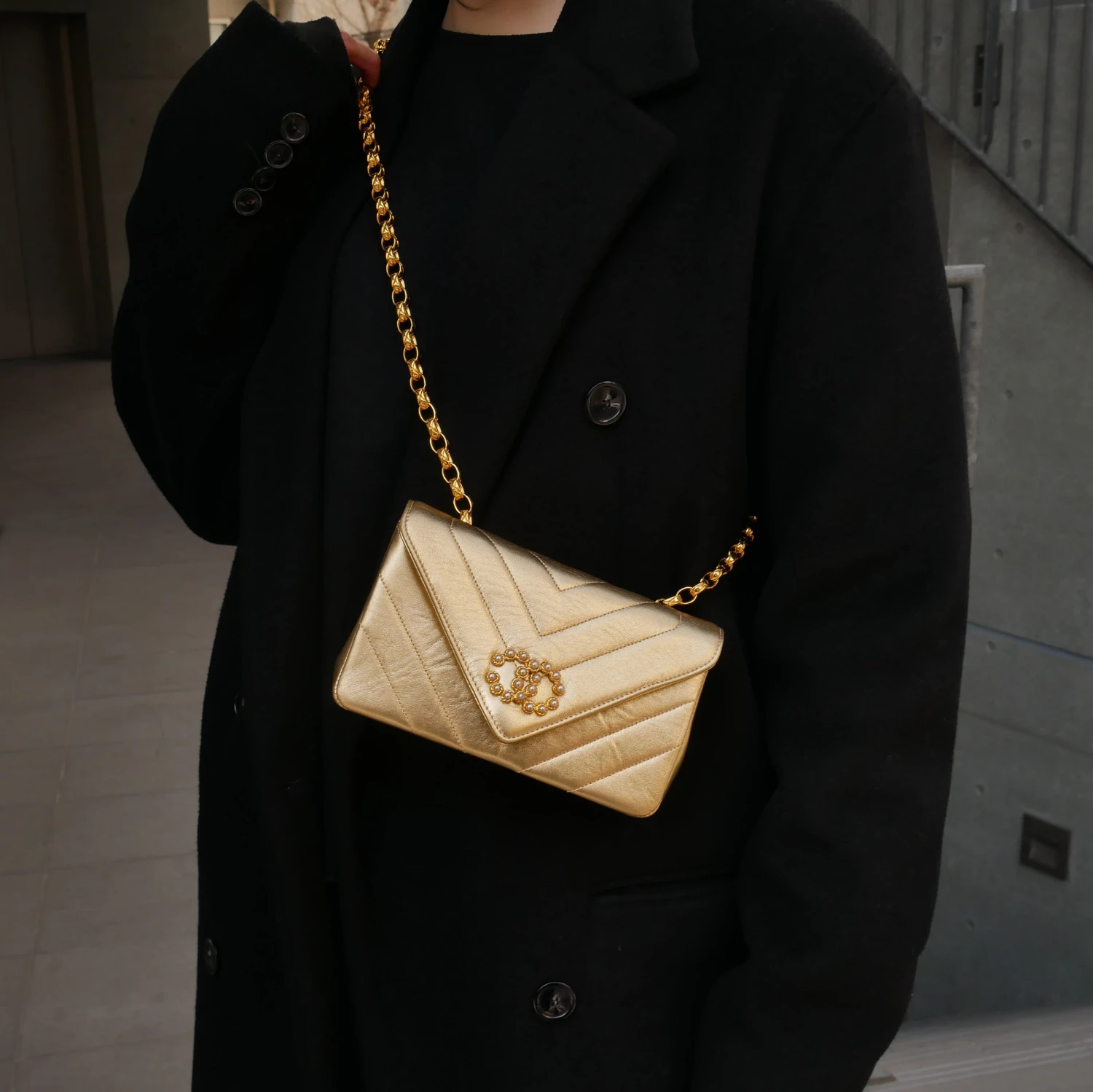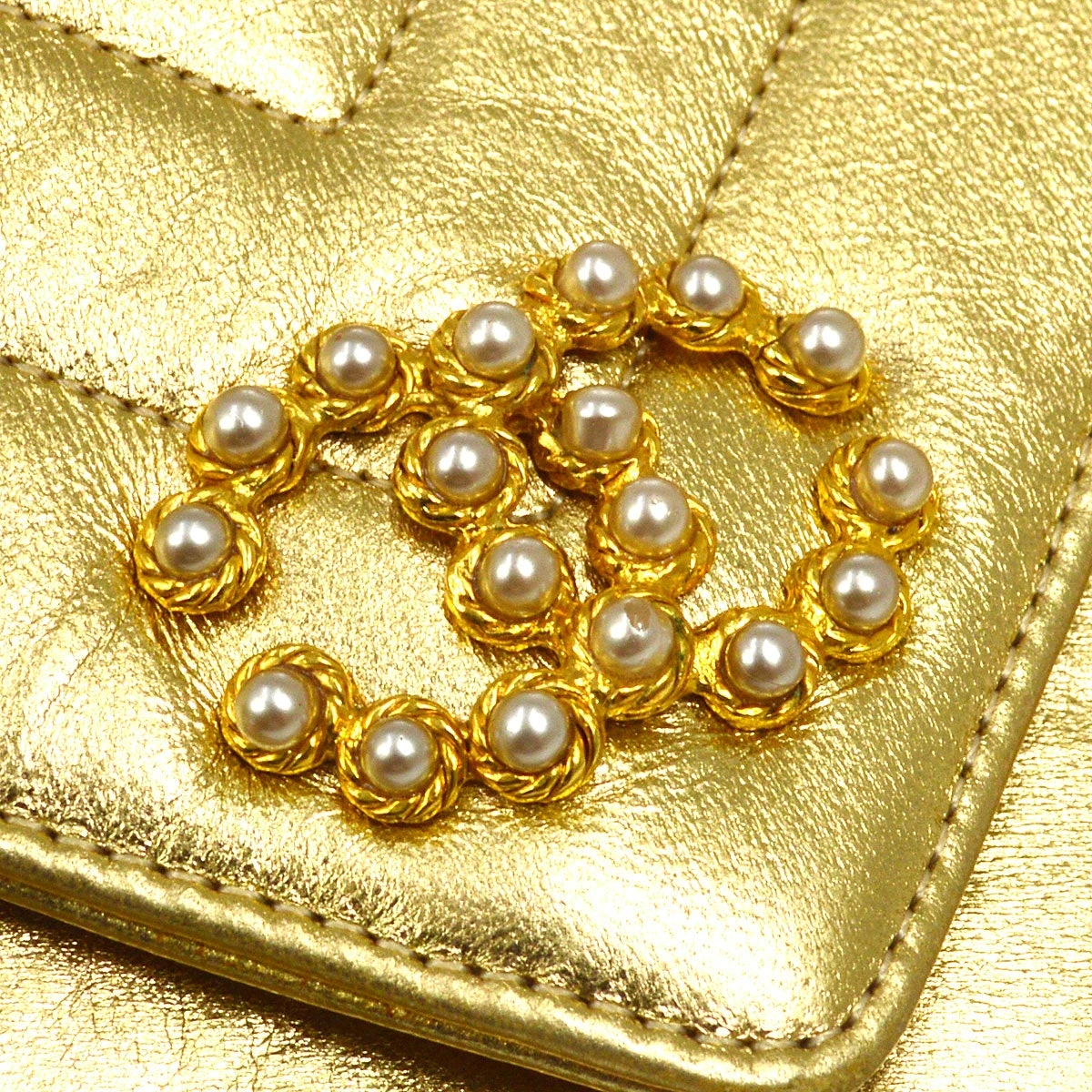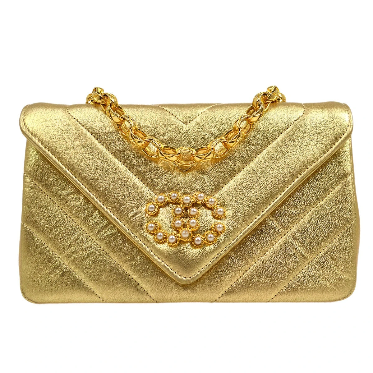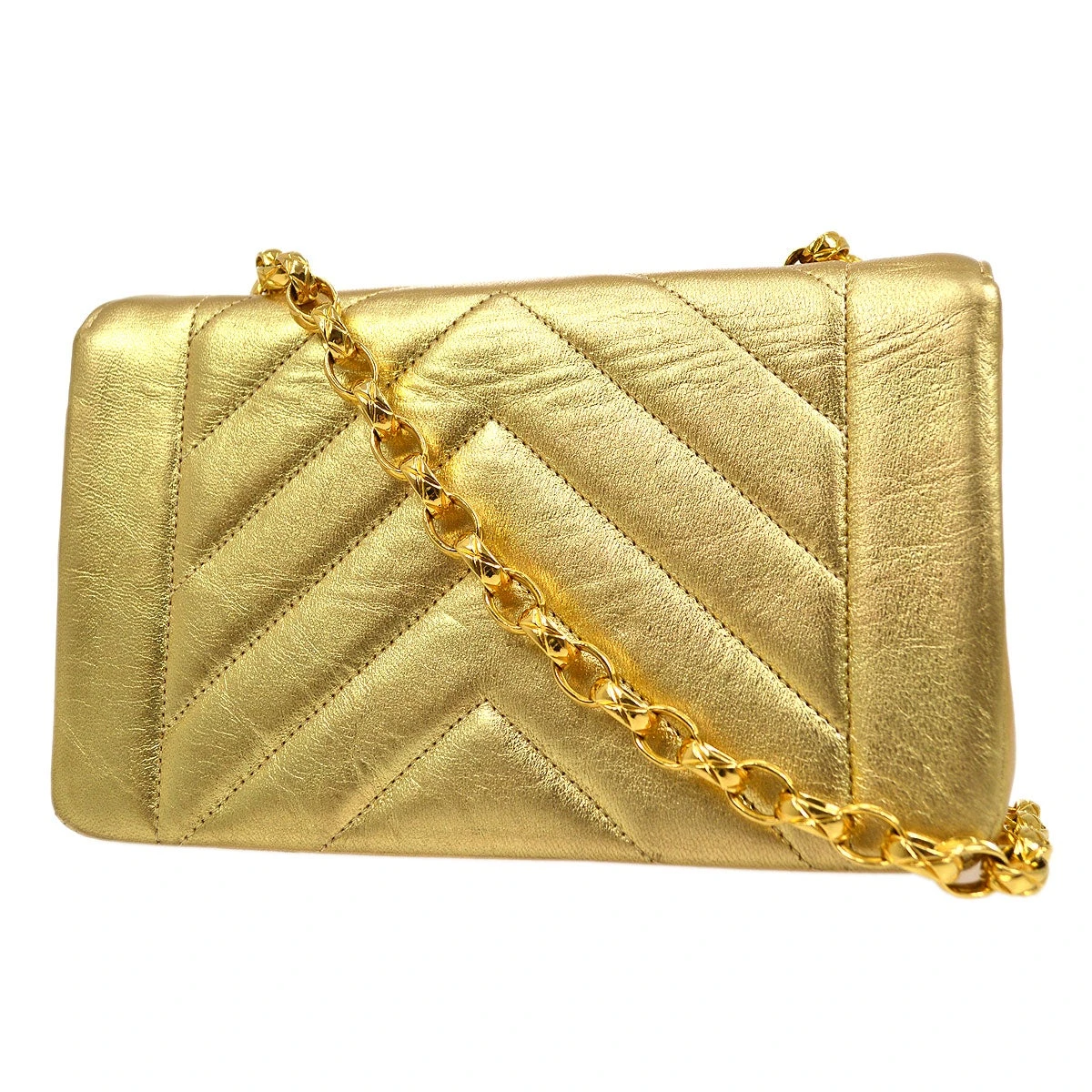 CHANEL V stitches Bijoux Chain Shoulder Bag Gold Lambskin