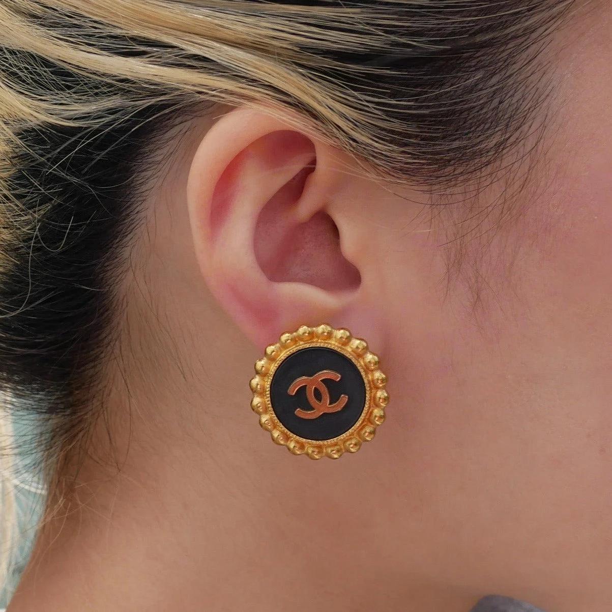 | CHANEL Button Earrings Gold Clip-On 93A | |