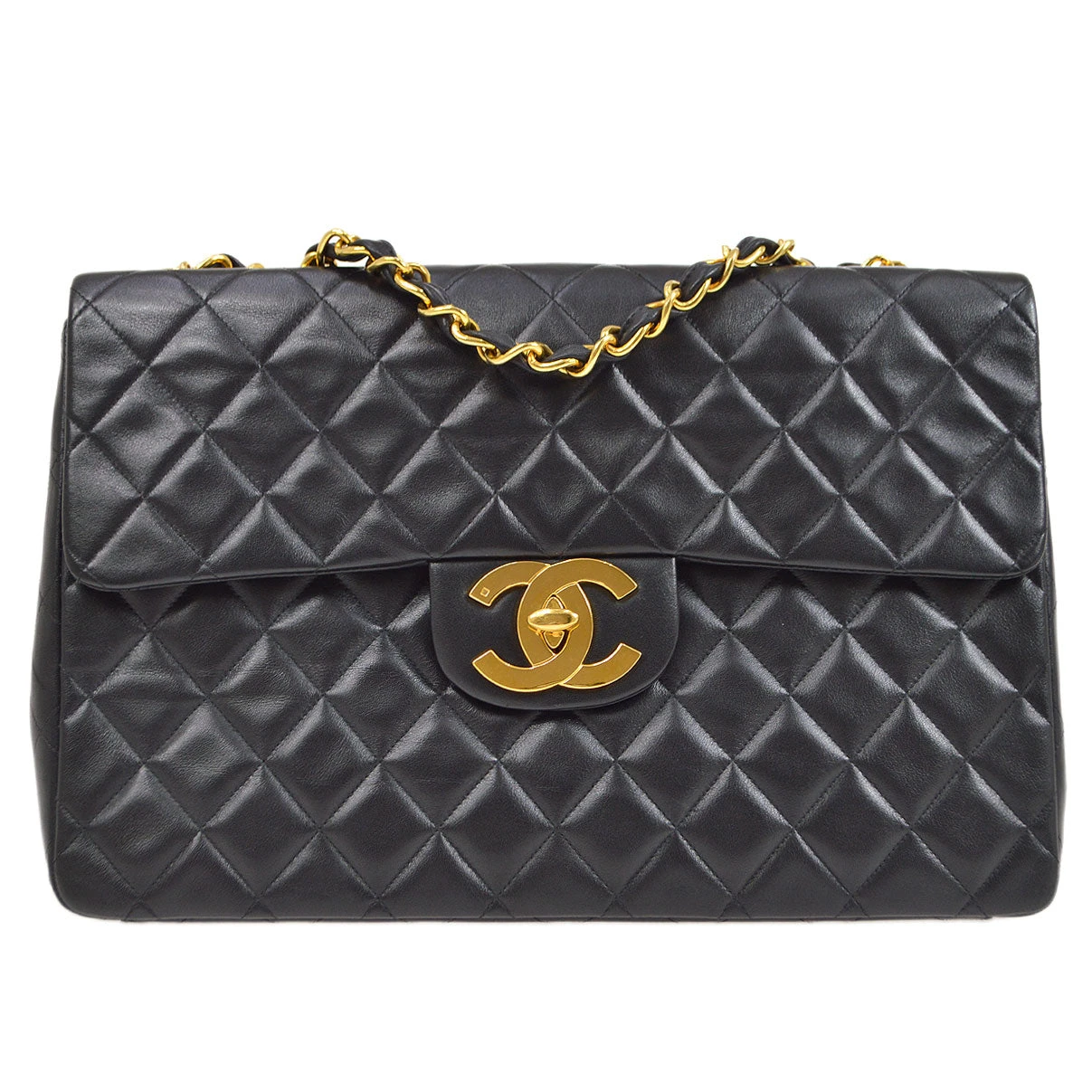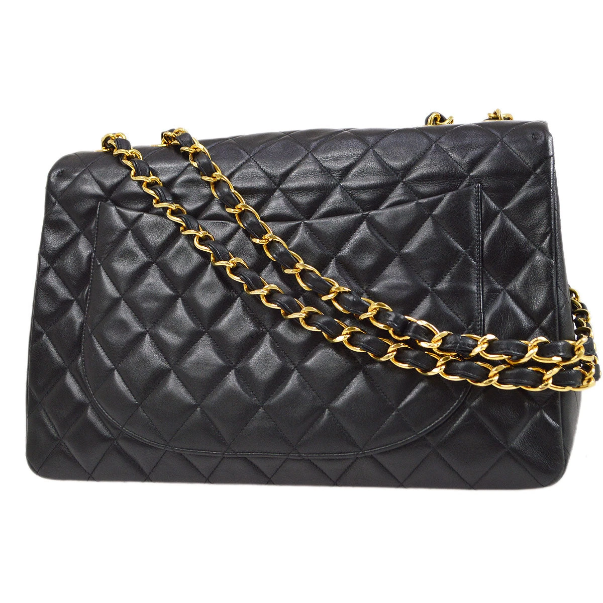 CHANEL Classic Flap Maxi Chain Shoulder Bag Black Lambskin