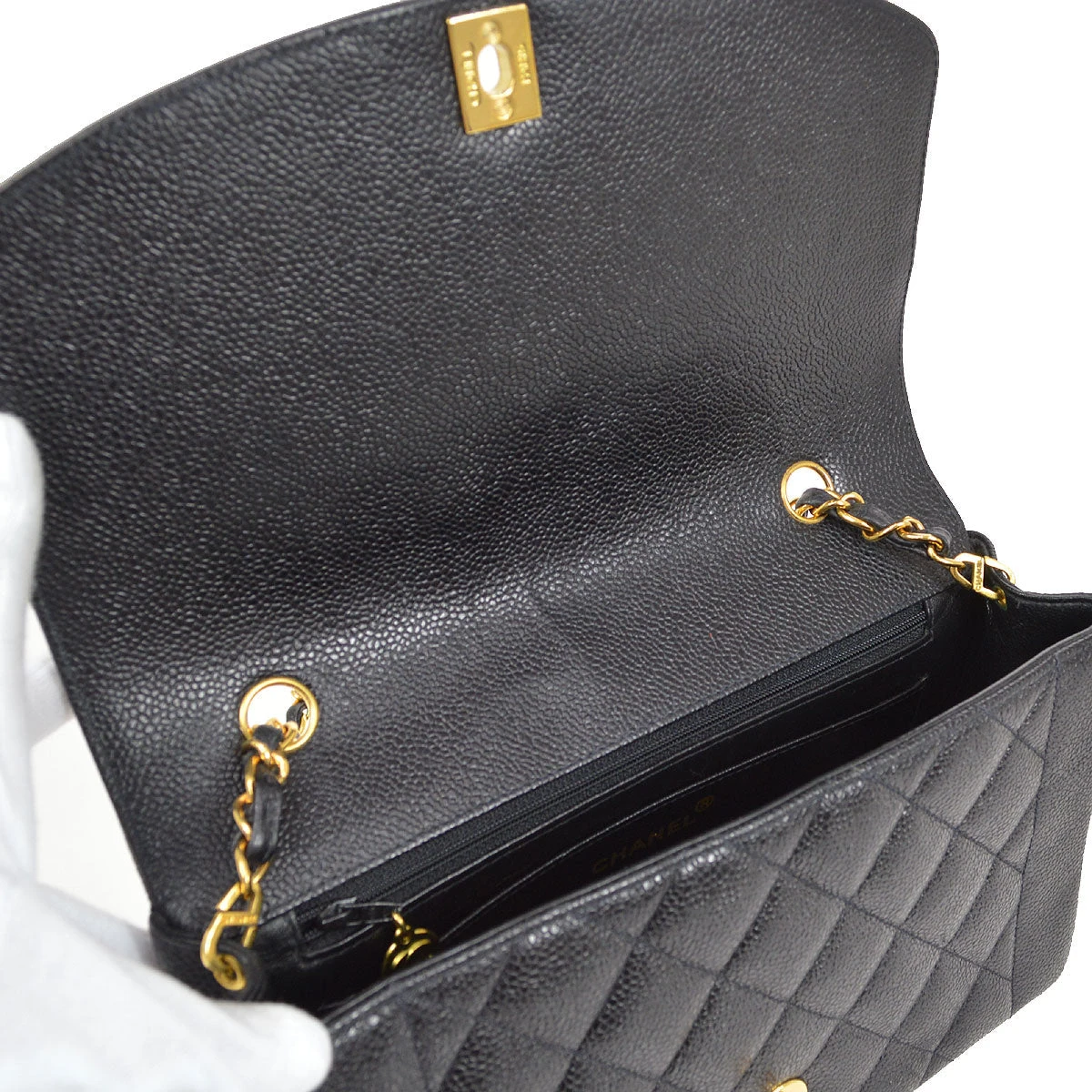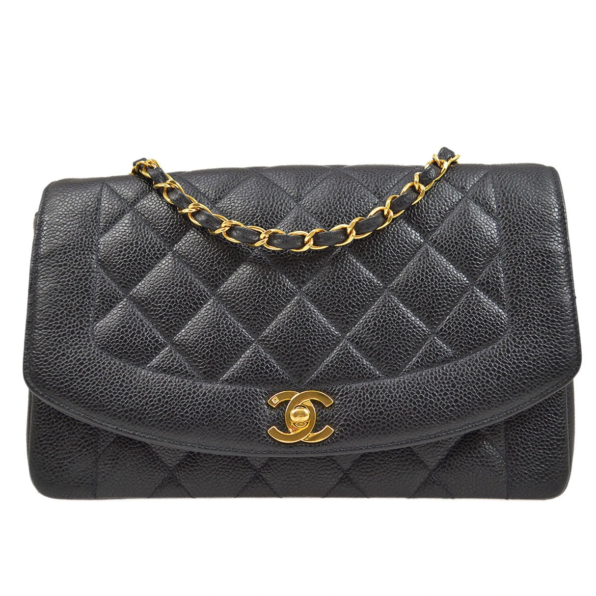 CHANEL Medium Diana Chain Shoulder Bag Black Caviar