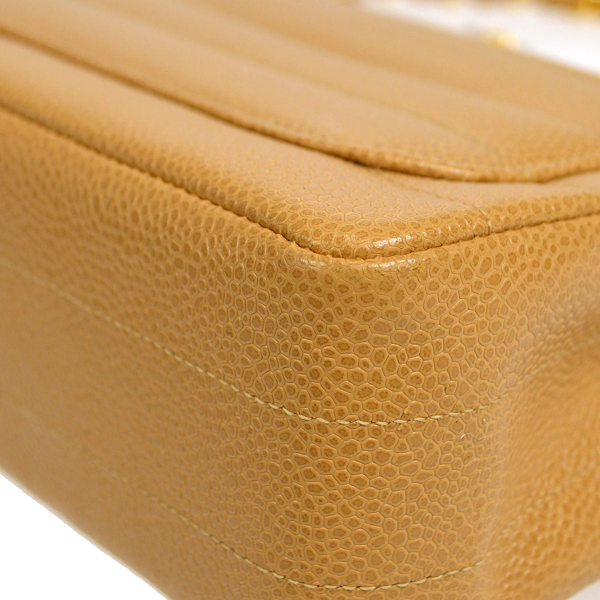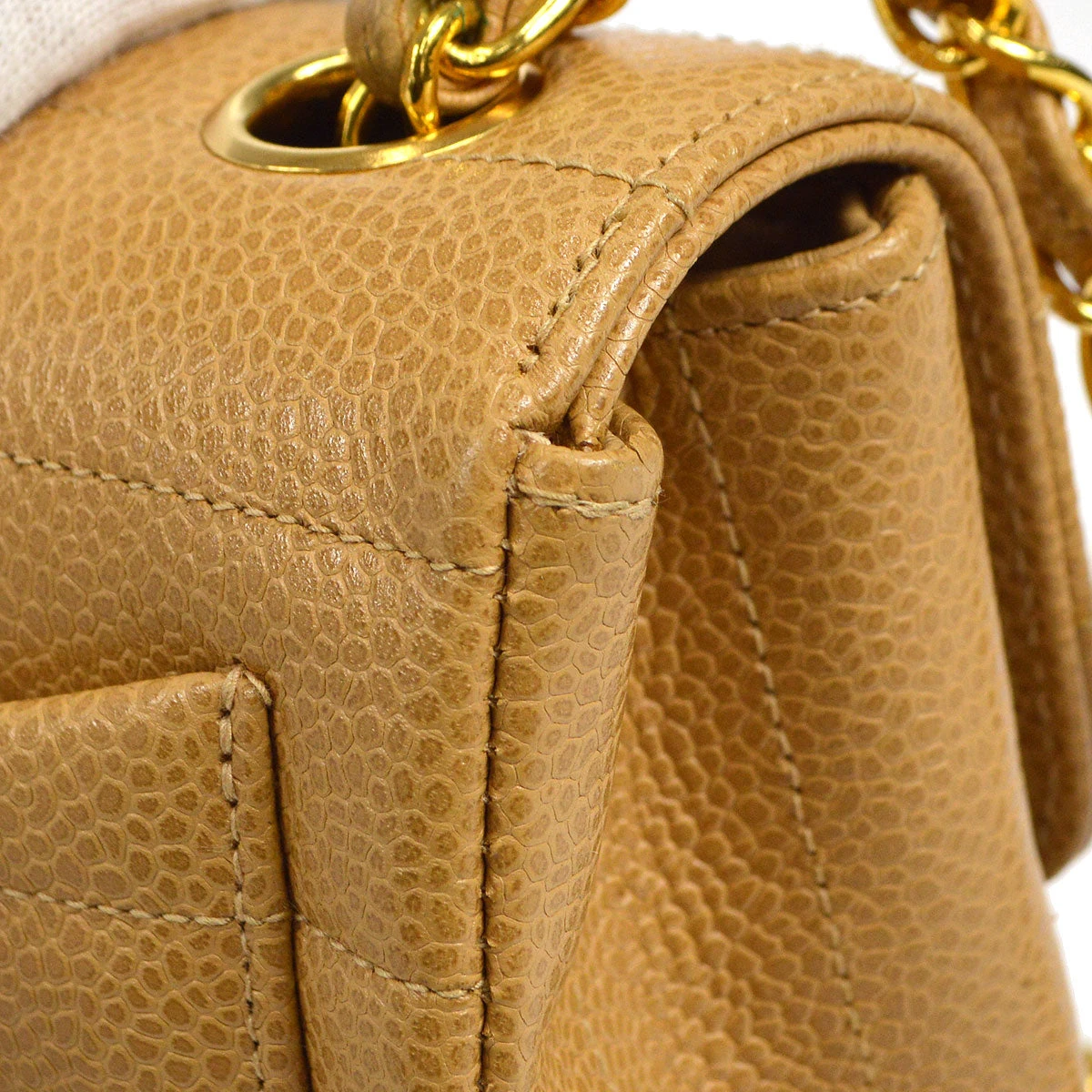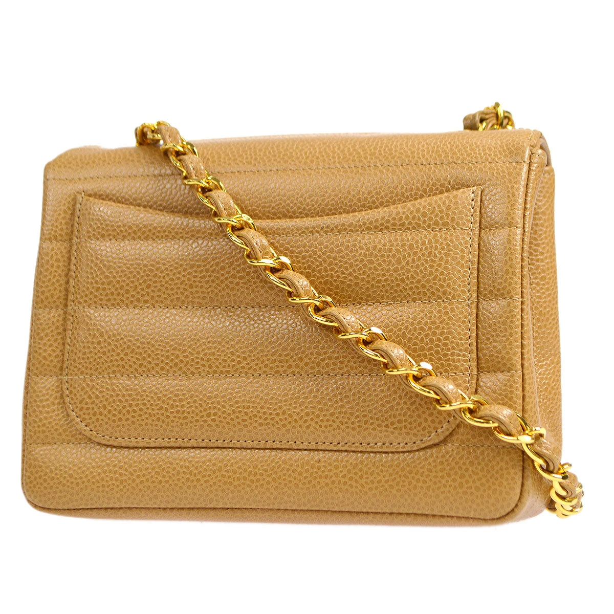CHANEL Classic Flap Mini Square Chain Shoulder Bag Beige Caviar
