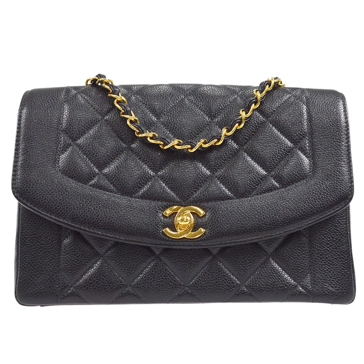 CHANEL Medium Diana Chain Shoulder Bag Black Caviar Skin