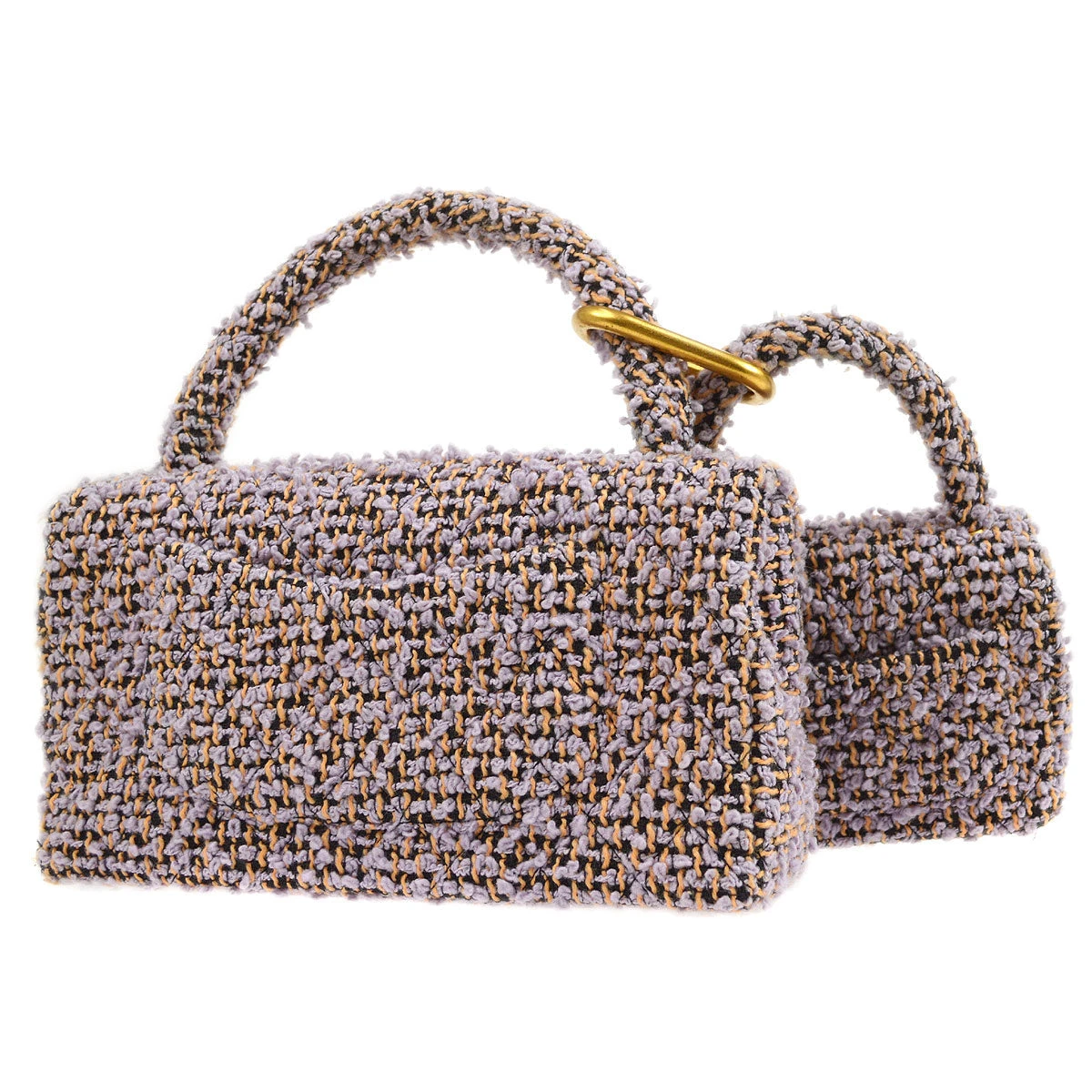 CHANEL 2 in 1 Handbag Set Purple Tweed