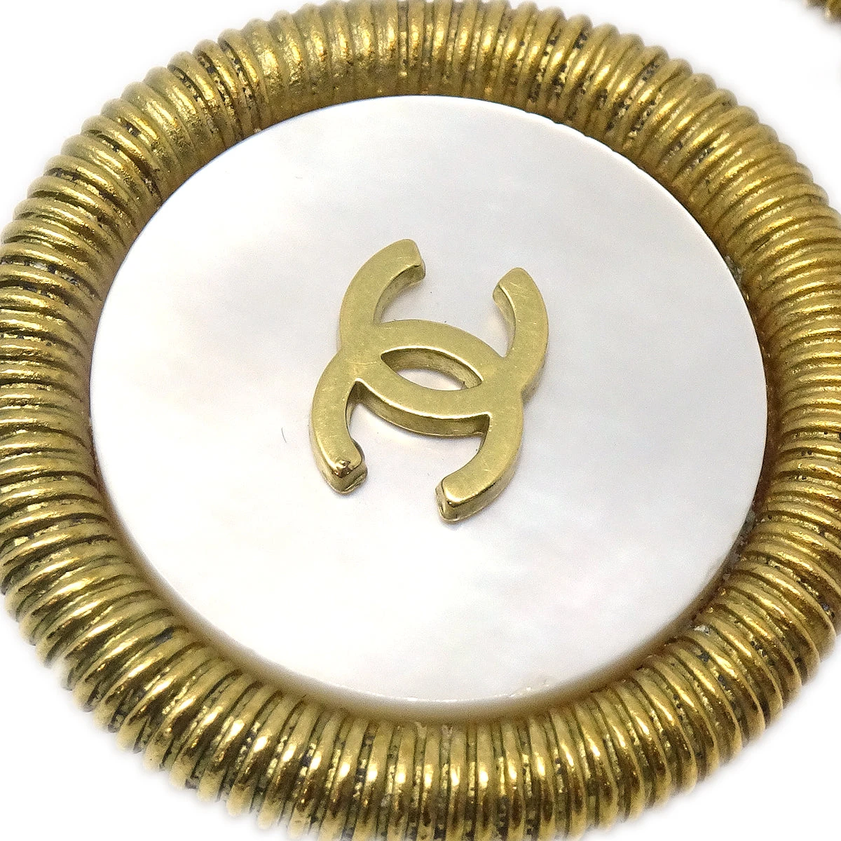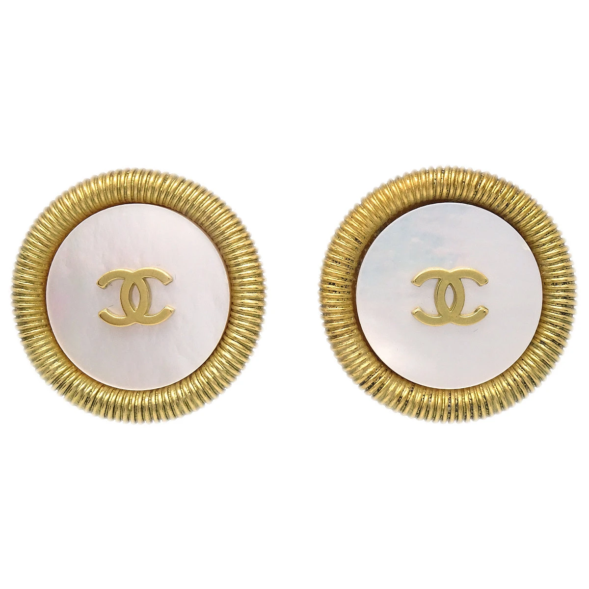 Chanel Button Earrings Clip-On Gold Shell 94P