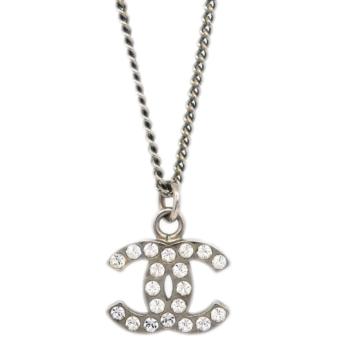 Chanel CC Chain Necklace Pendant Rhinestone Silver B12V