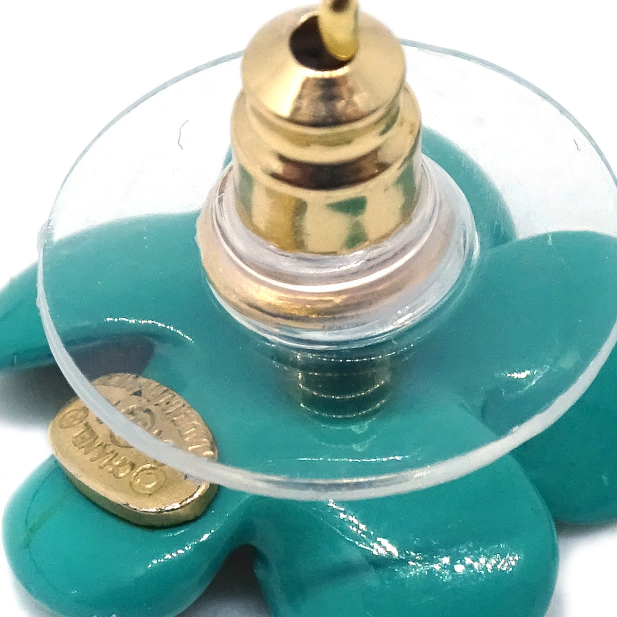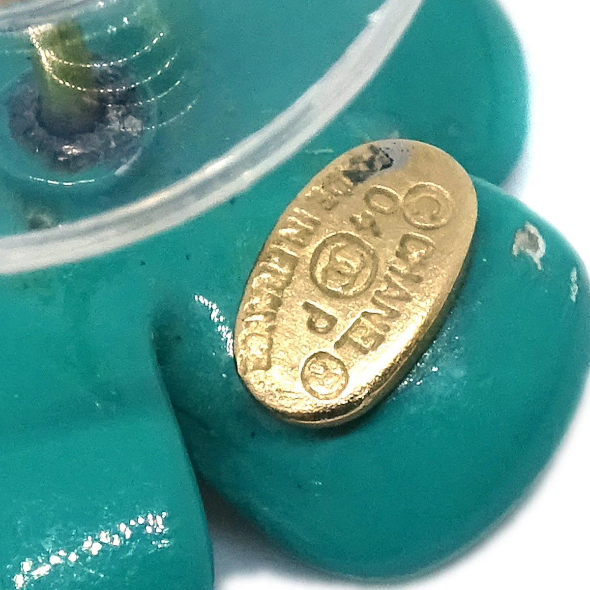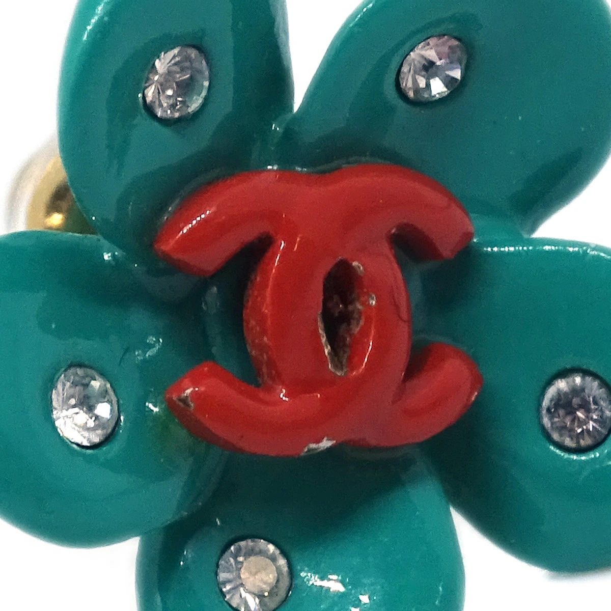 Chanel Flower Piercing Earrings Rhinestone Green 04P