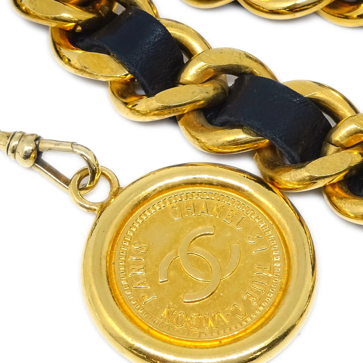 Chanel Gold Black Medallion Chain Belt Small Good
