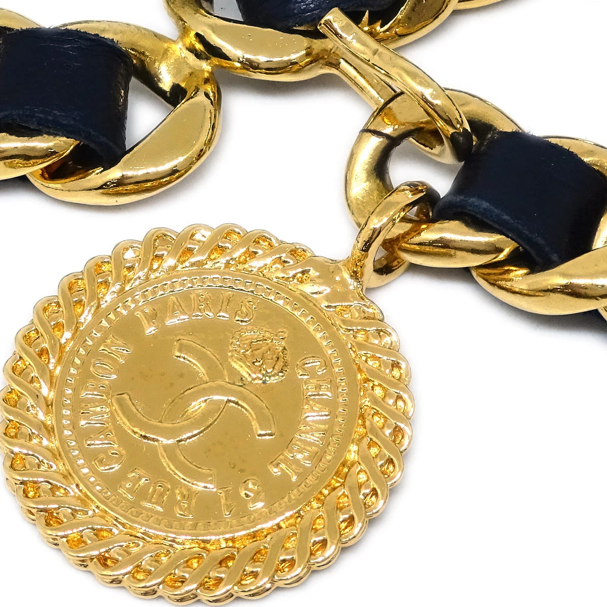 Chanel Medallion Chain Belt Black Small Good