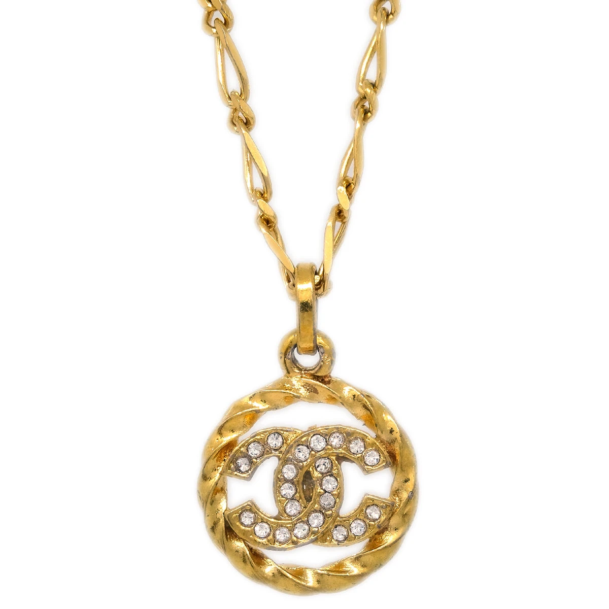 Chanel Medallion Pendant Necklace Rhinestone Gold 3438/1982