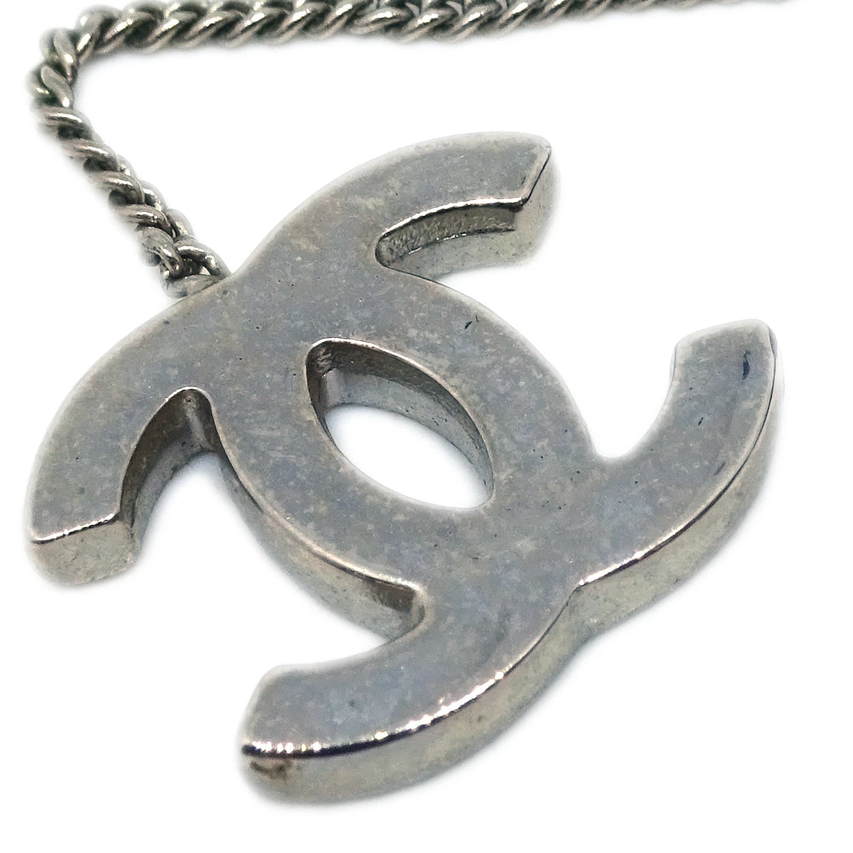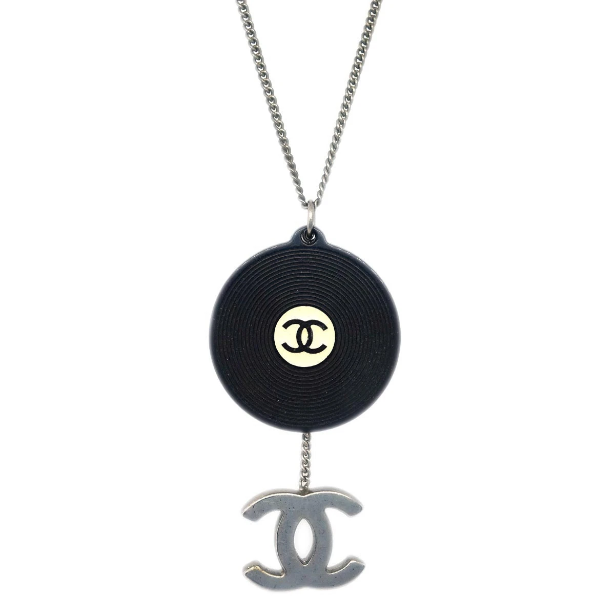 Chanel Record Silver Chain Pendant Necklace 04P