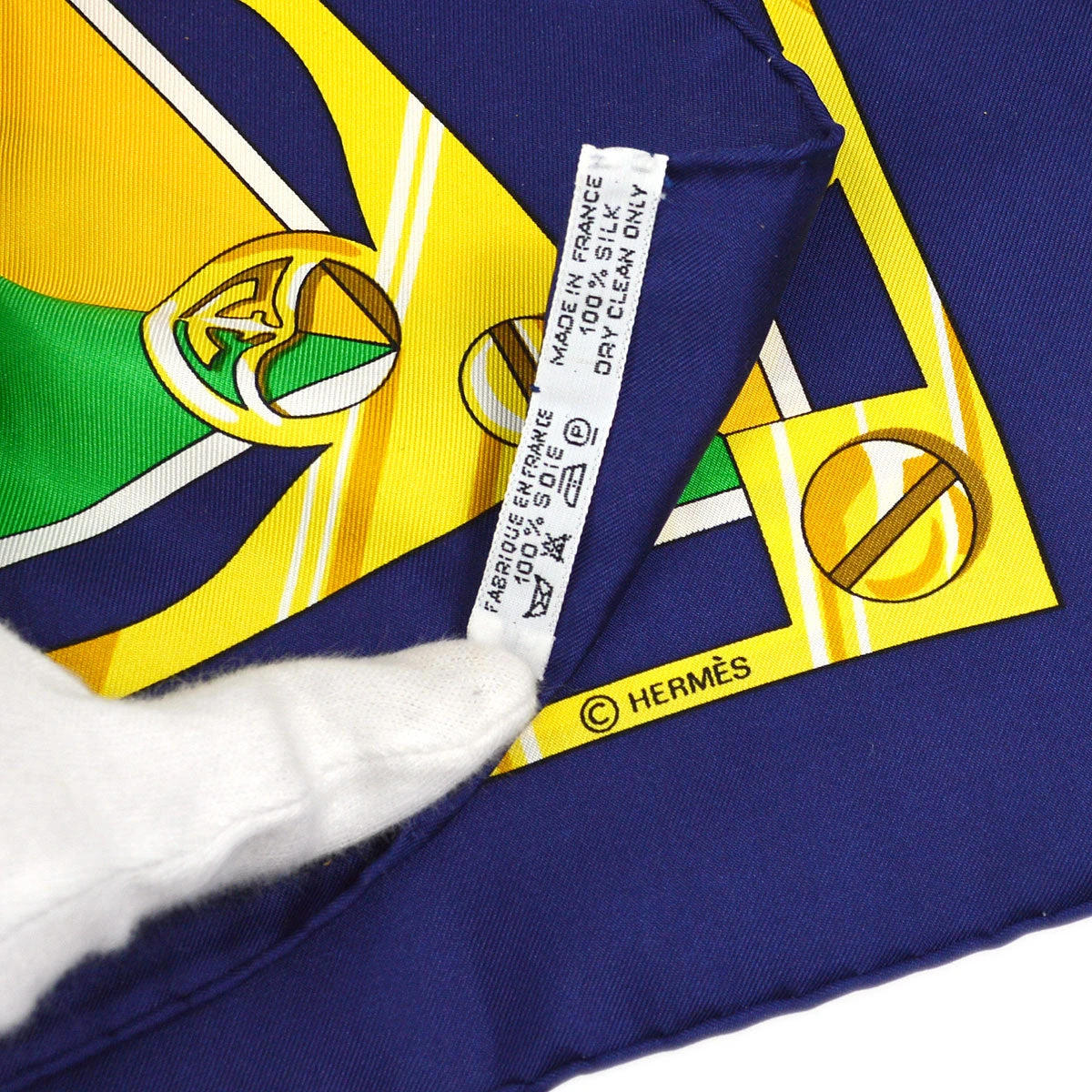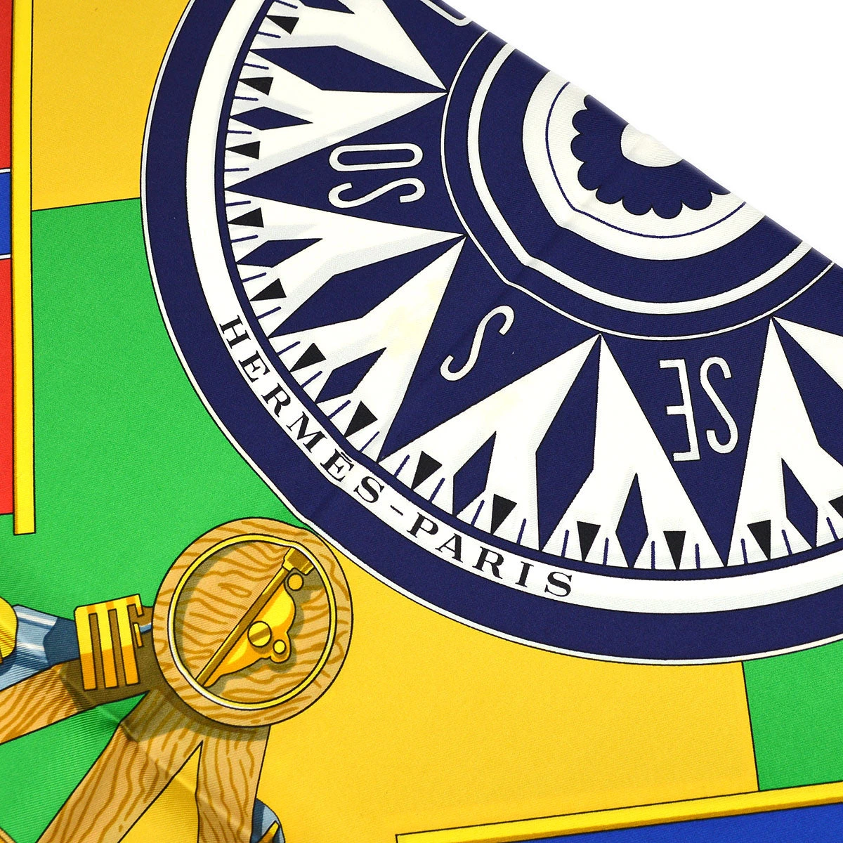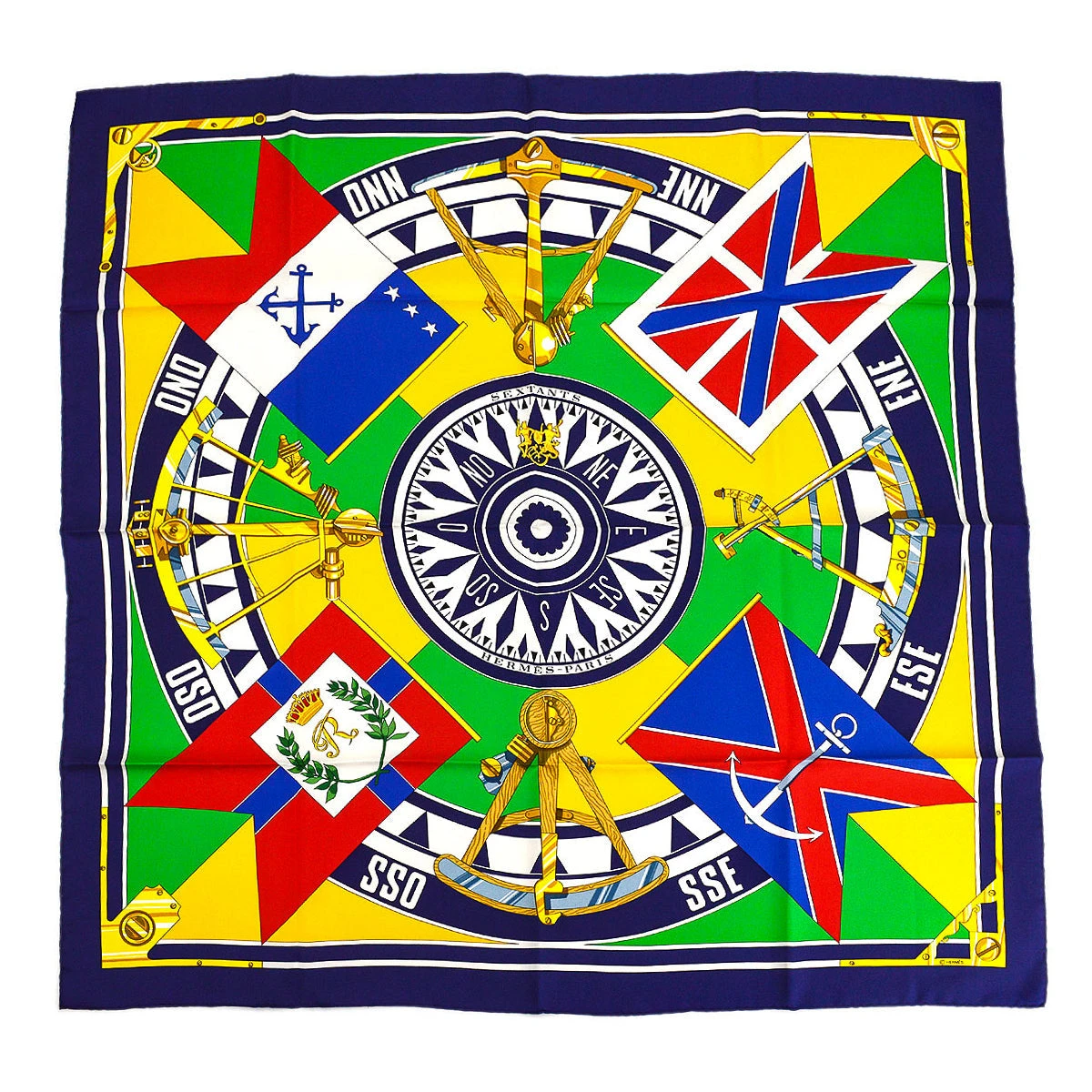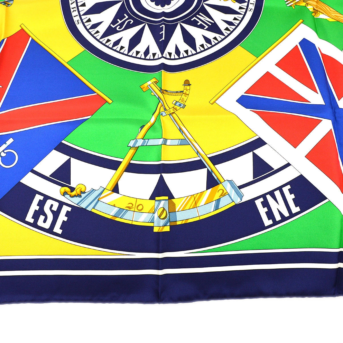 HERMES Sextants Sextant Carre 90 Scarf Stole Blue Small Good