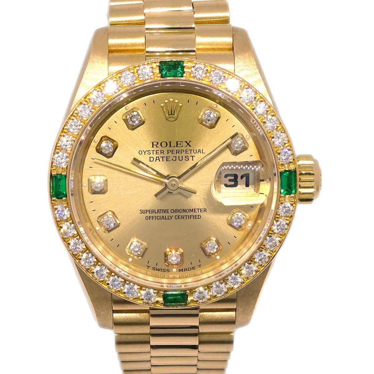 Feature : 10P Diamond, 4P Emerald, Diamond Bezel, Gold Dial