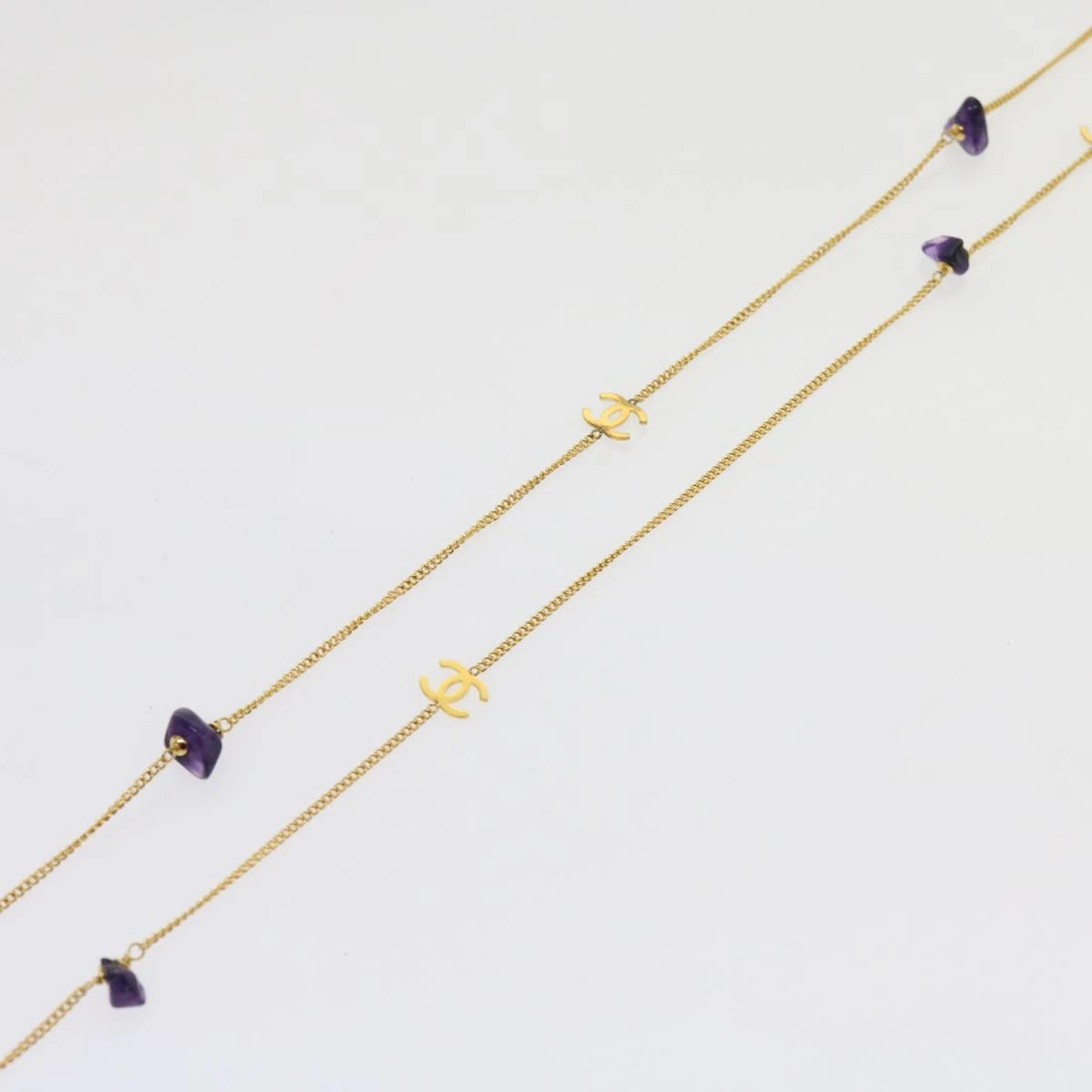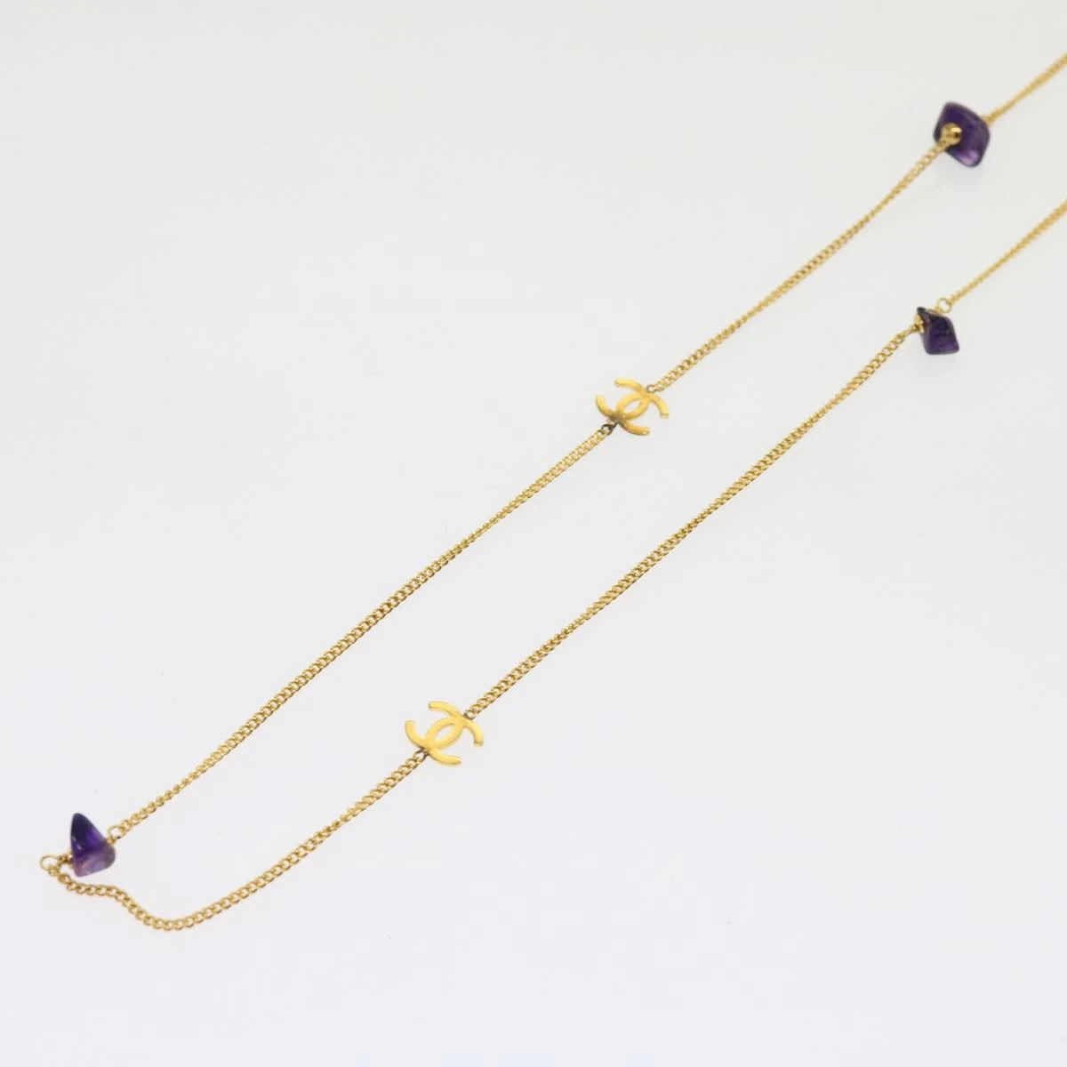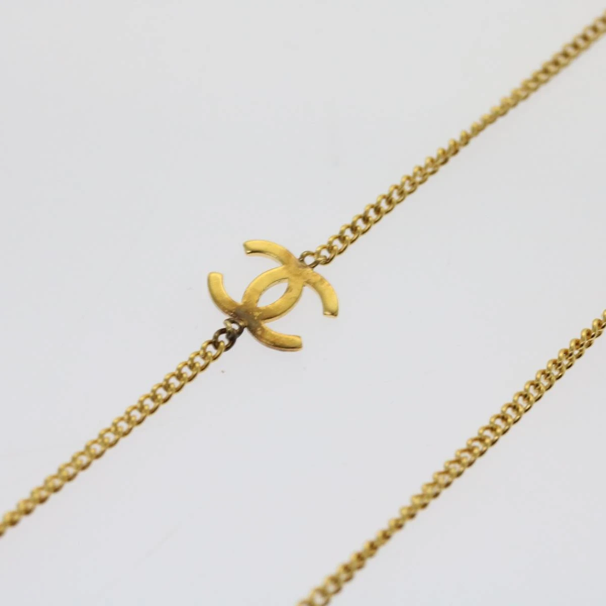 CHANEL COCO Mark Stone Necklace Gold CC Auth am5561