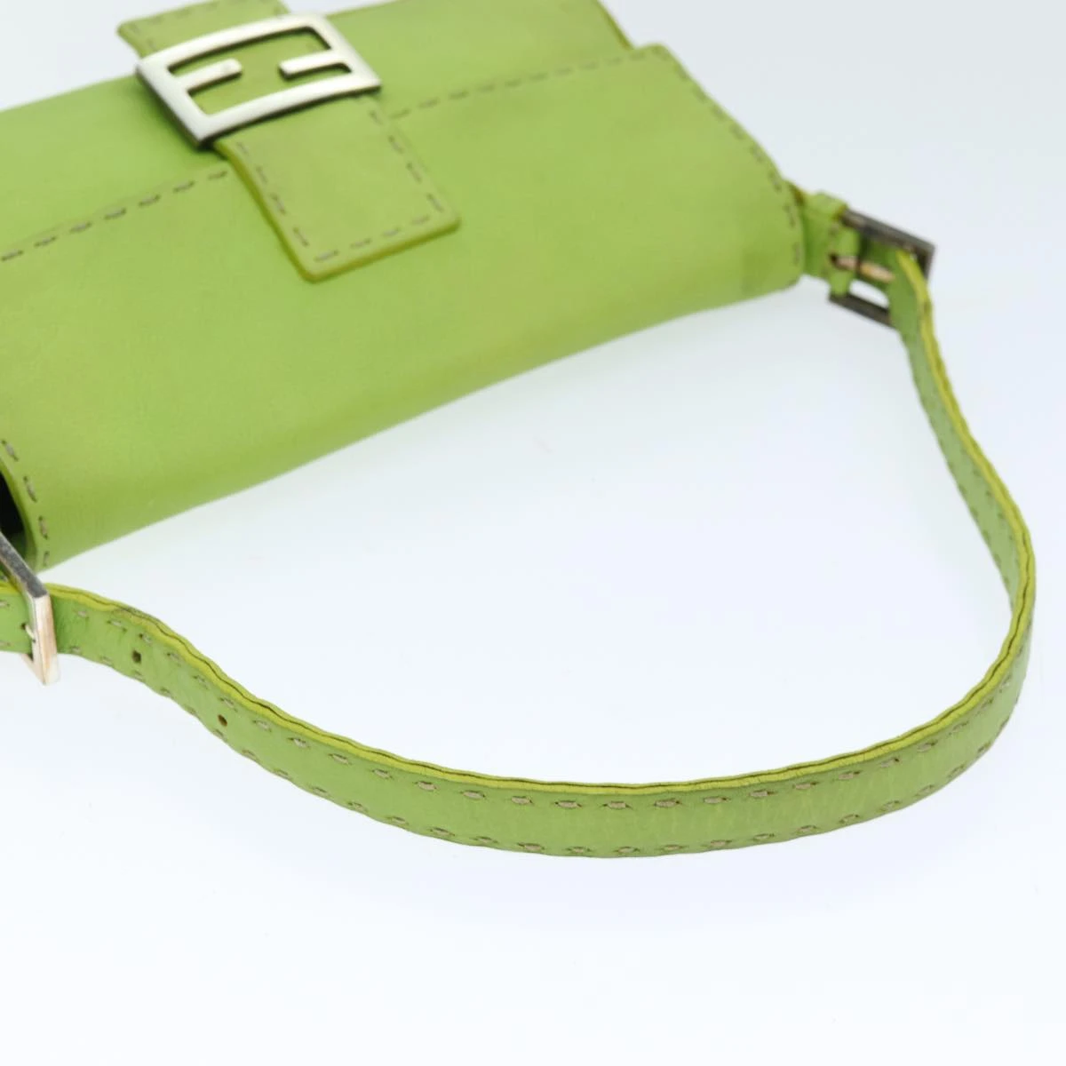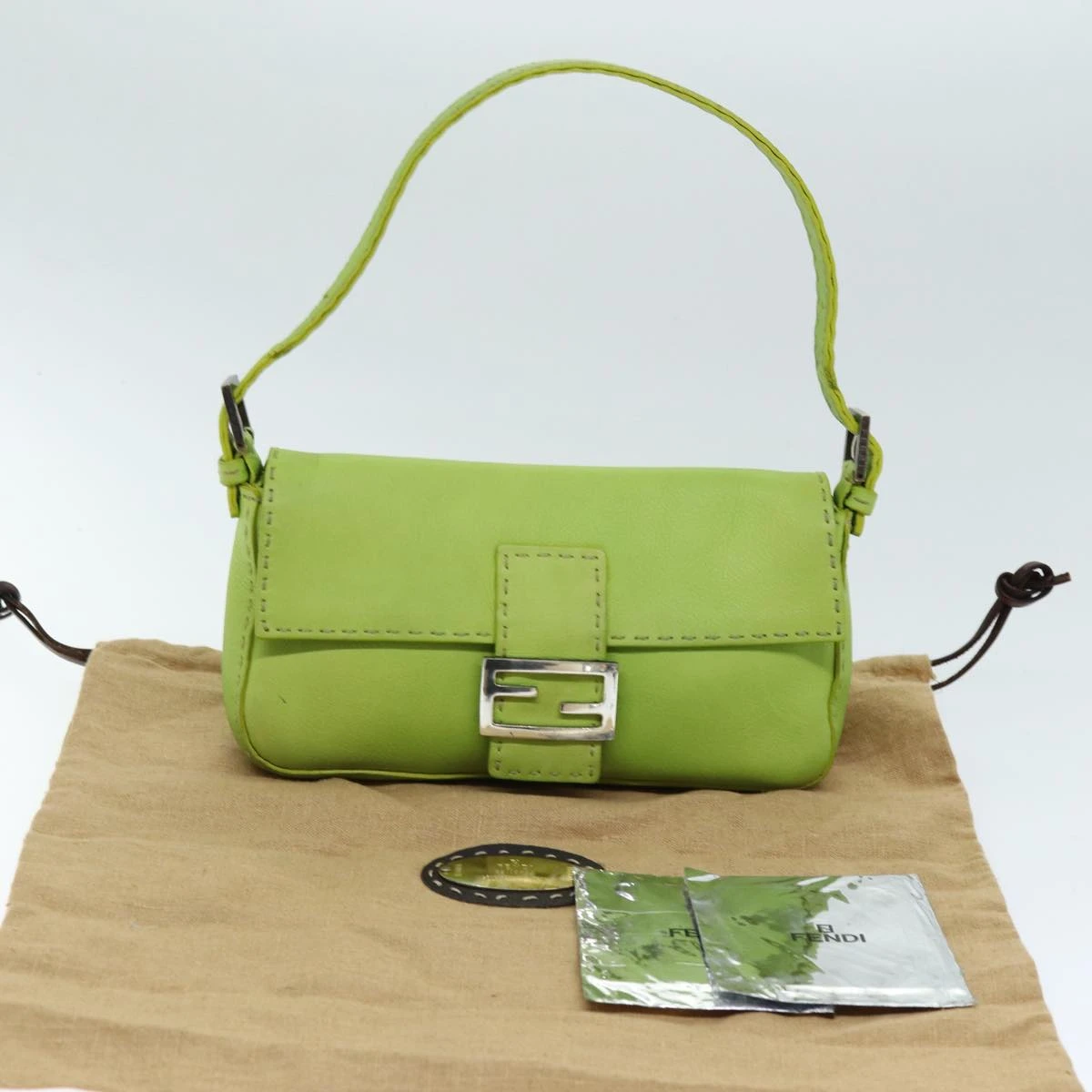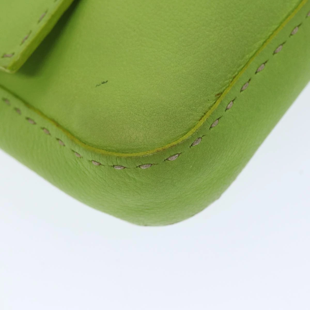 FENDI Celeria Mamma Baguette Shoulder Bag Leather Green Auth yk12521