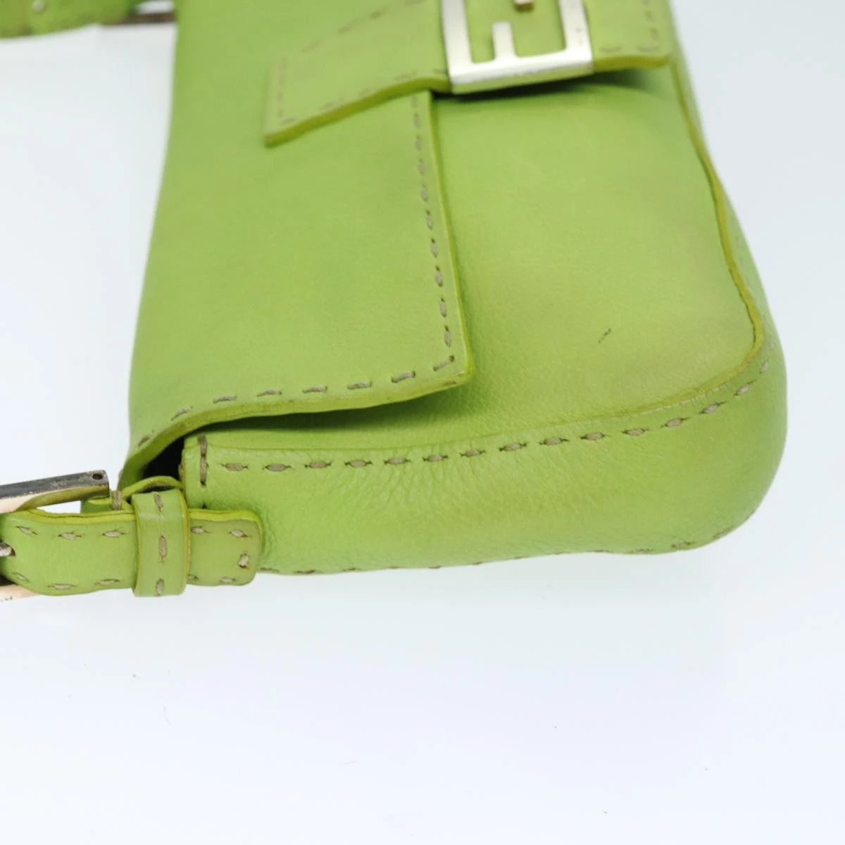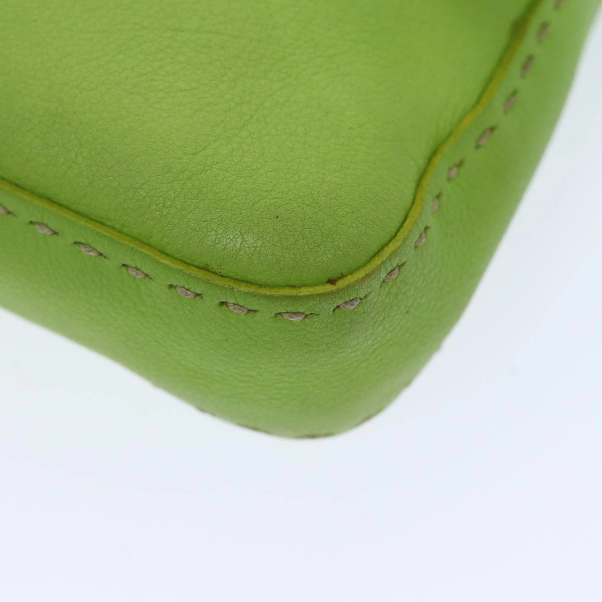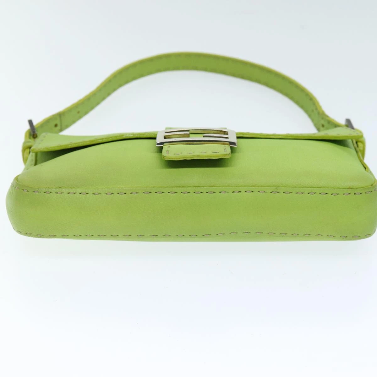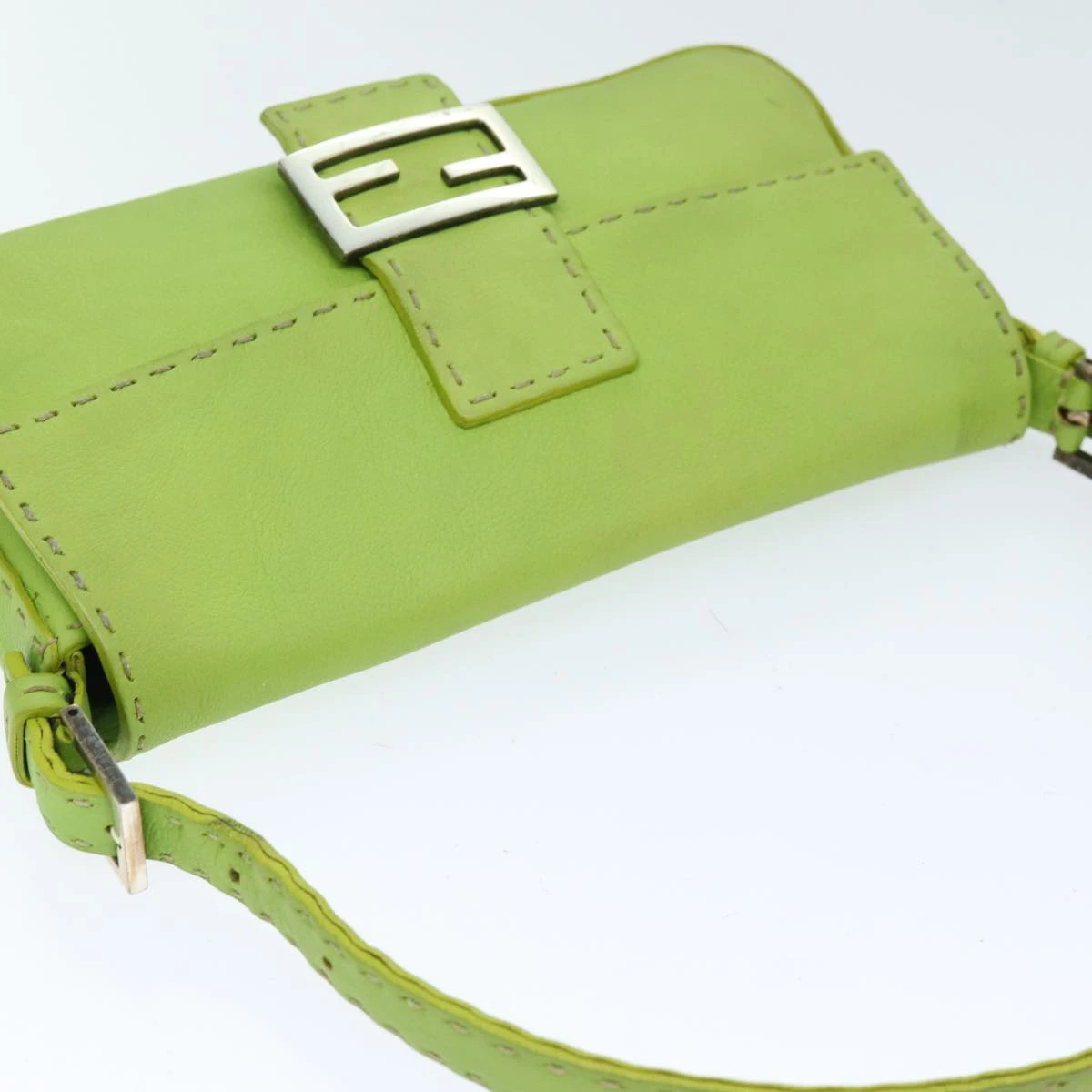 FENDI Celeria Mamma Baguette Shoulder Bag Leather Green Auth yk12521
