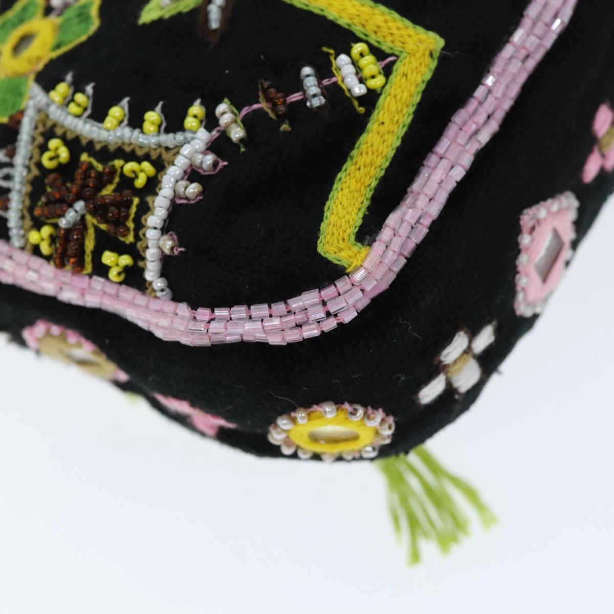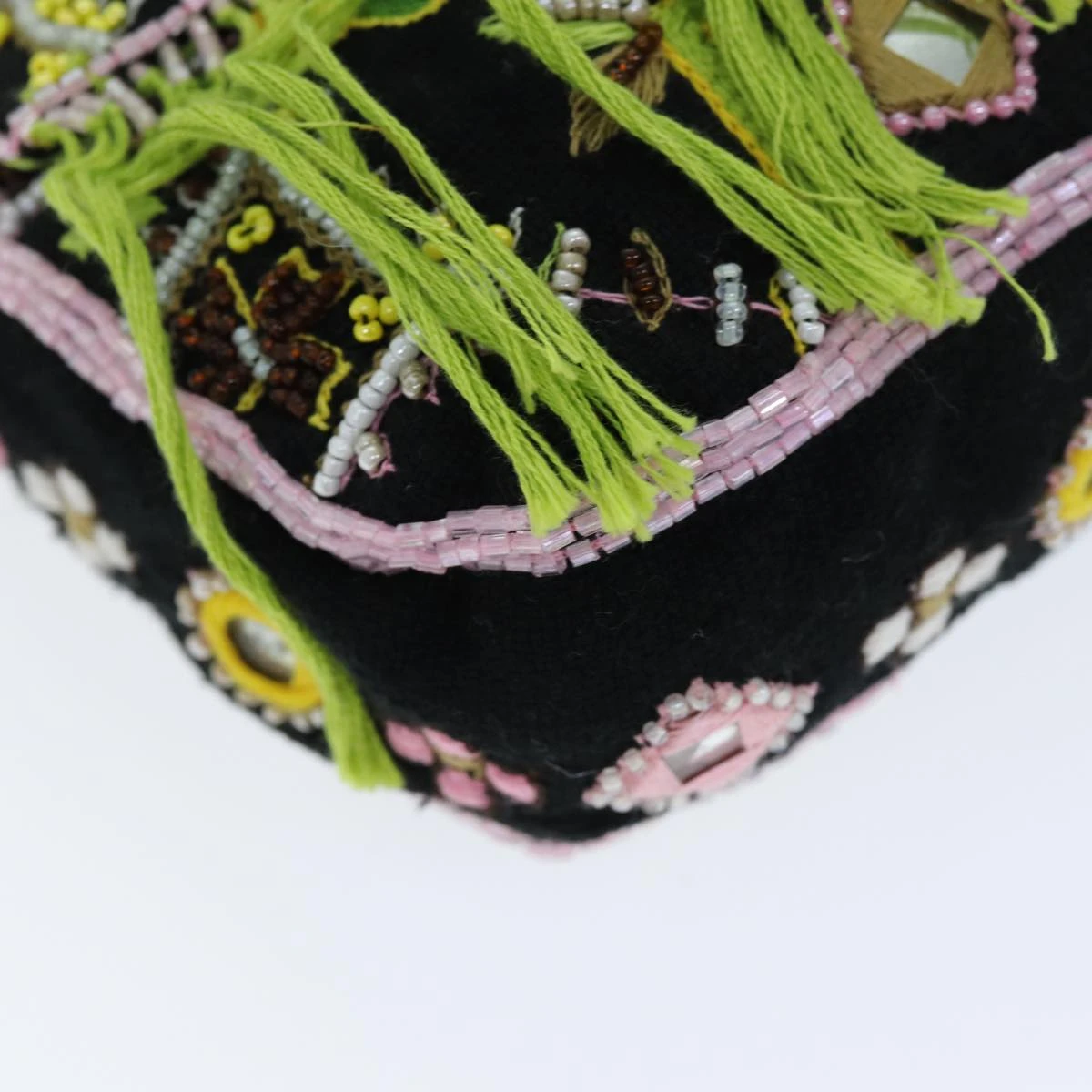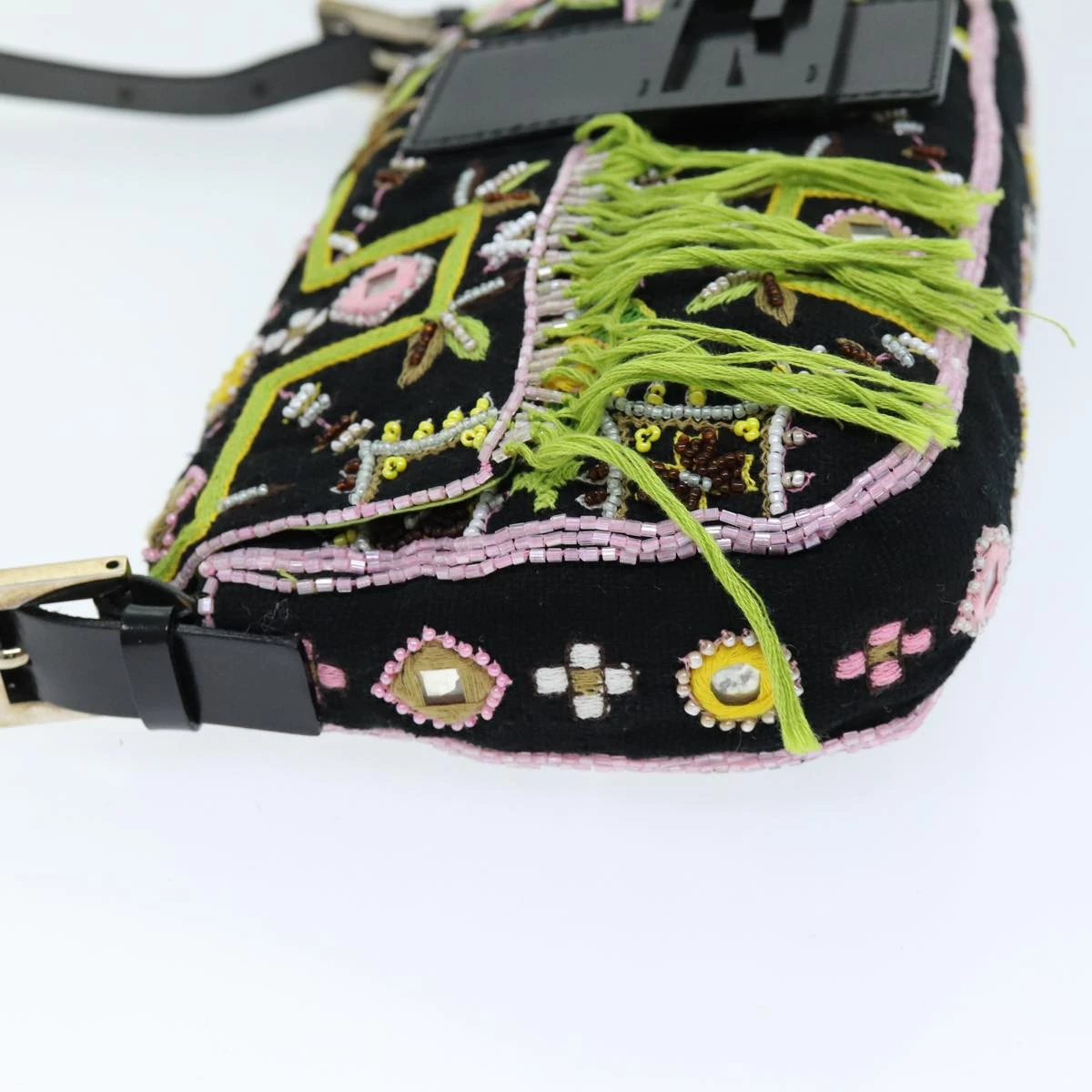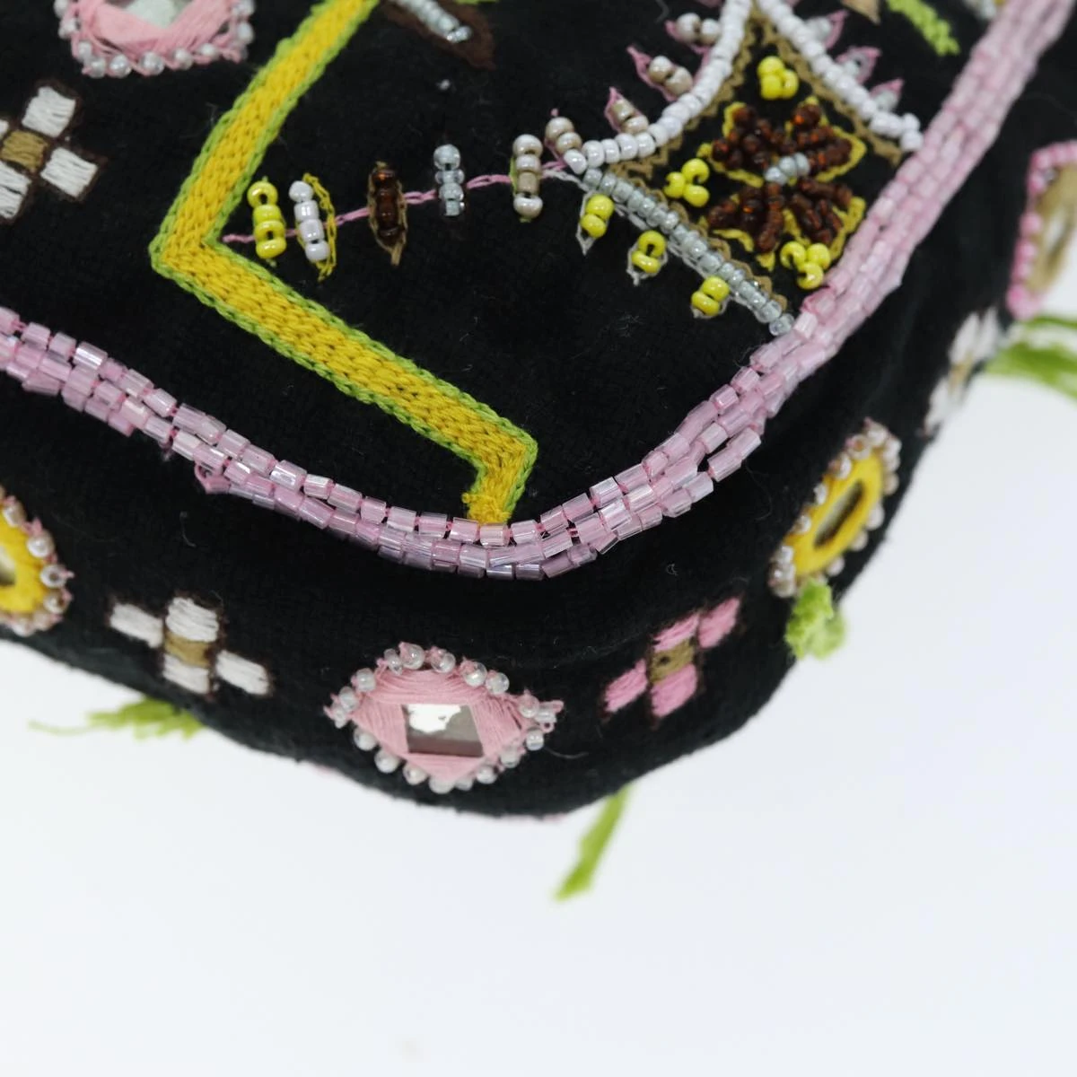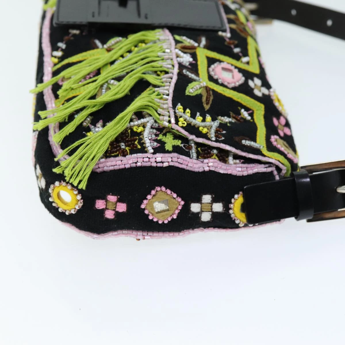 FENDI Mamma Baguette Shoulder Bag beads Black Auth 75387A