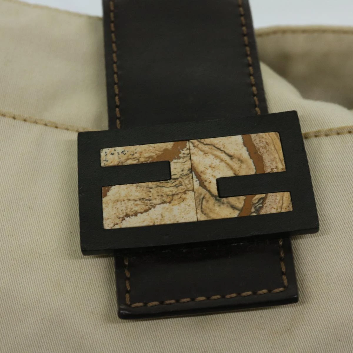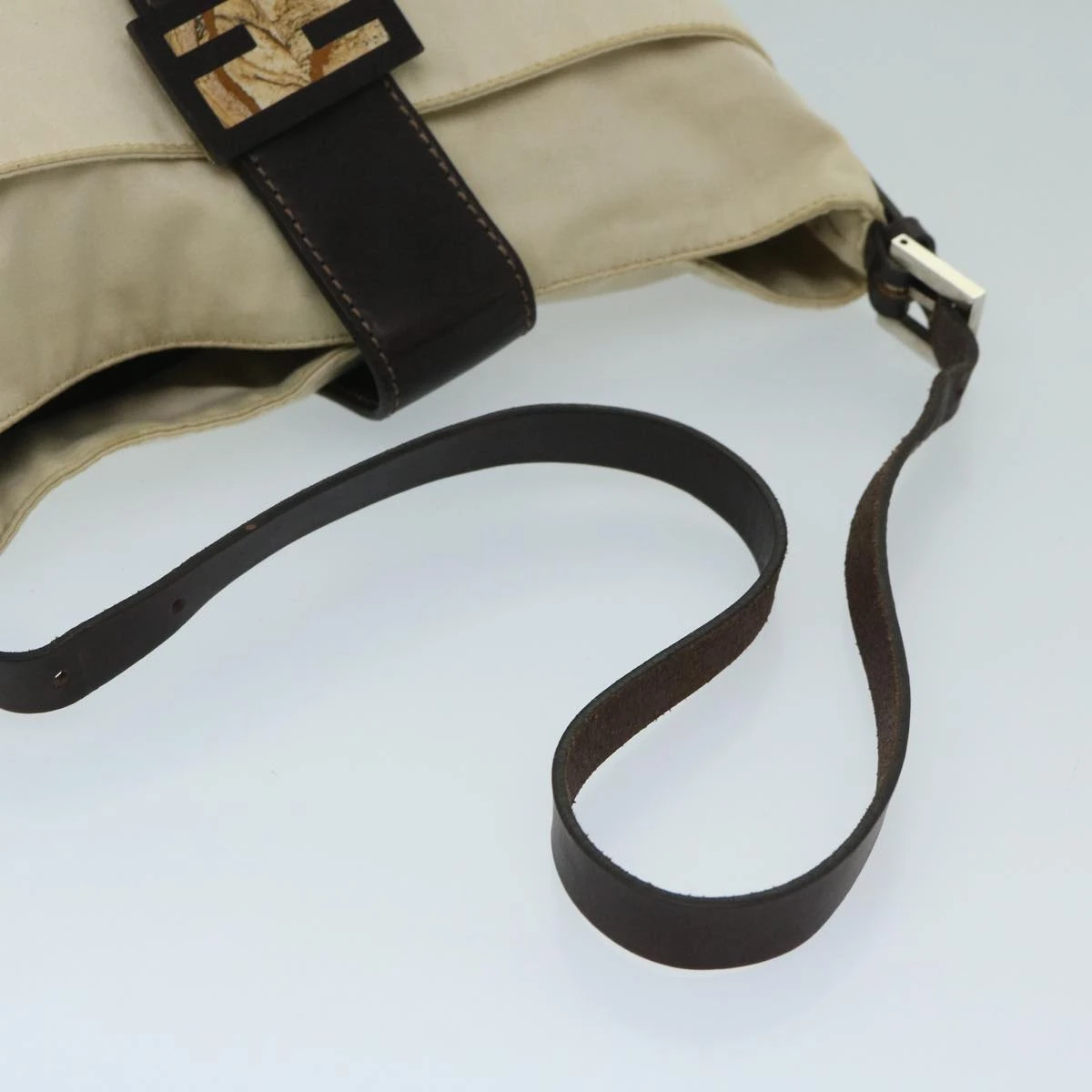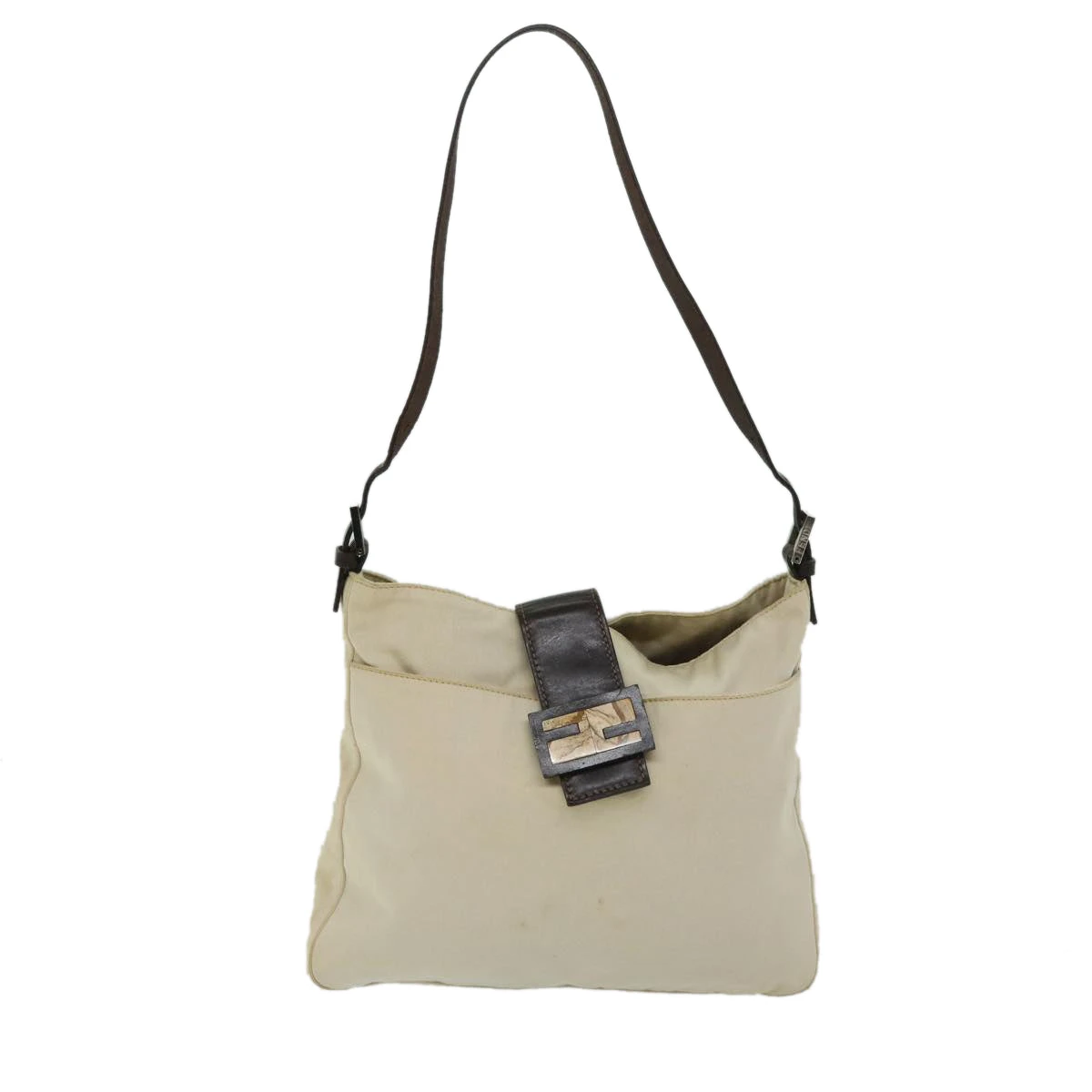 FENDI Mamma Baguette Shoulder Bag Canvas Beige Auth bs12544