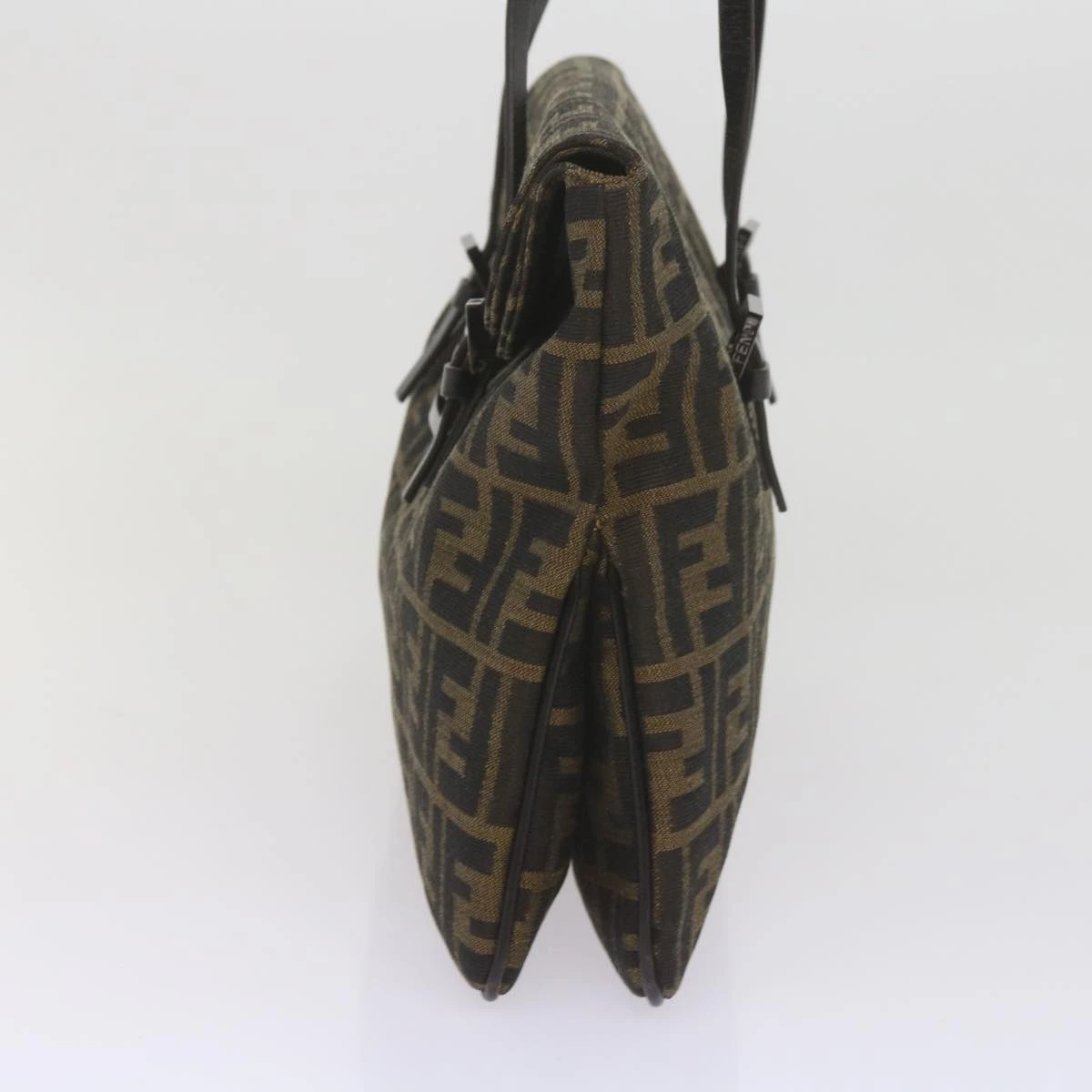 FENDI Zucca Canvas Mamma Baguette Shoulder Bag Black Brown Auth ep2540