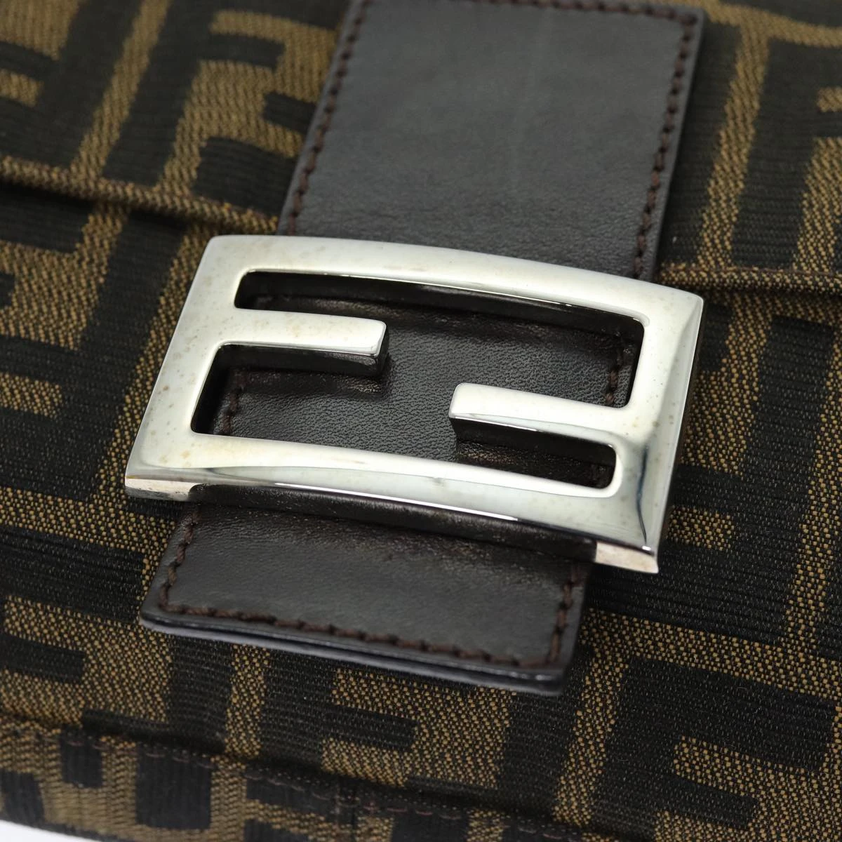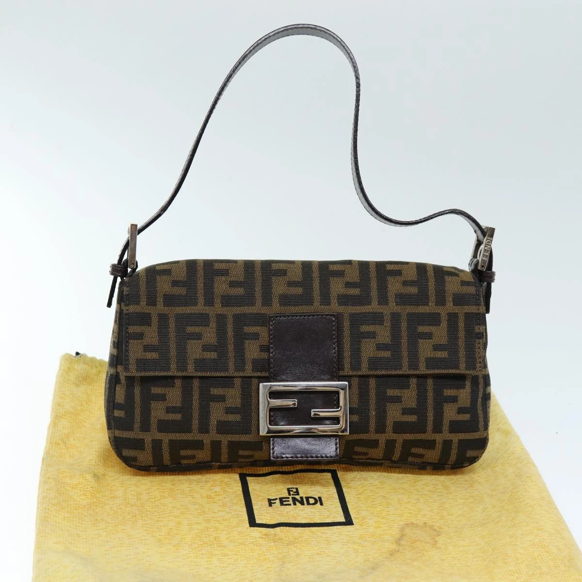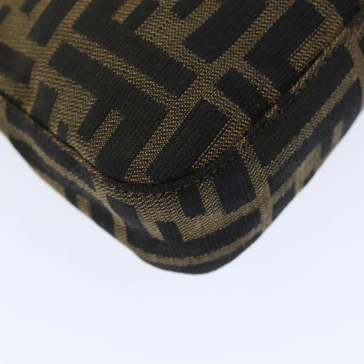 FENDI Zucchino Canvas Mamma Baguette Shoulder Bag Black Brown Auth am6286A