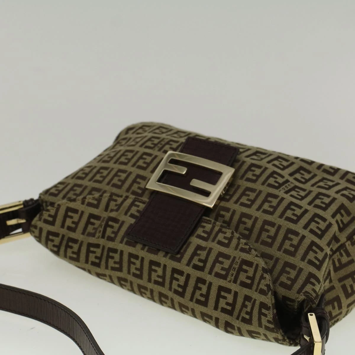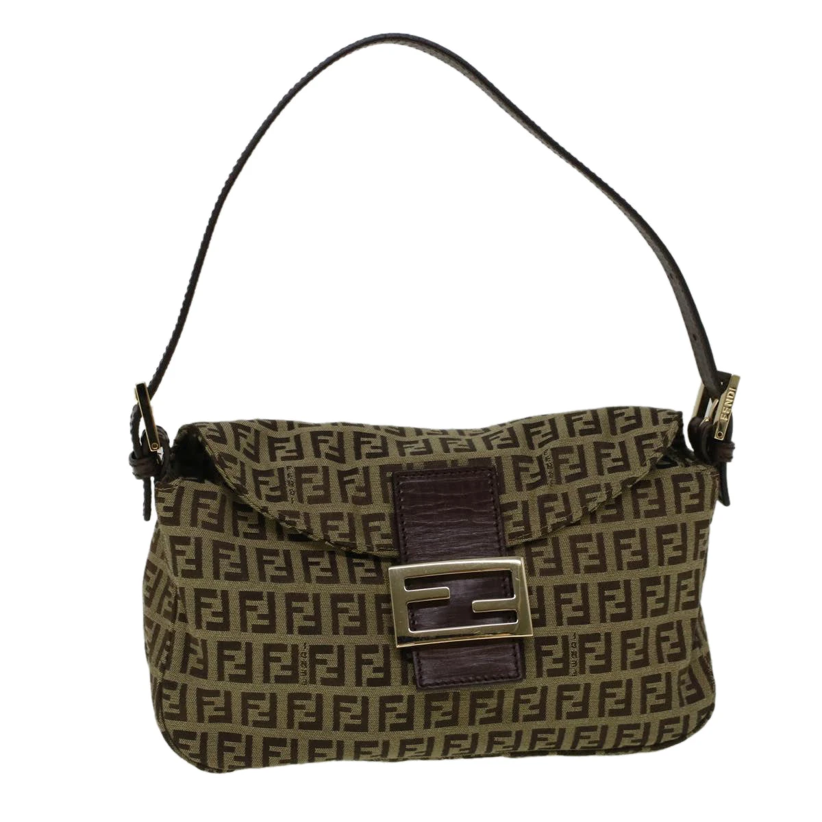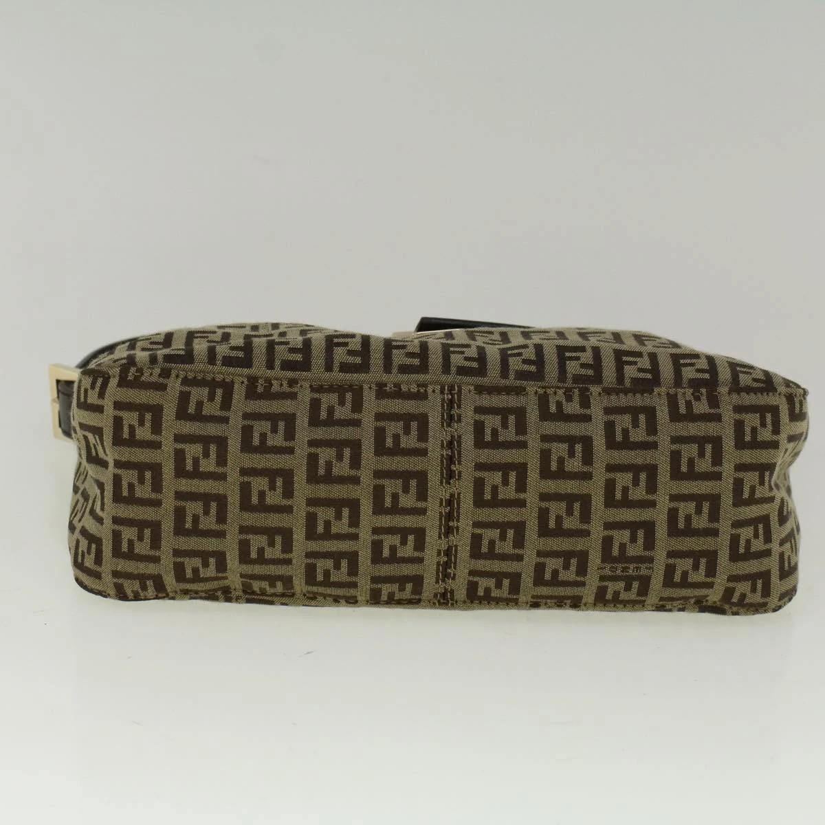 FENDI Zucchino Canvas Mamma Baguette Shoulder Bag Brown Auth 57292
