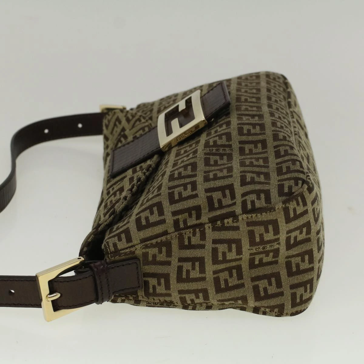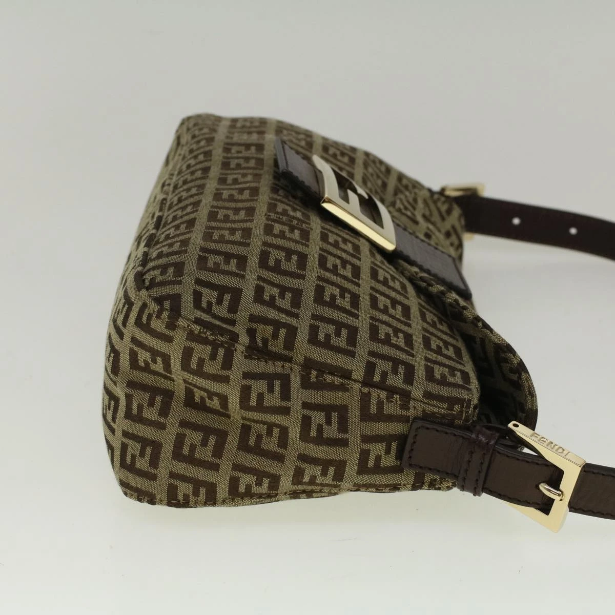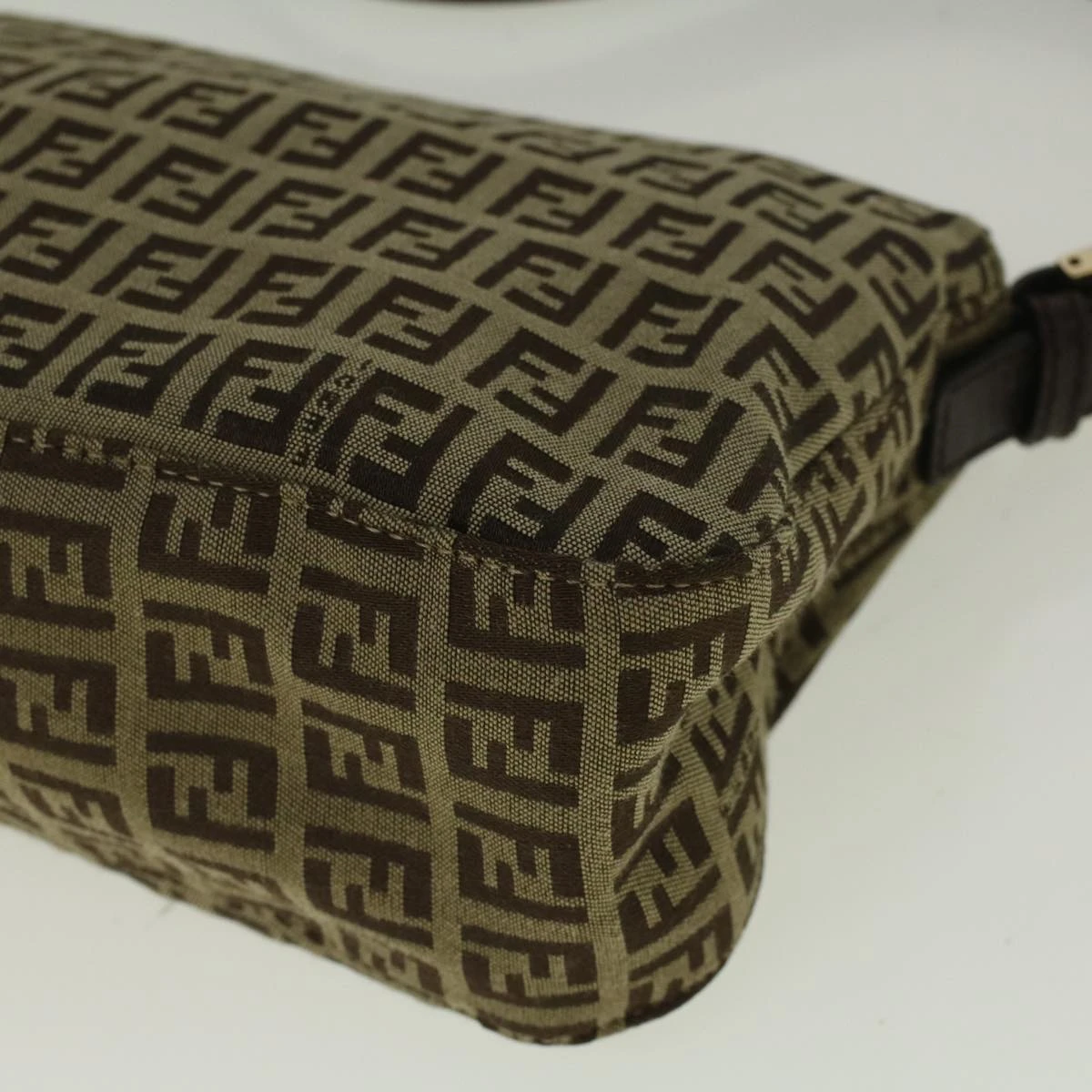 FENDI Zucchino Canvas Mamma Baguette Shoulder Bag Brown Auth 57292