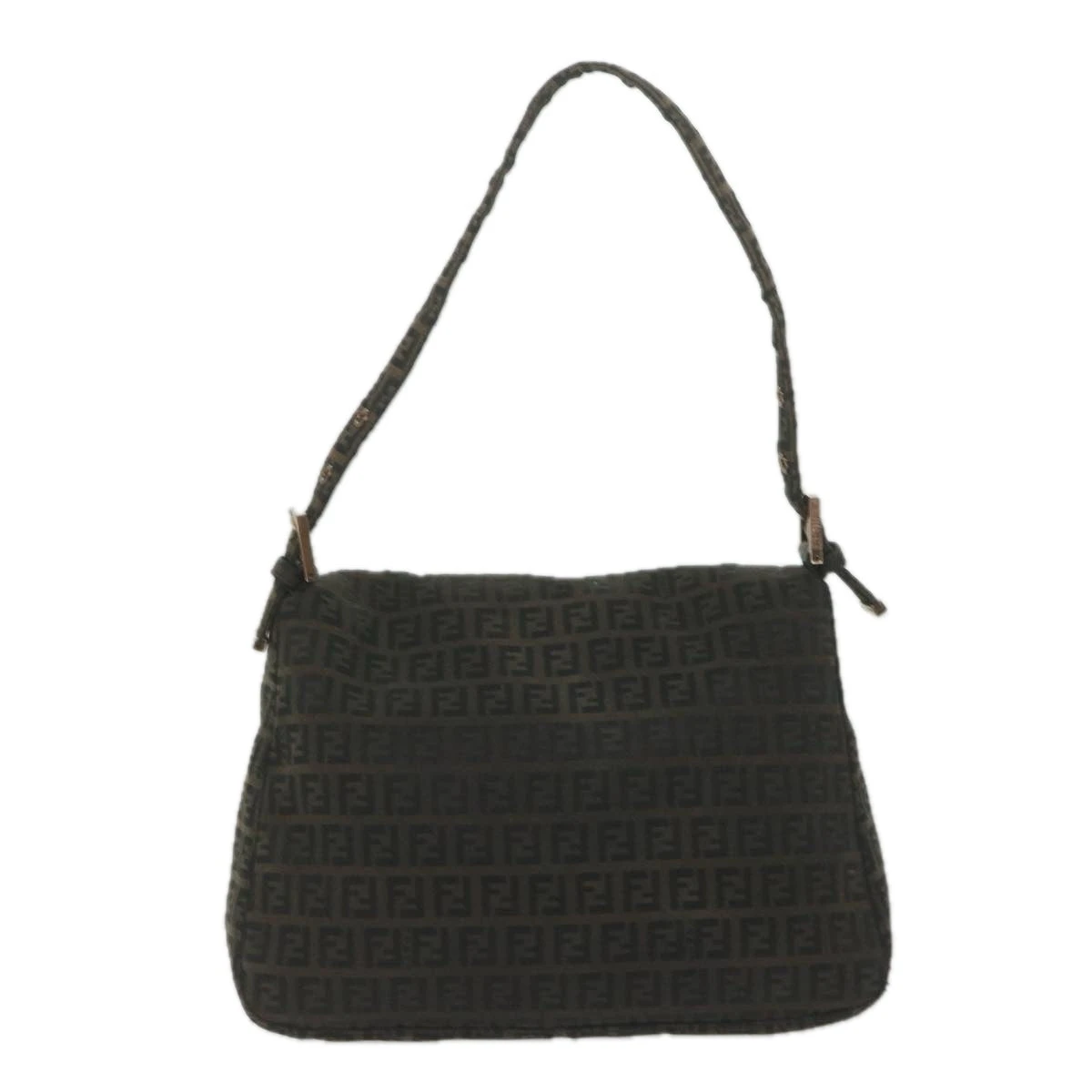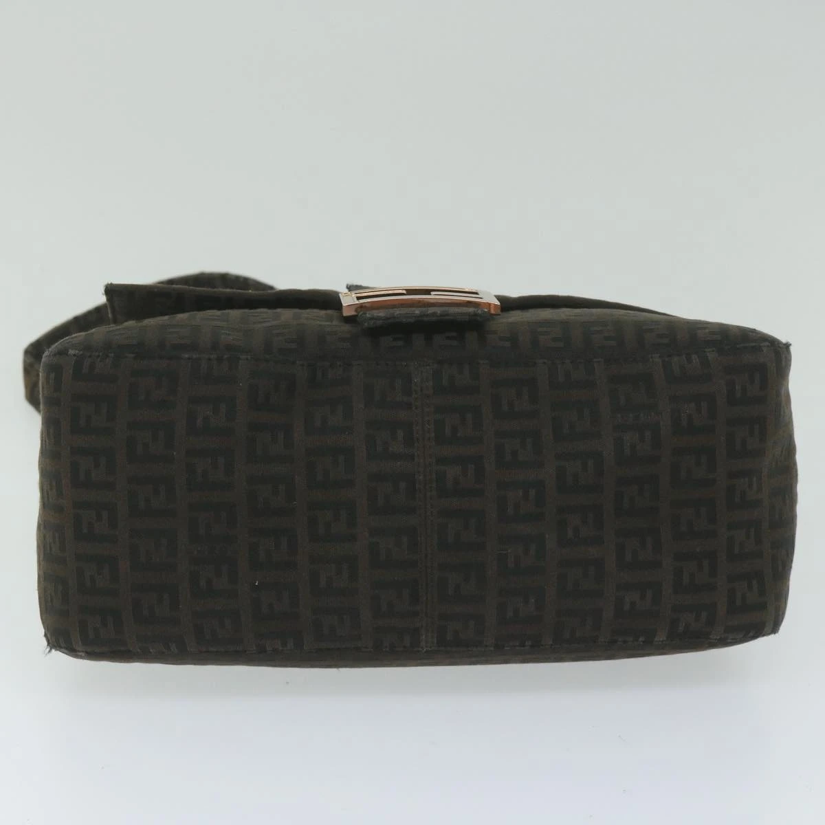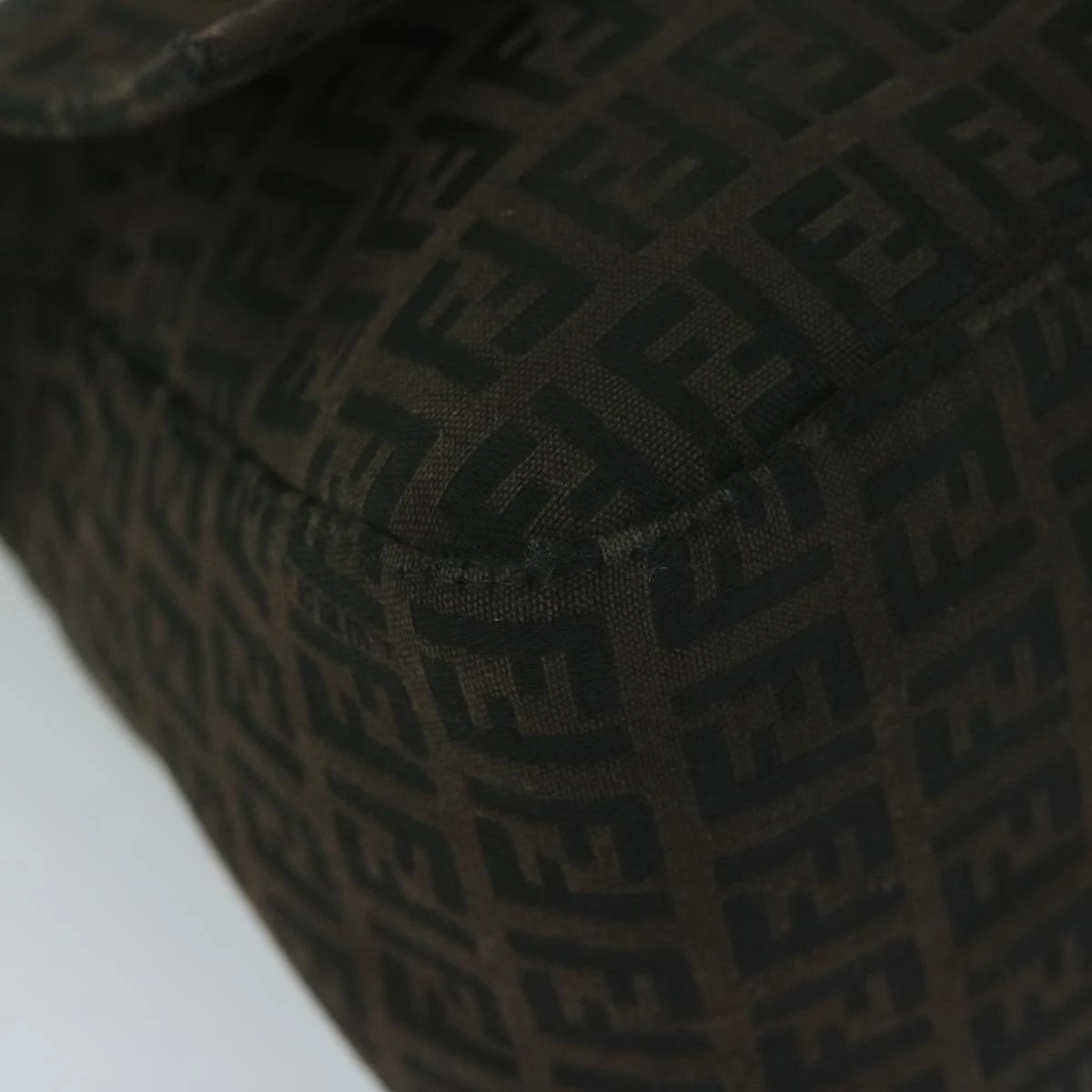 FENDI Zucchino Canvas Mamma Baguette Shoulder Bag Dark Brown Auth ep2515