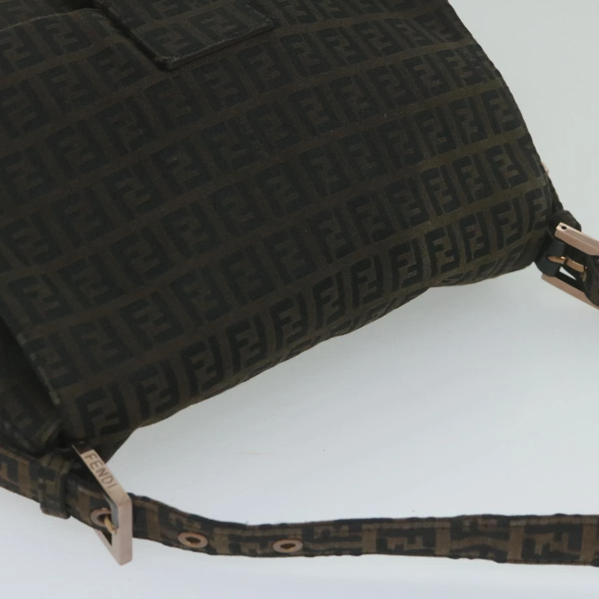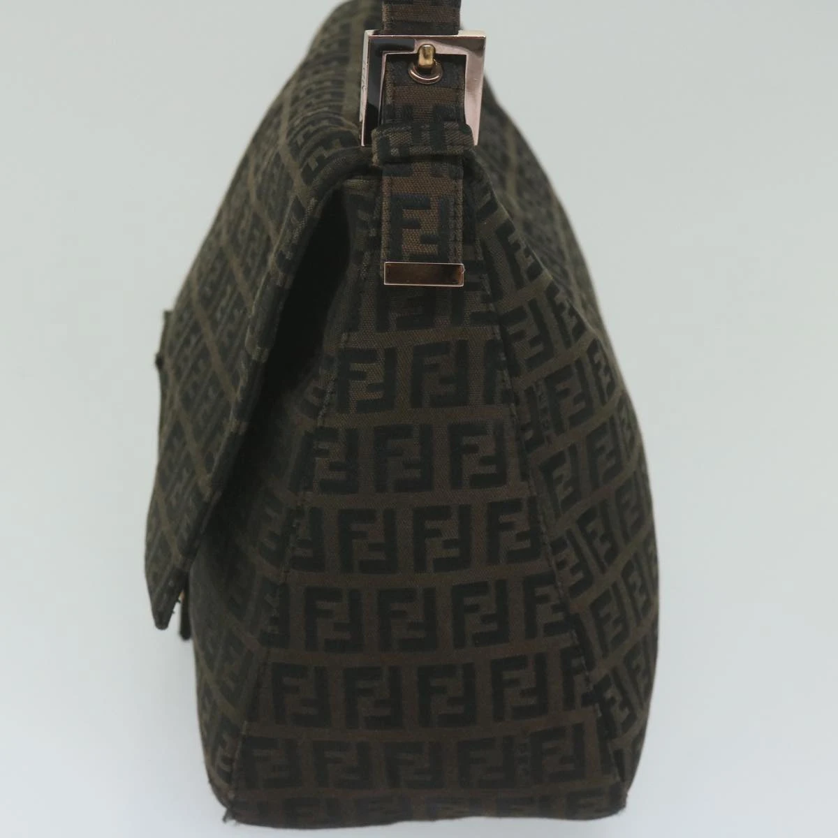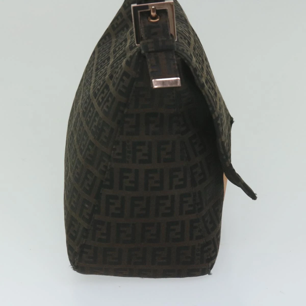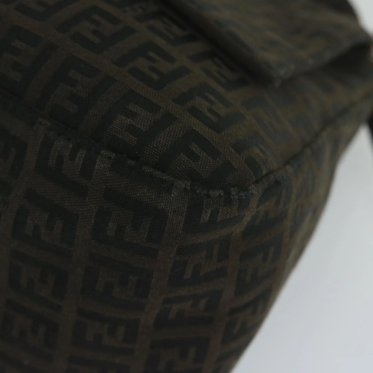 FENDI Zucchino Canvas Mamma Baguette Shoulder Bag Dark Brown Auth ep2515
