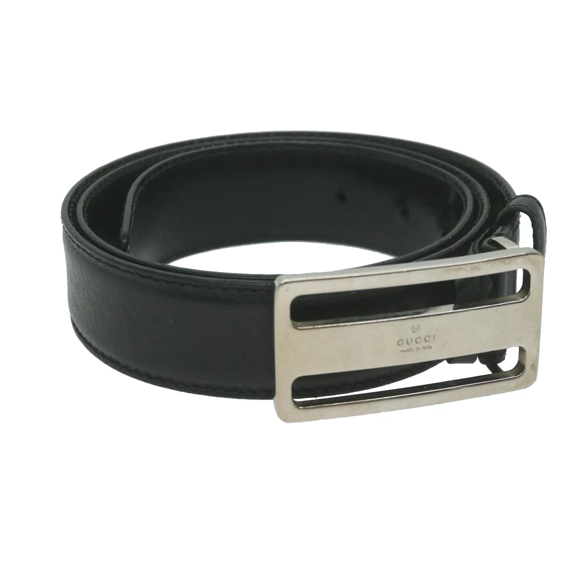 GUCCI Belt Leather 33.5″-35.4″ Black Auth ti1522