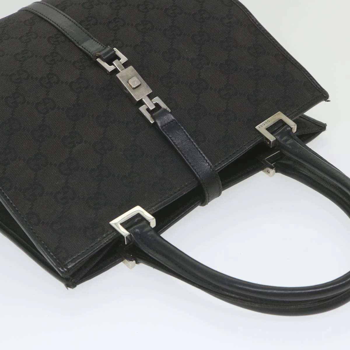 GUCCI GG Canvas Jackie Hand Bag Black 002 1065 Auth ep2440