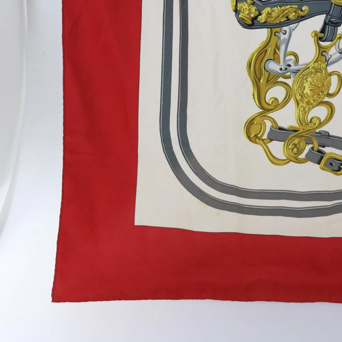 HERMES Carre 90 BRIDES de GALA Scarf Silk Red Auth cl820