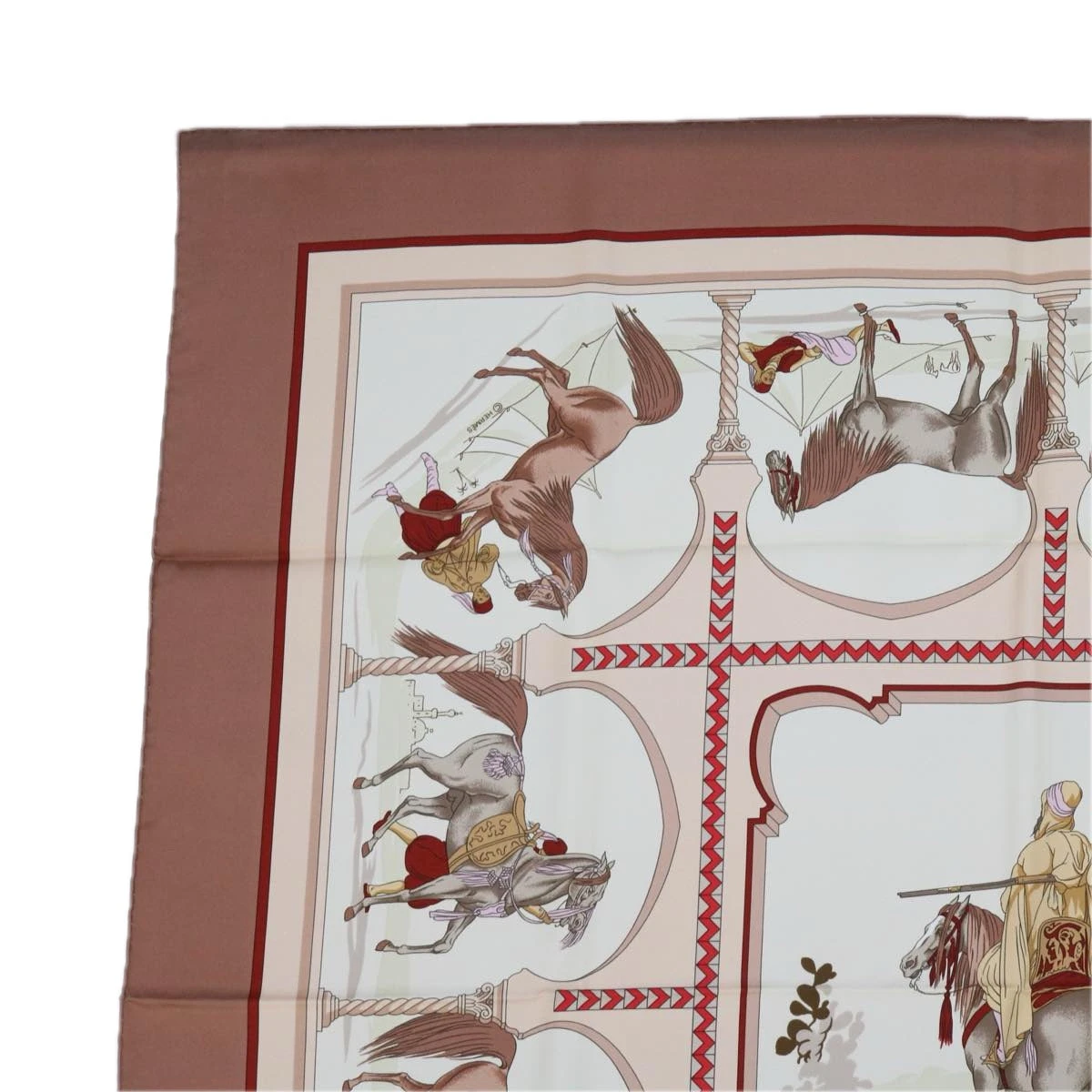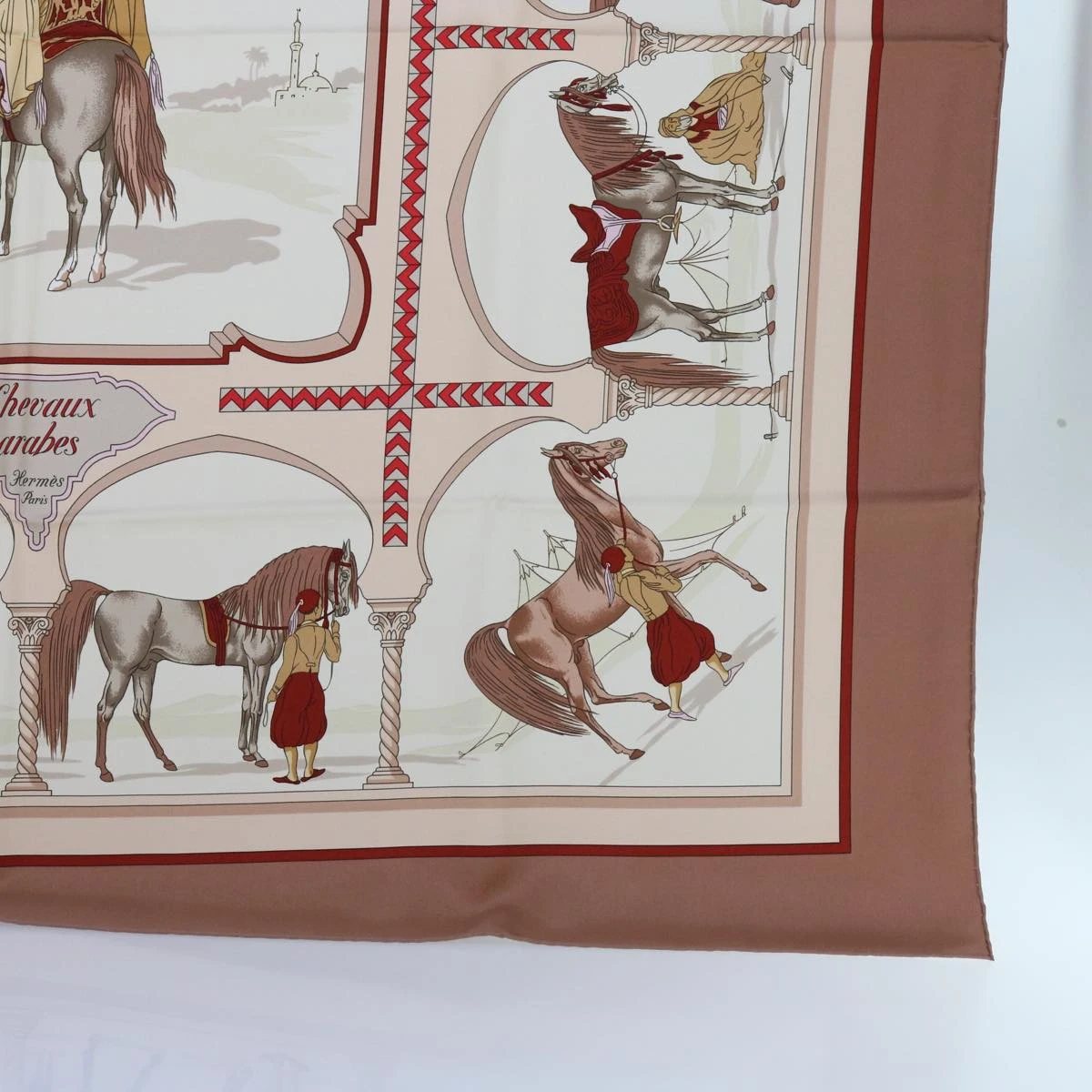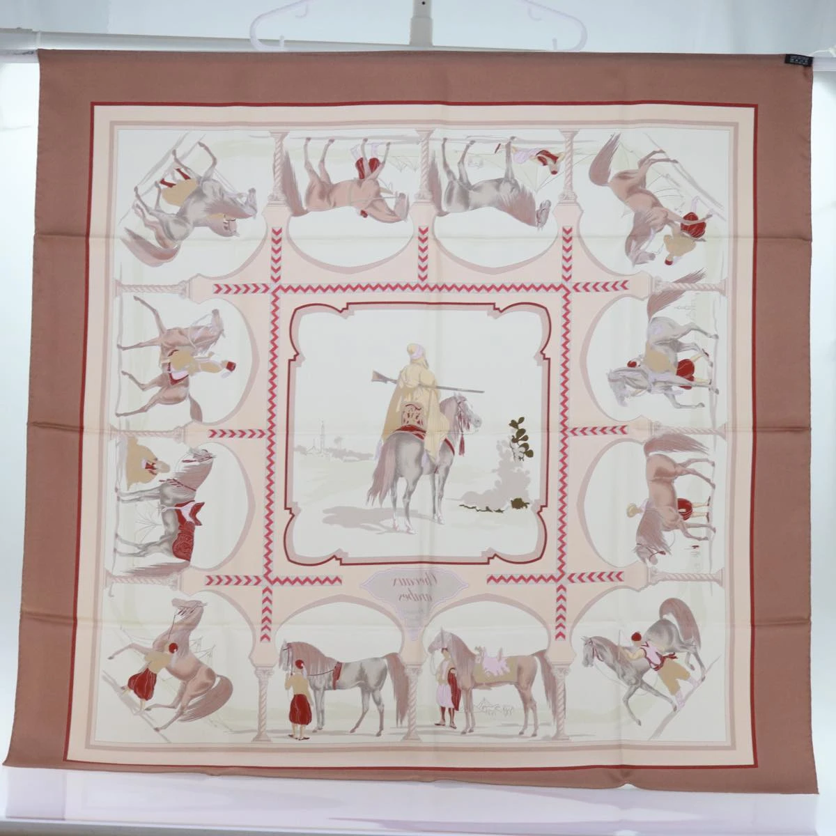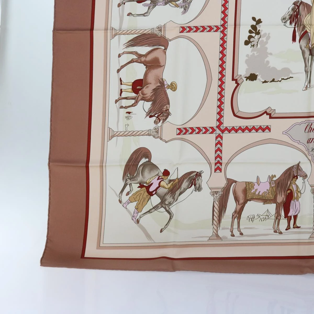 HERMES Carre 90 CHEVAUX ARABES Scarf Silk Brown Auth am5302