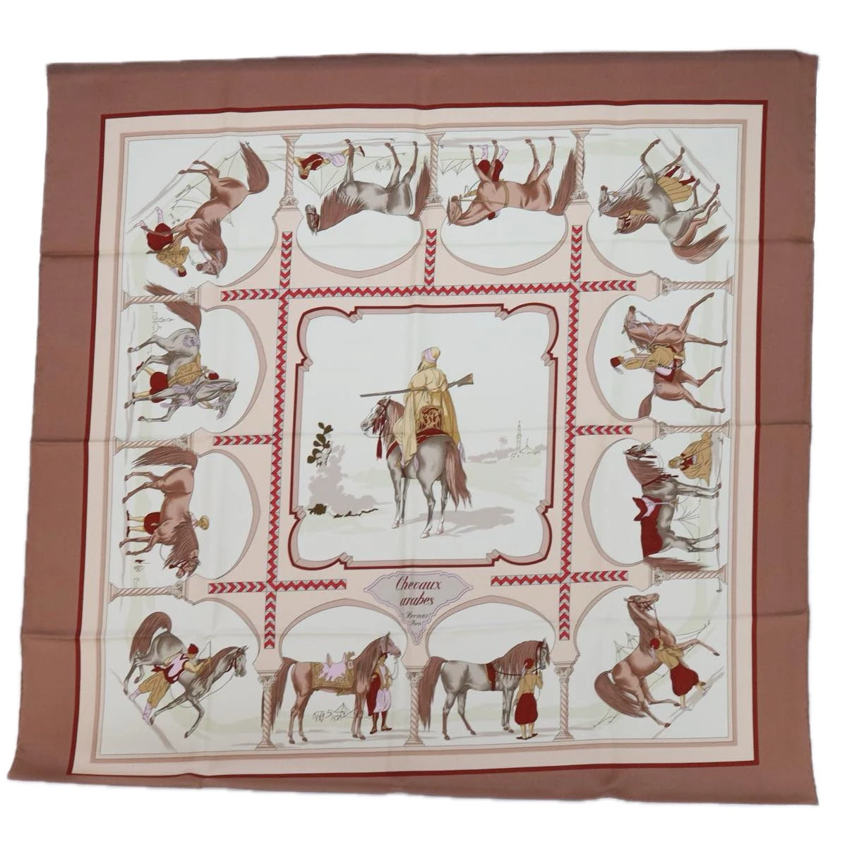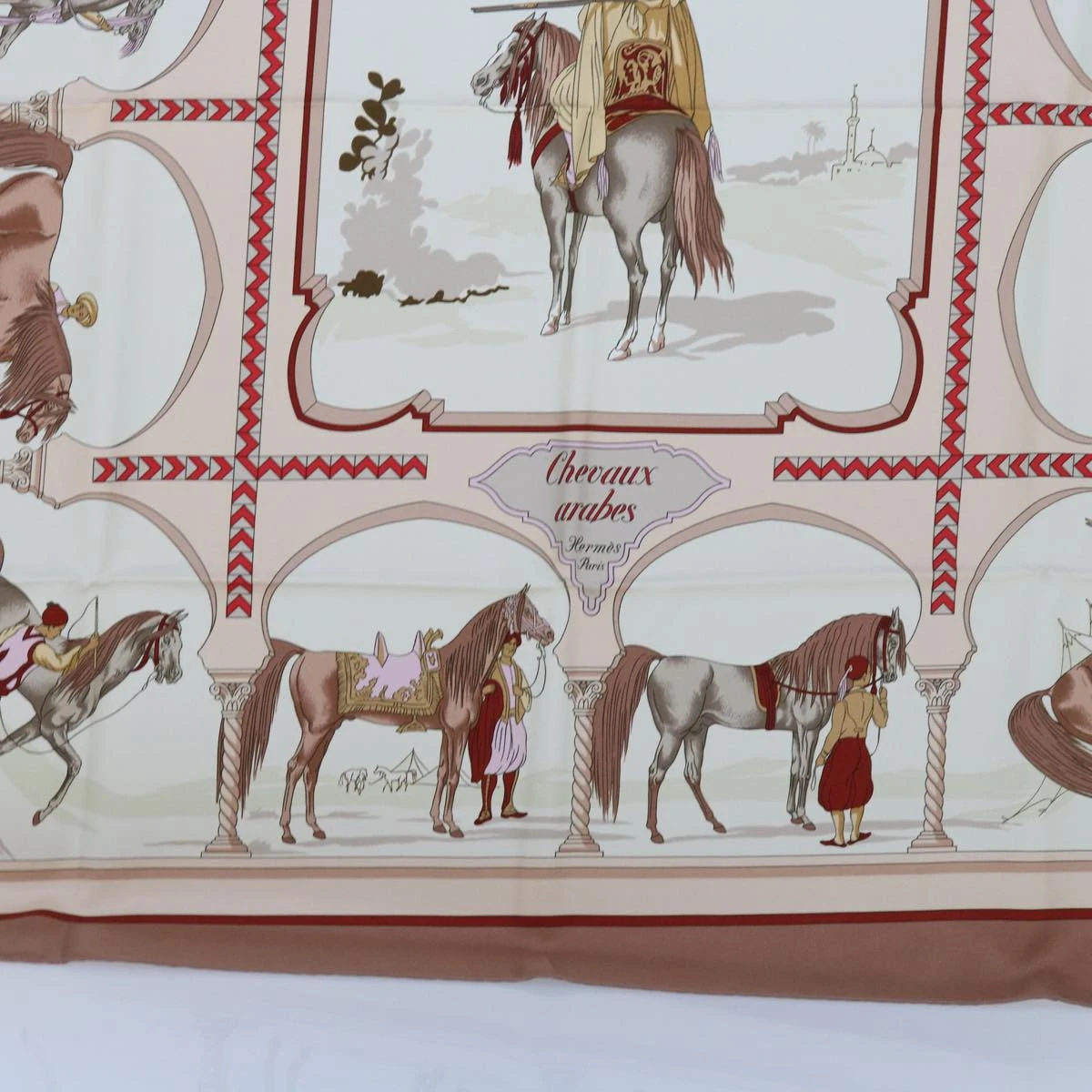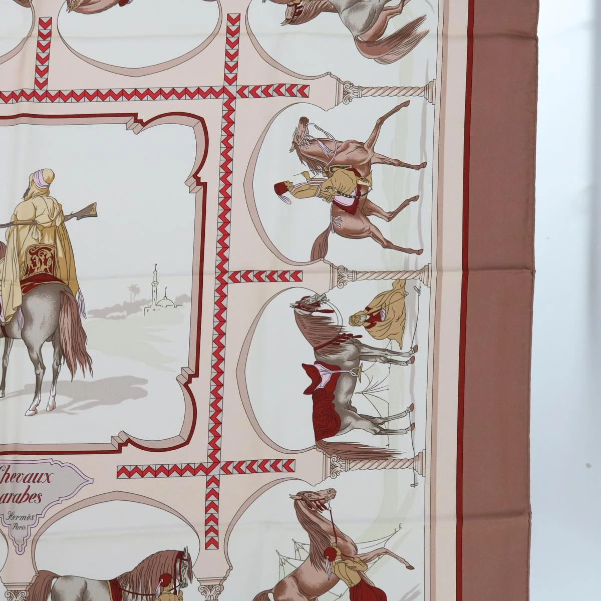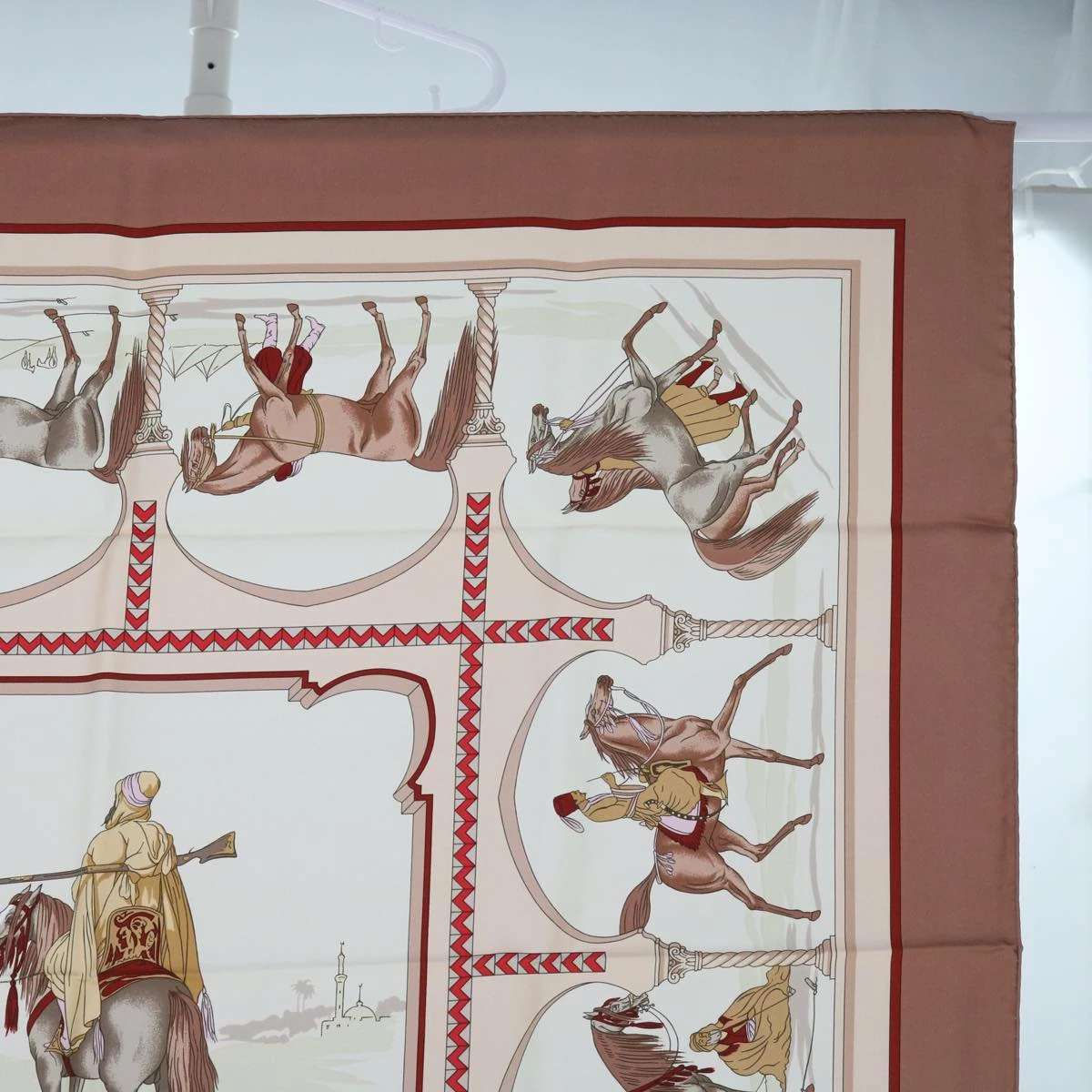 HERMES Carre 90 CHEVAUX ARABES Scarf Silk Brown Auth am5302