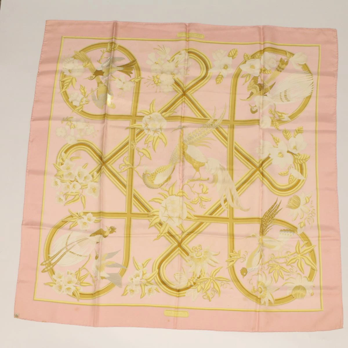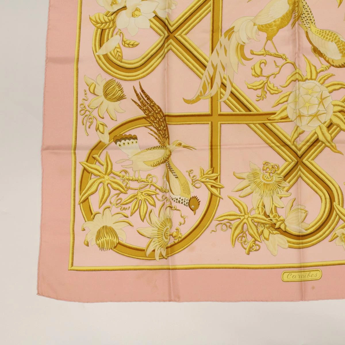 HERMES Carre 90 Scarf “CARAIBES” Silk Pink Auth am4617