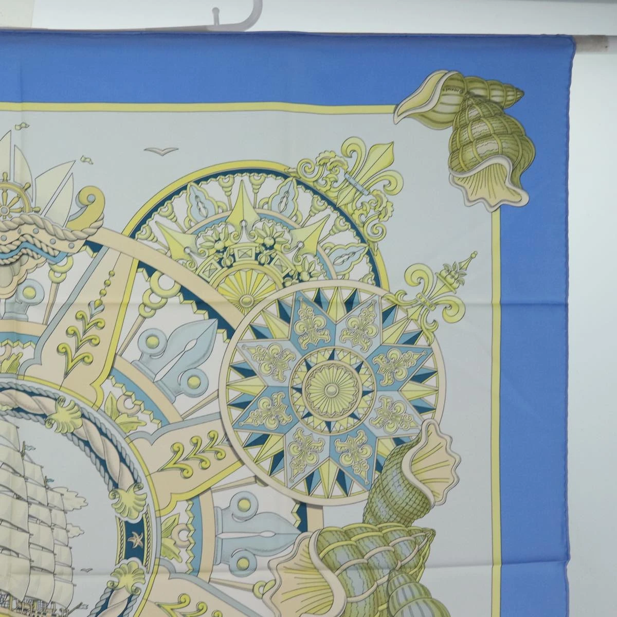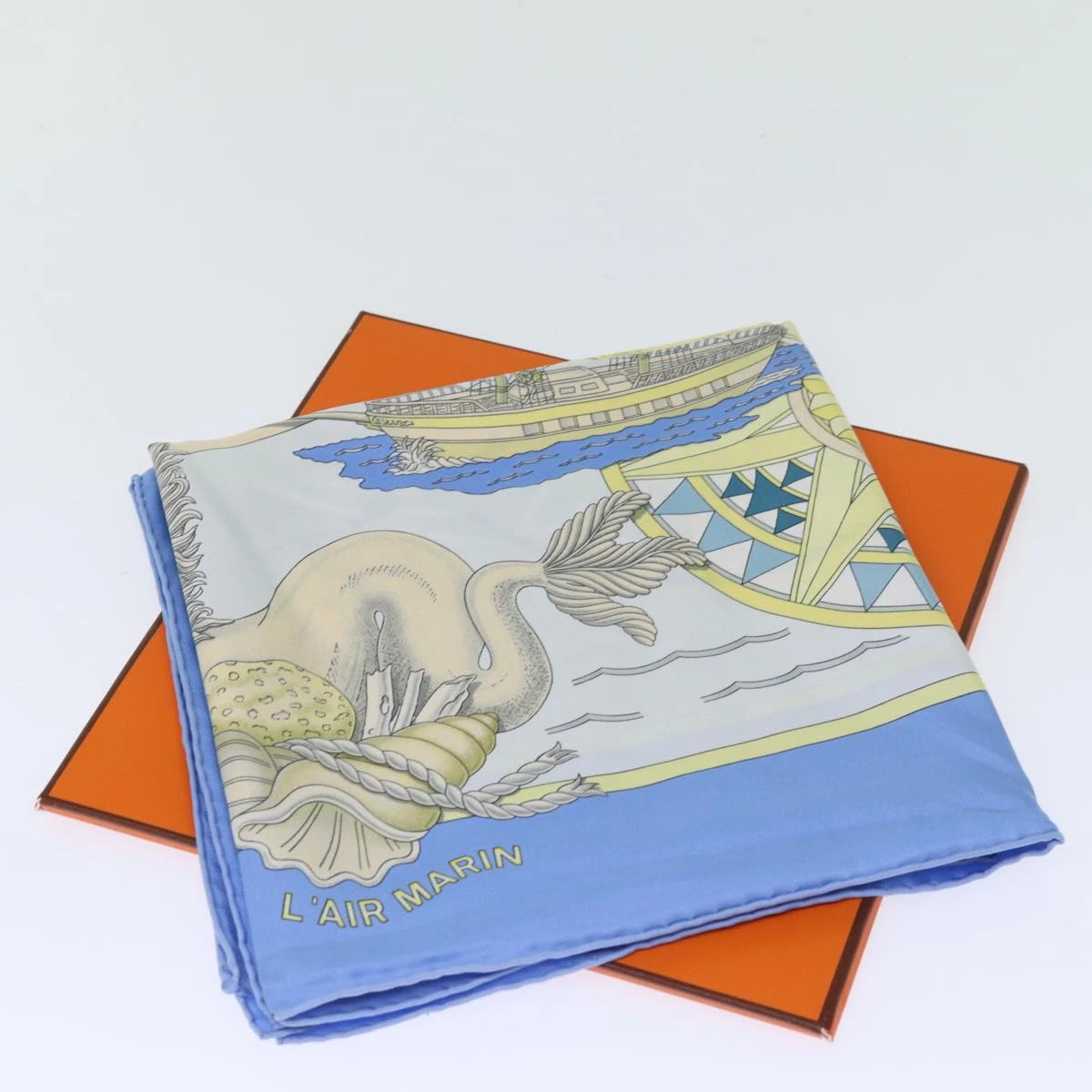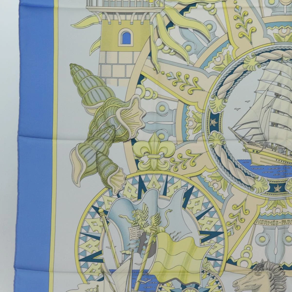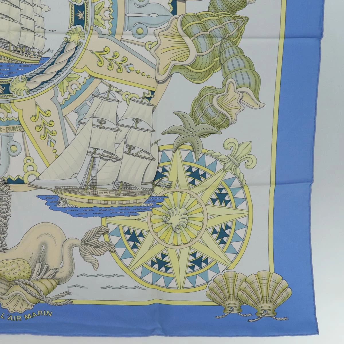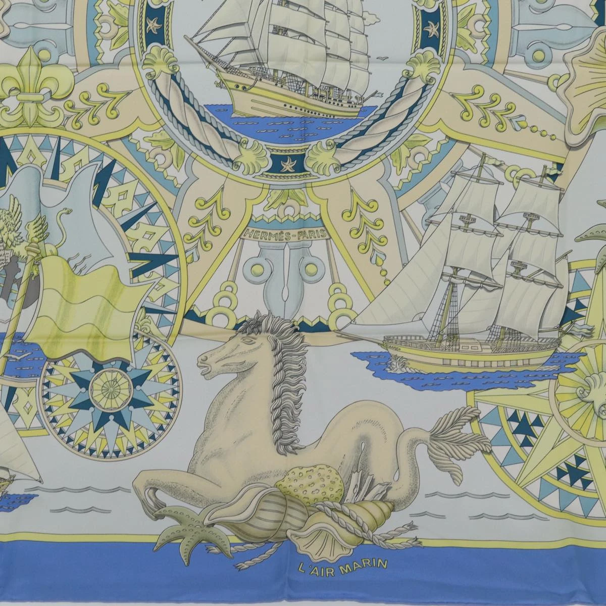 HERMES Carre 90 Scarf “L’AIR MARIN” Silk Blue Auth am6175