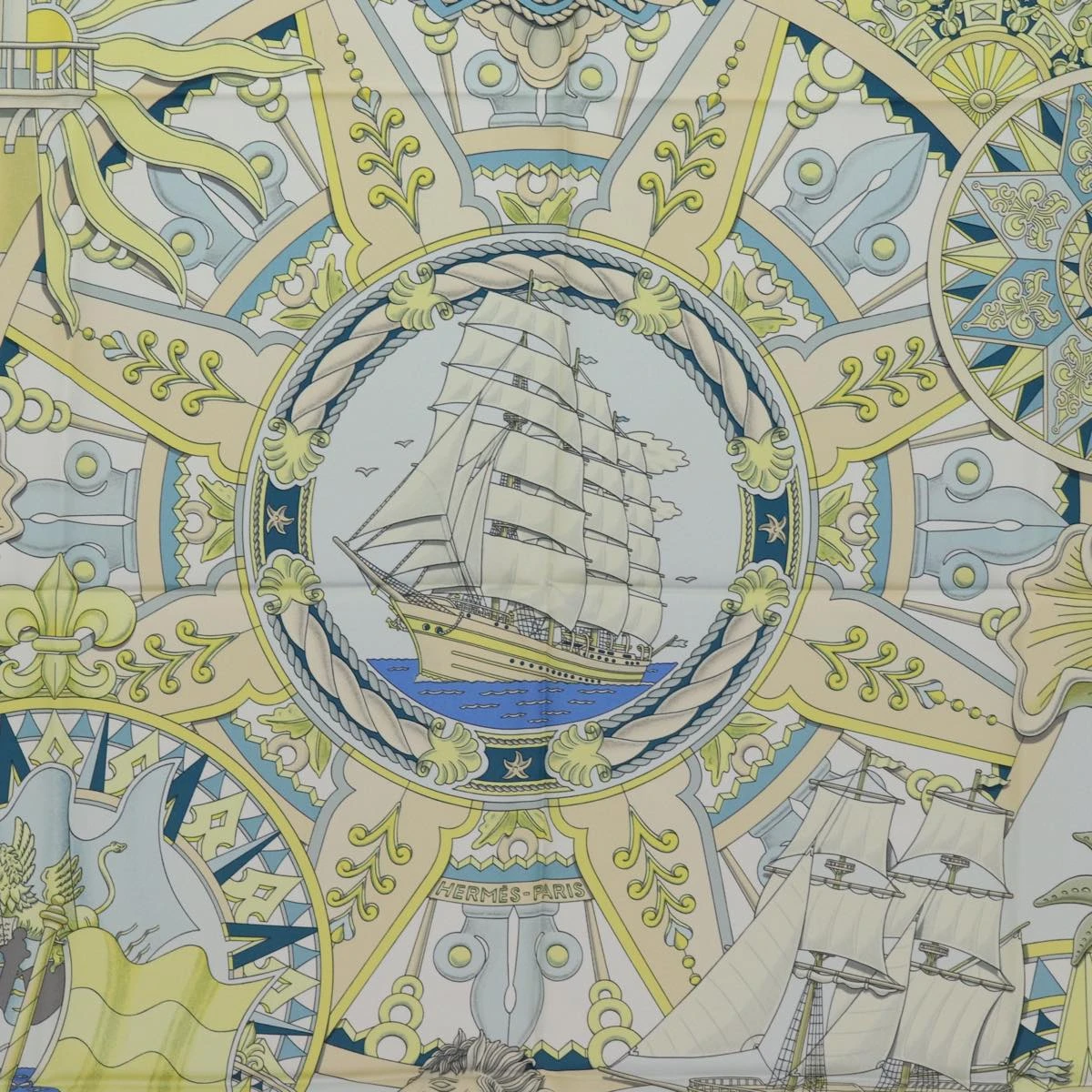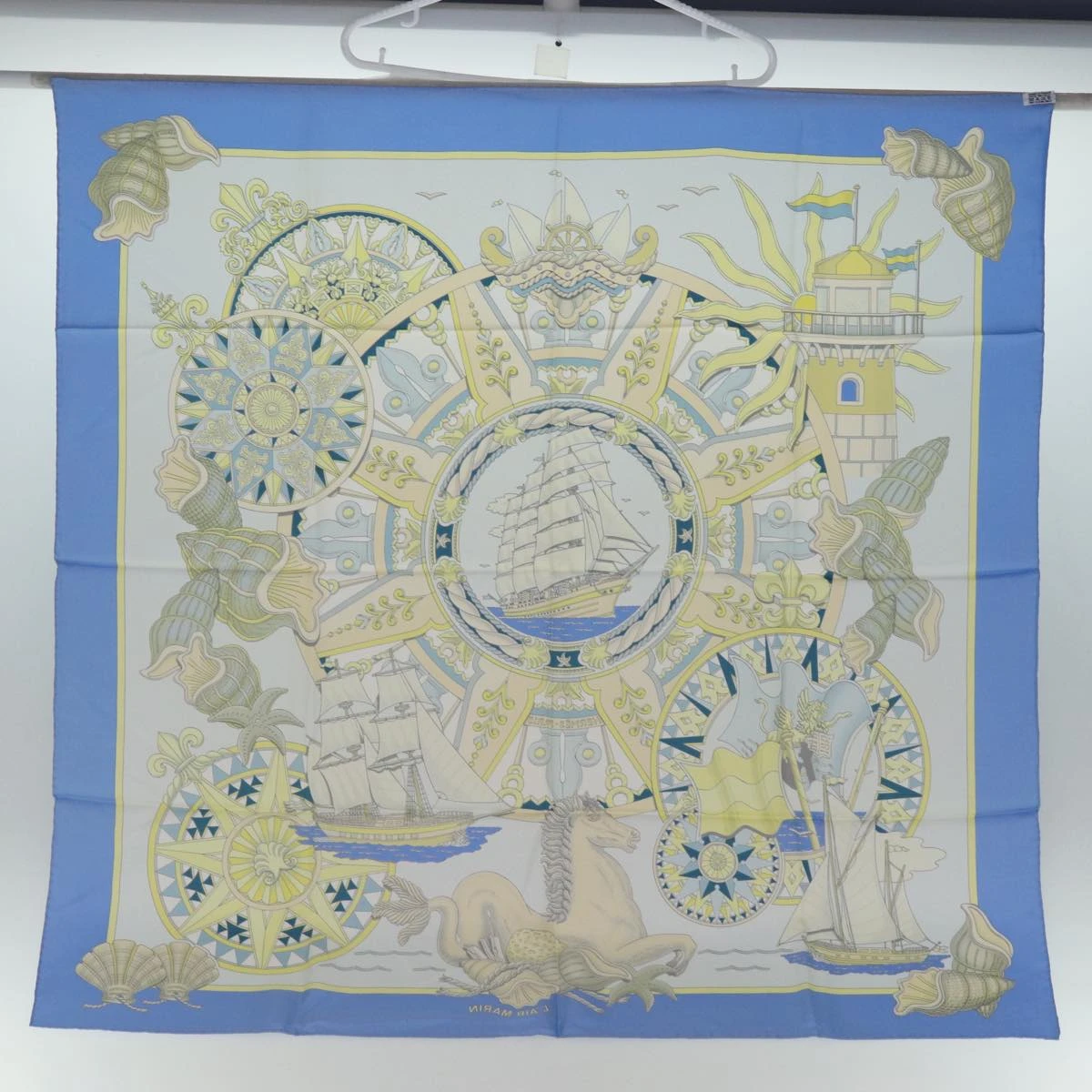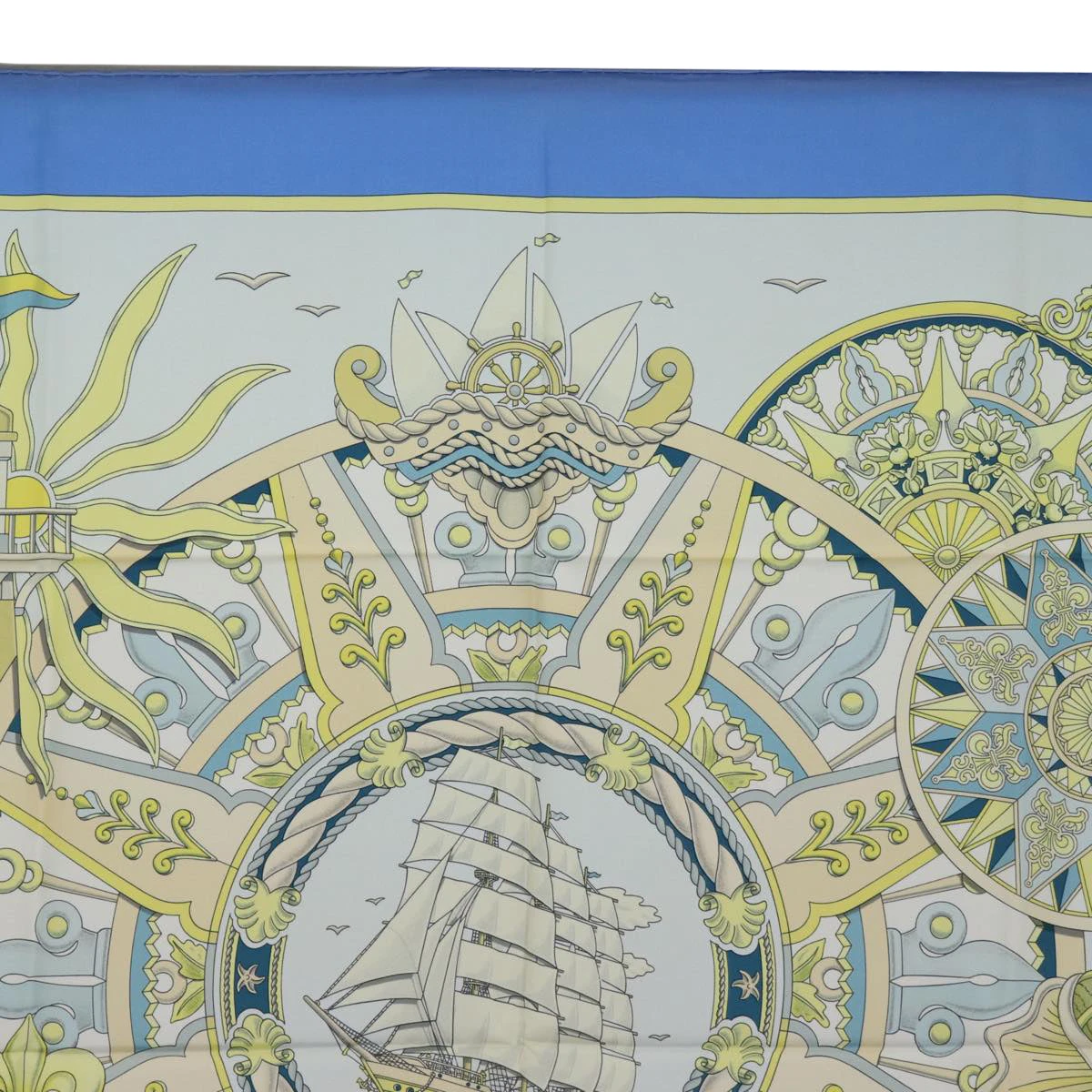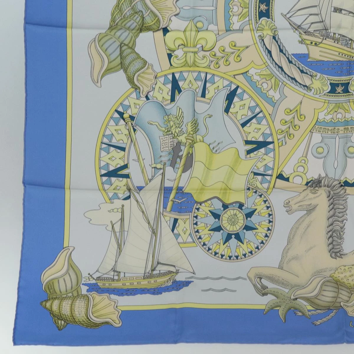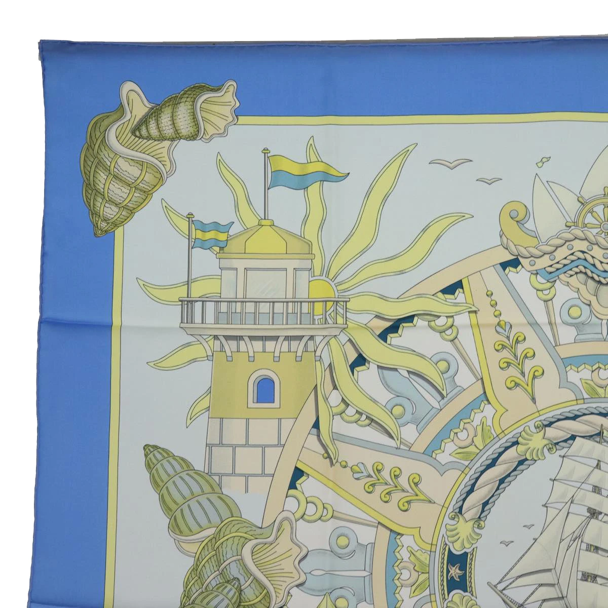 HERMES Carre 90 Scarf “L’AIR MARIN” Silk Blue Auth am6175