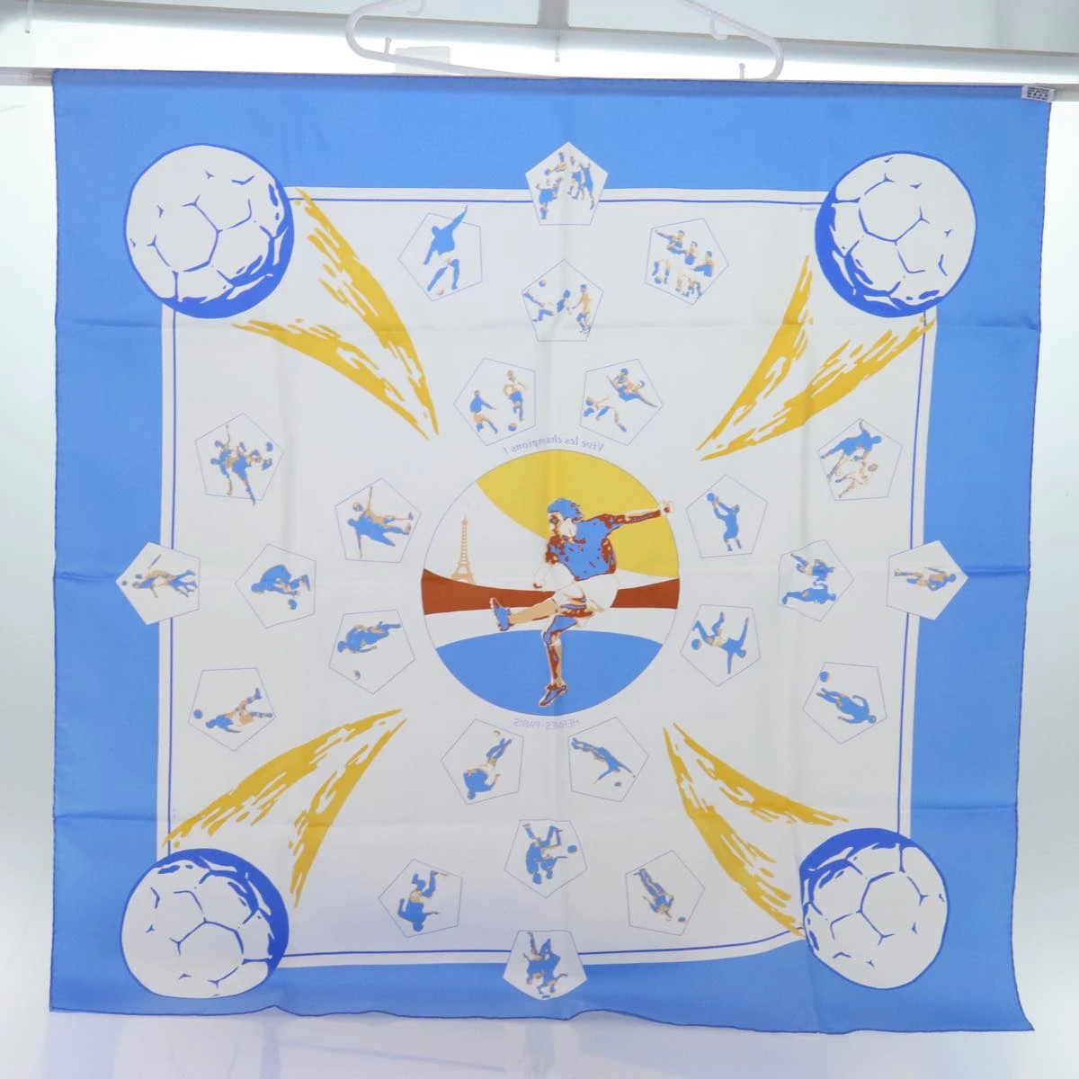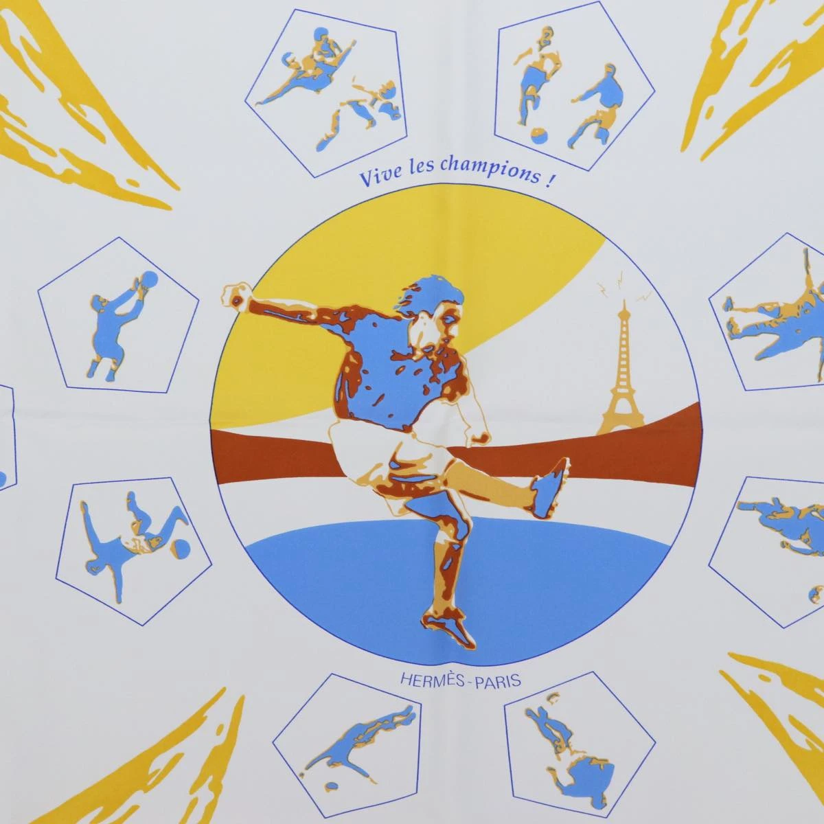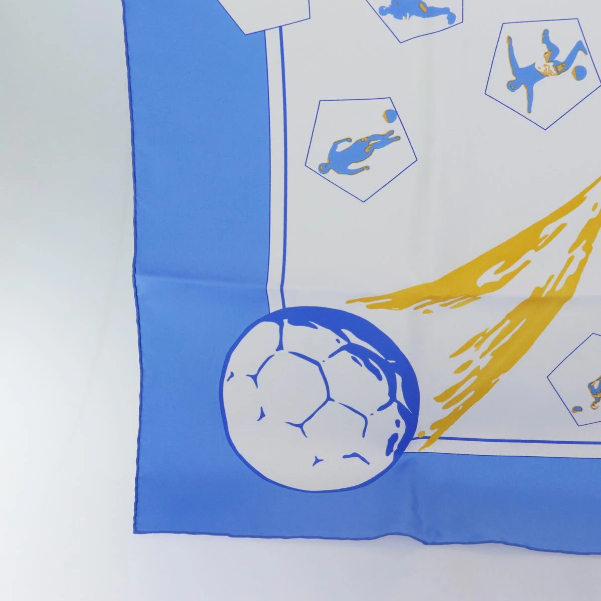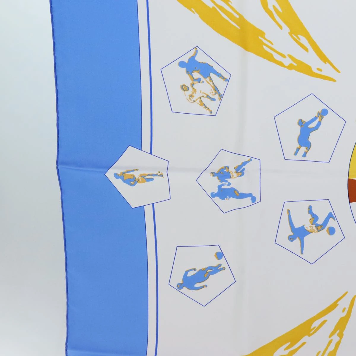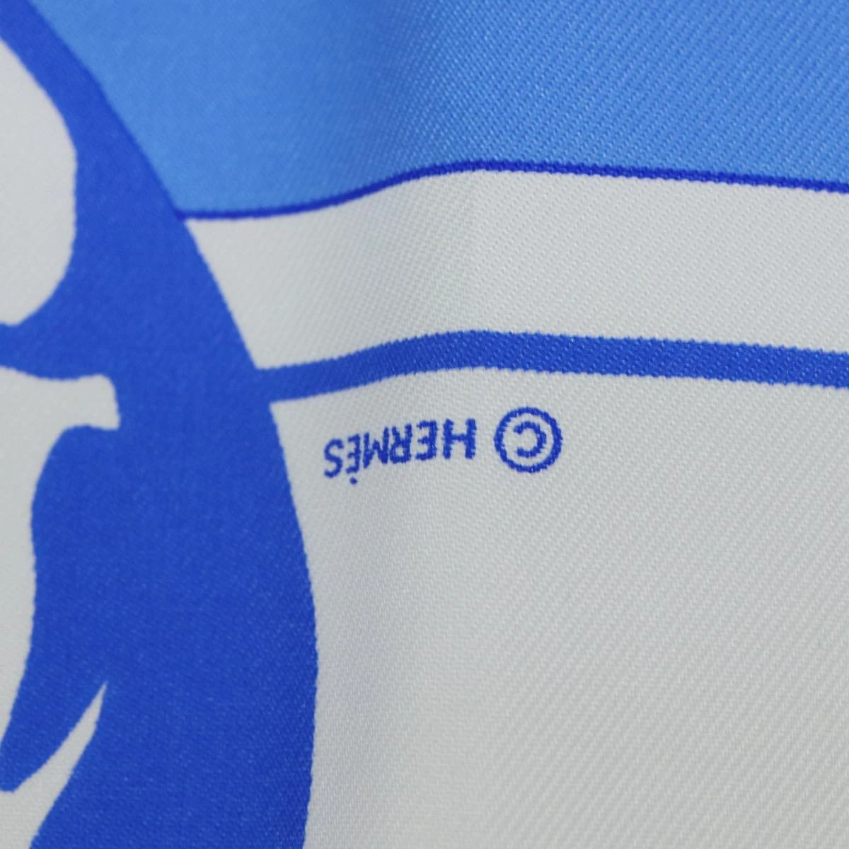 HERMES Carre 90 Vive les champions Scarf Silk Blue White Auth am6019