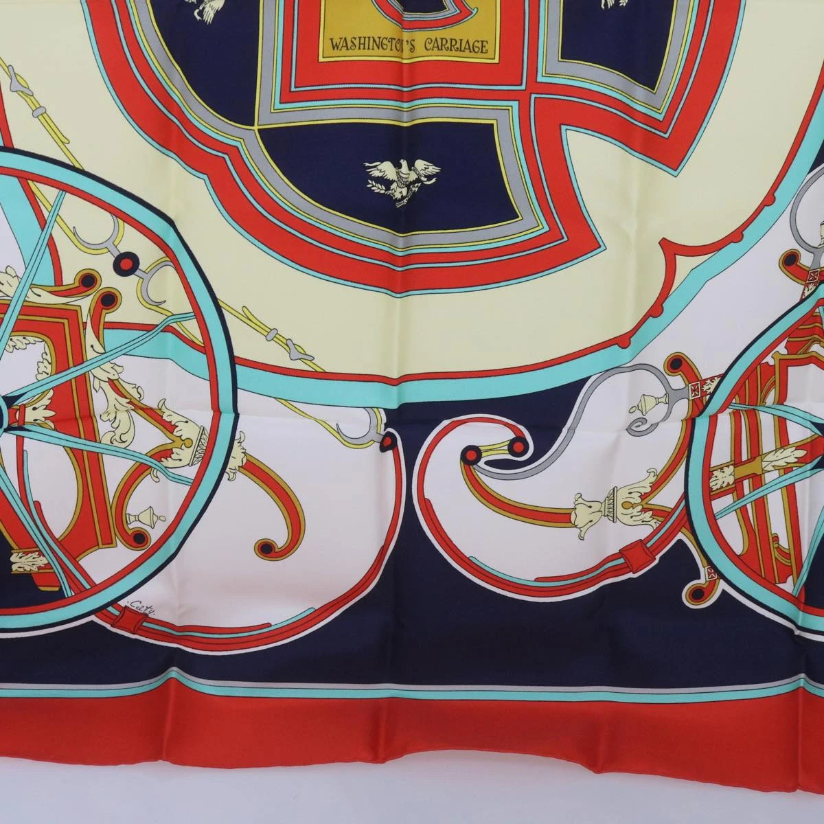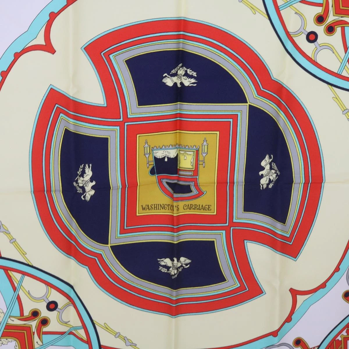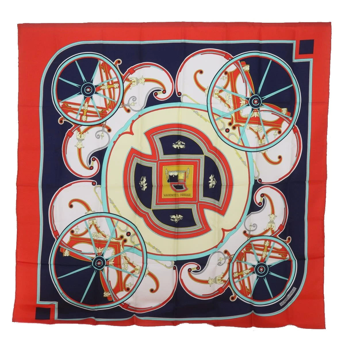 HERMES Carre 90 WASHINGTON�fS CARRIAGE Scarf Silk Red Auth am5911