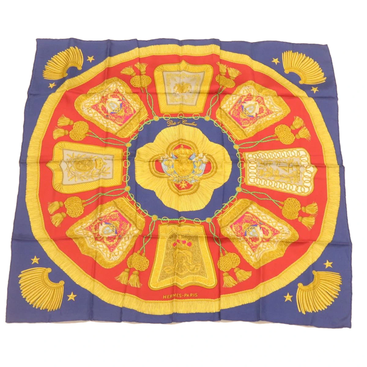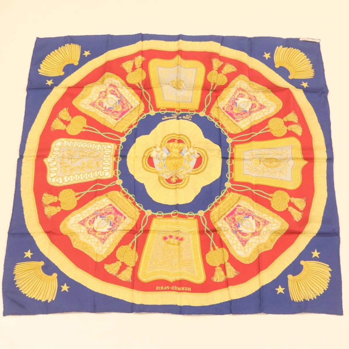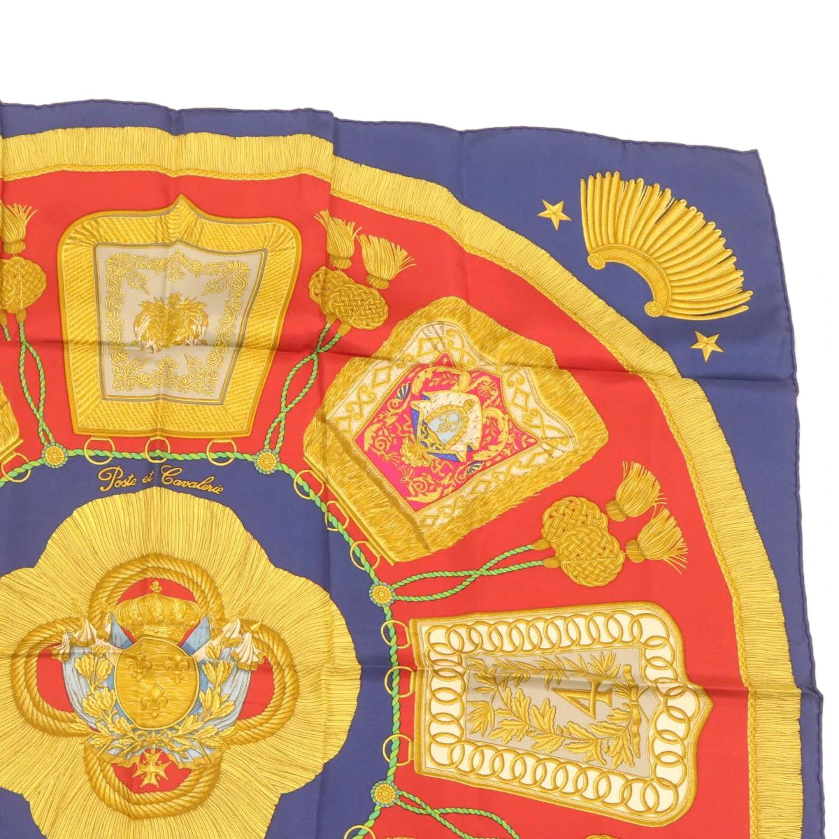 HERMES Carre90 Scarf “Porte et Cavalerie” Silk Blue Auth am374b