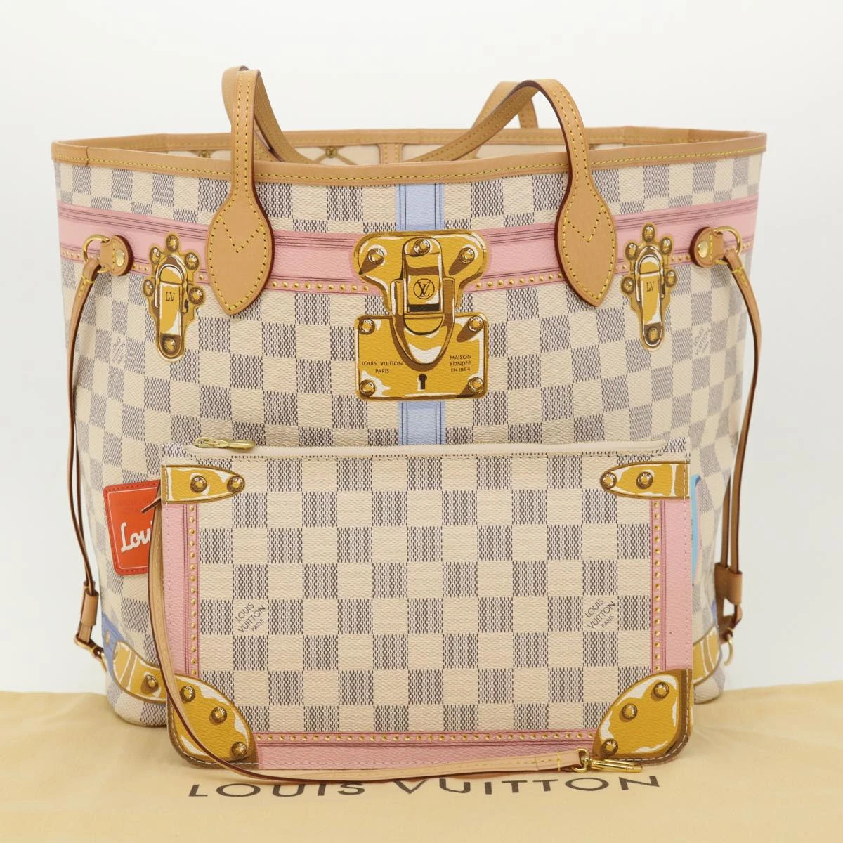 LOUIS VUITTON Damier Azur Summer Trunk Neverfull MM Hand Bag N41065 Auth 67494S