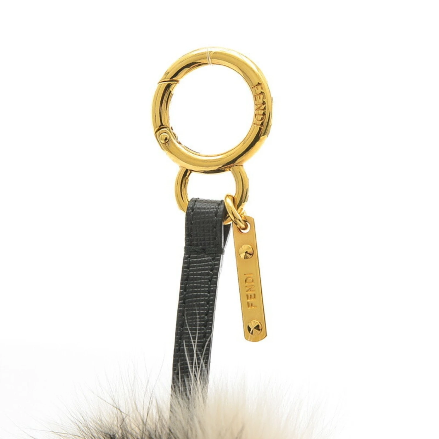 FENDI Pom Fur Charm Black Gray 7AR259