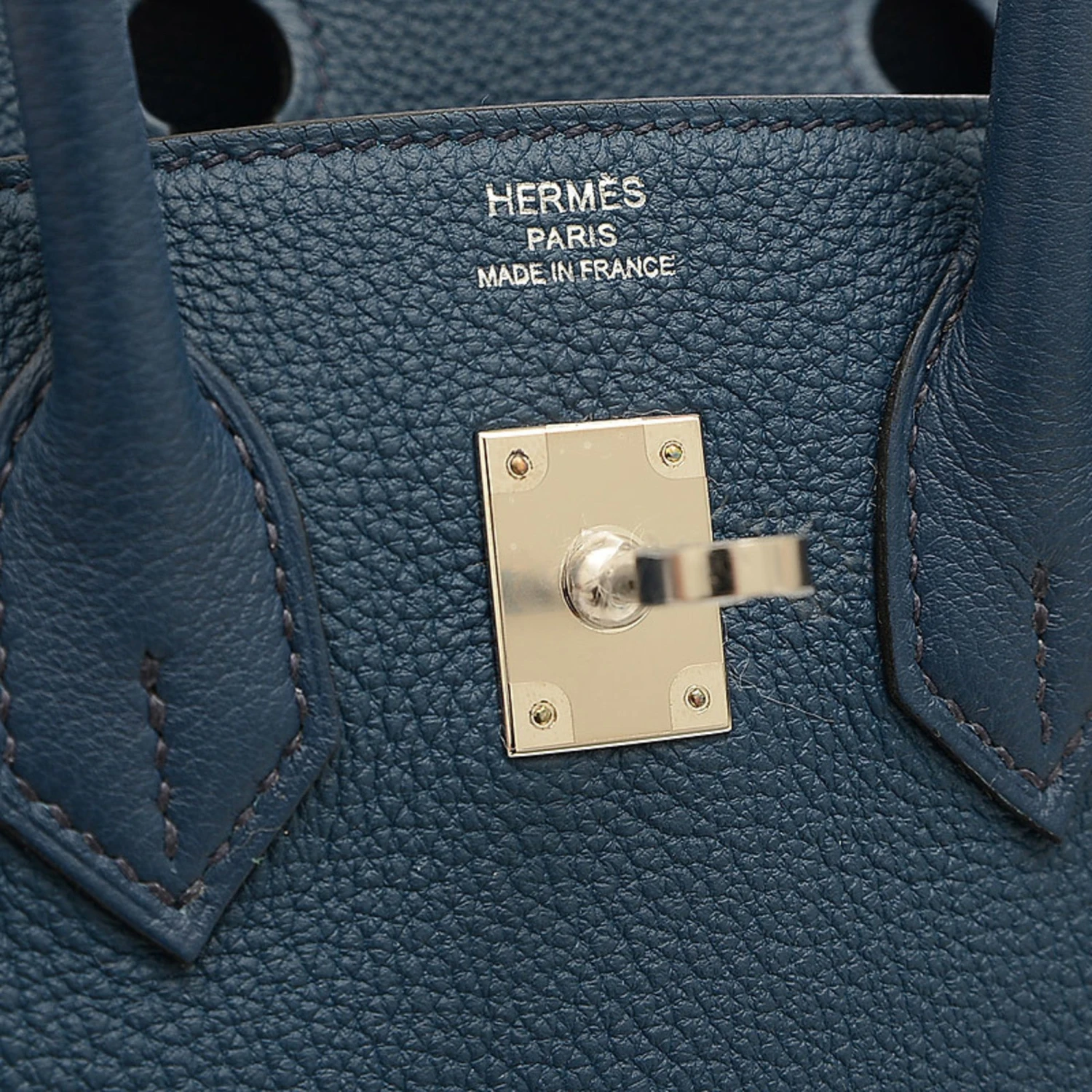 Hermes Birkin 25 Togo Blue de Plus Silver hardware B engraved