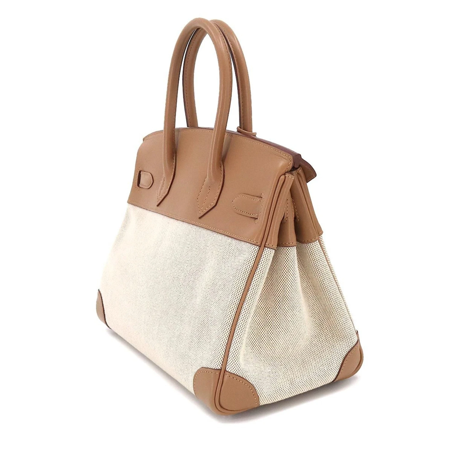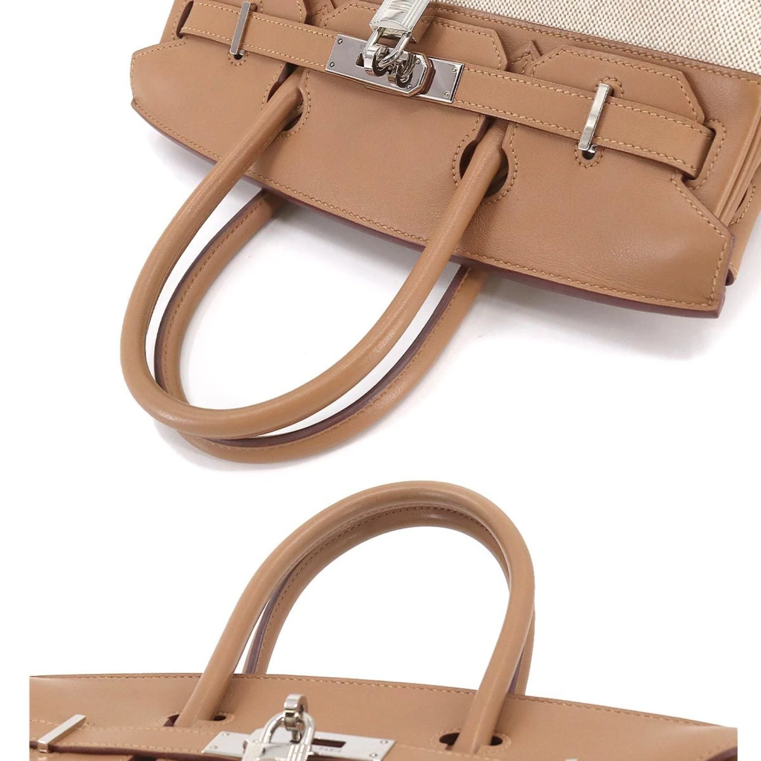 HERMES Birkin 30 hand bag toile ash swift beige L stamp silver metal fittings
