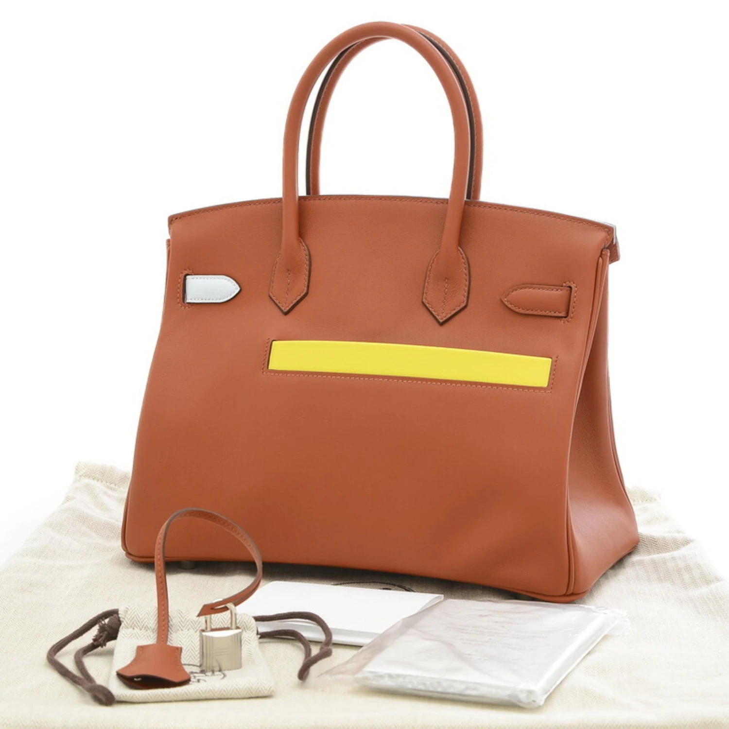 HERMES Birkin 30 Handbag Colormatic Swift Brick/Nata/Brum Silver Hardware B Stamped