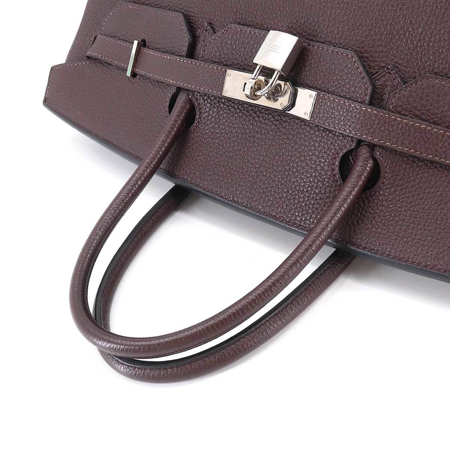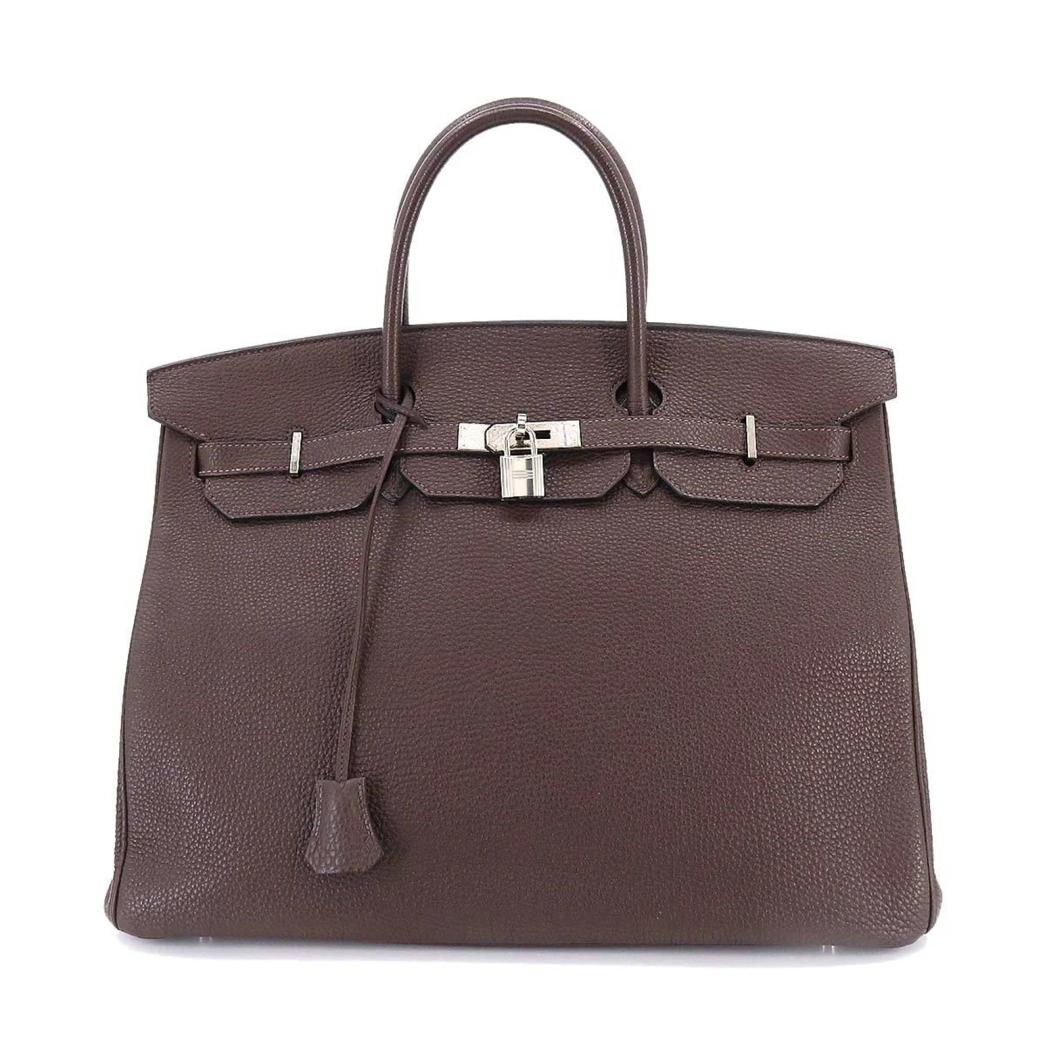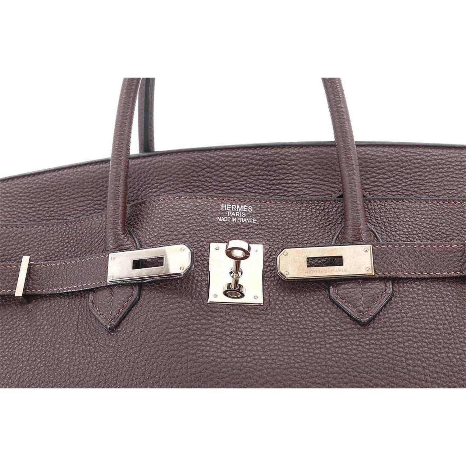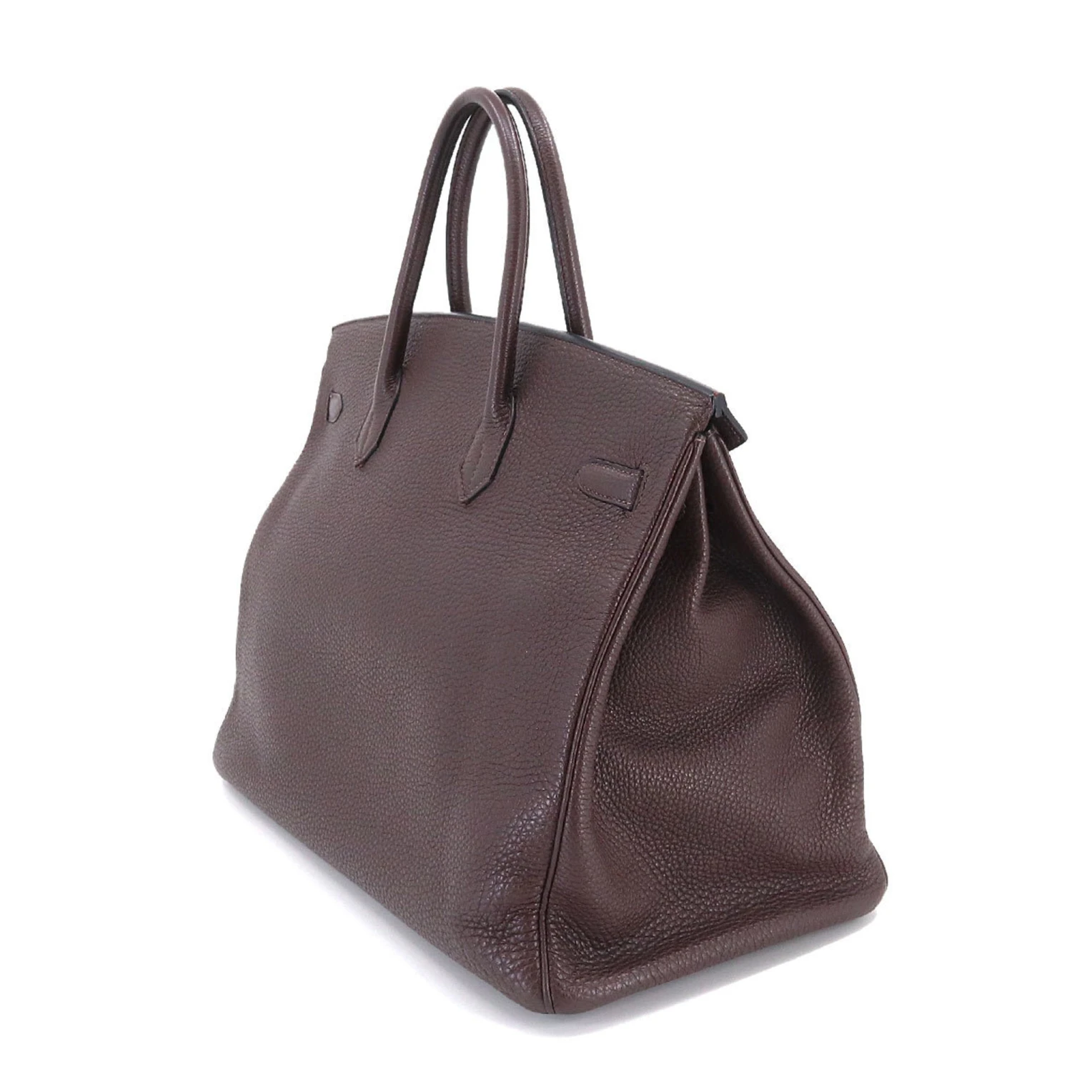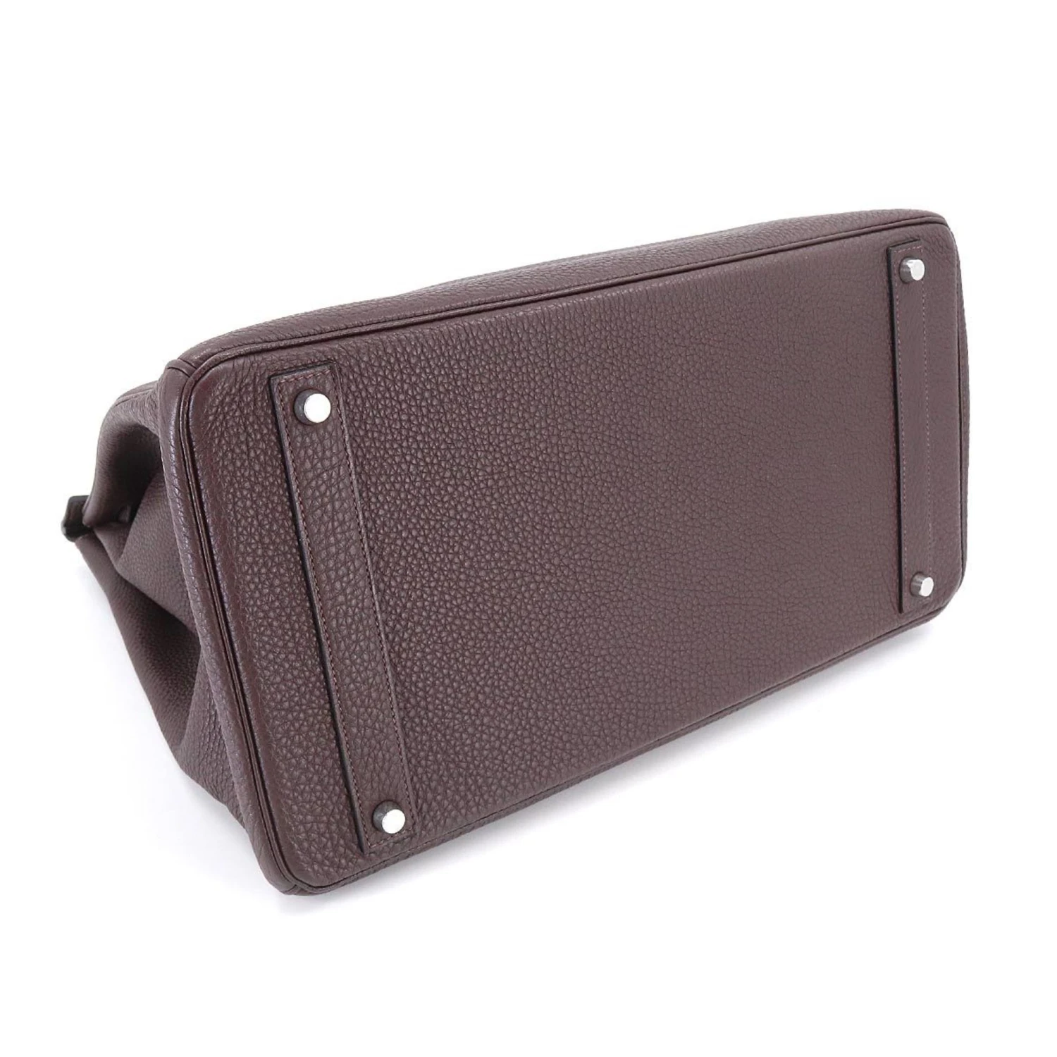 Hermes Birkin 40 hand bag Togo Chocolat L engraved silver metal fittings 30
