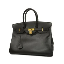 HERMES Handbag Birkin 35 D Engraved Ardennes Black Ladies