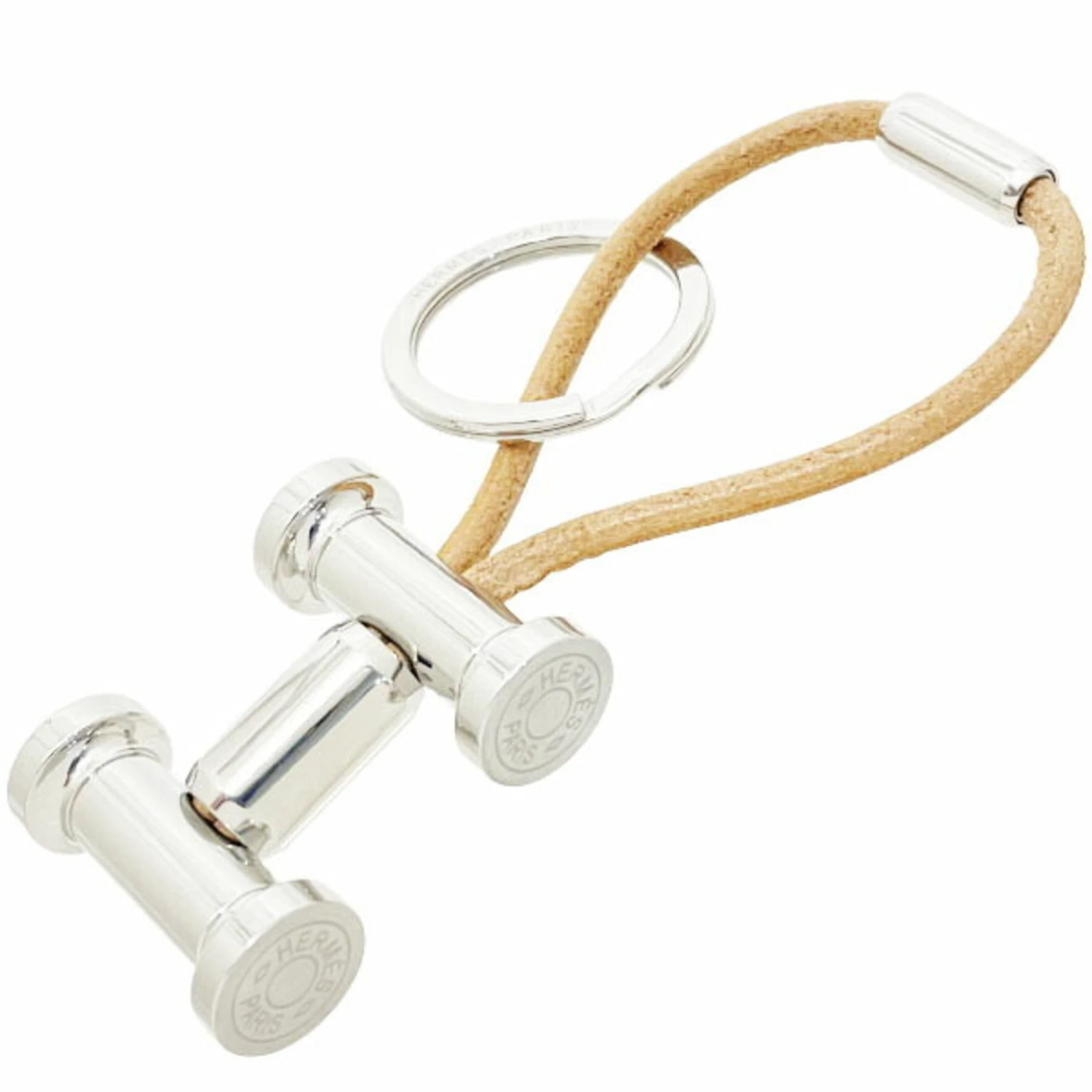 HERMES Keychain Mobile H Leather Natural Motif Bag Charm Key Ring SY-13039