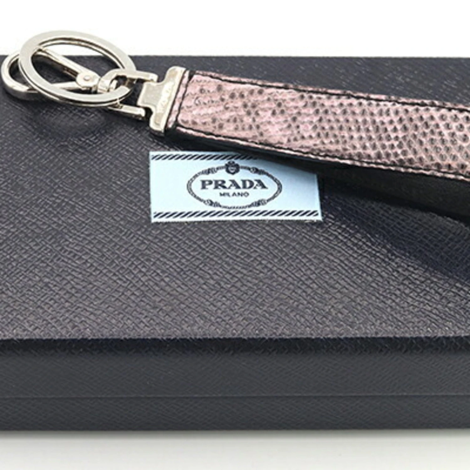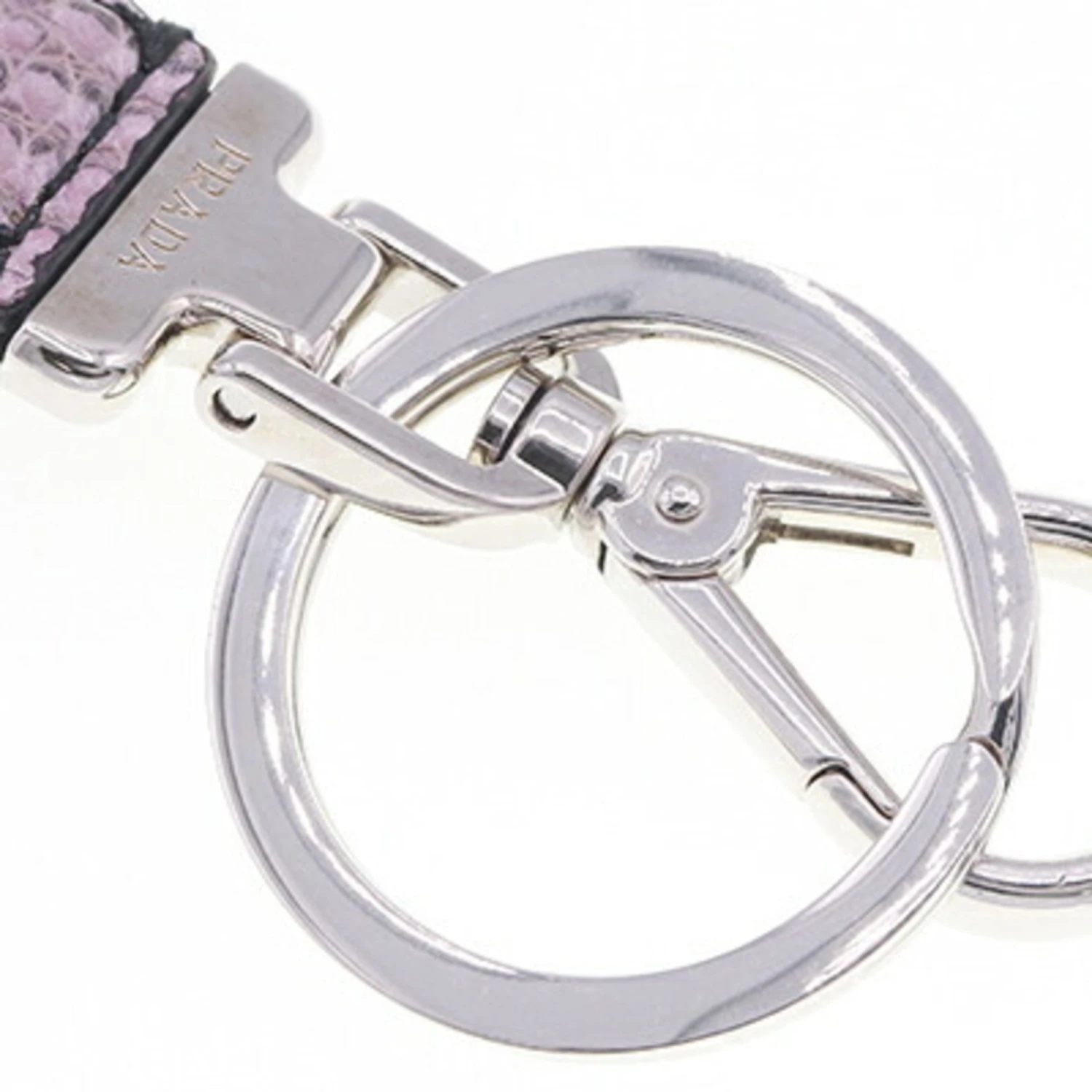 PRADA Key Holder 1PF726 Pink Black Leather Ring Bag Charm Women’s